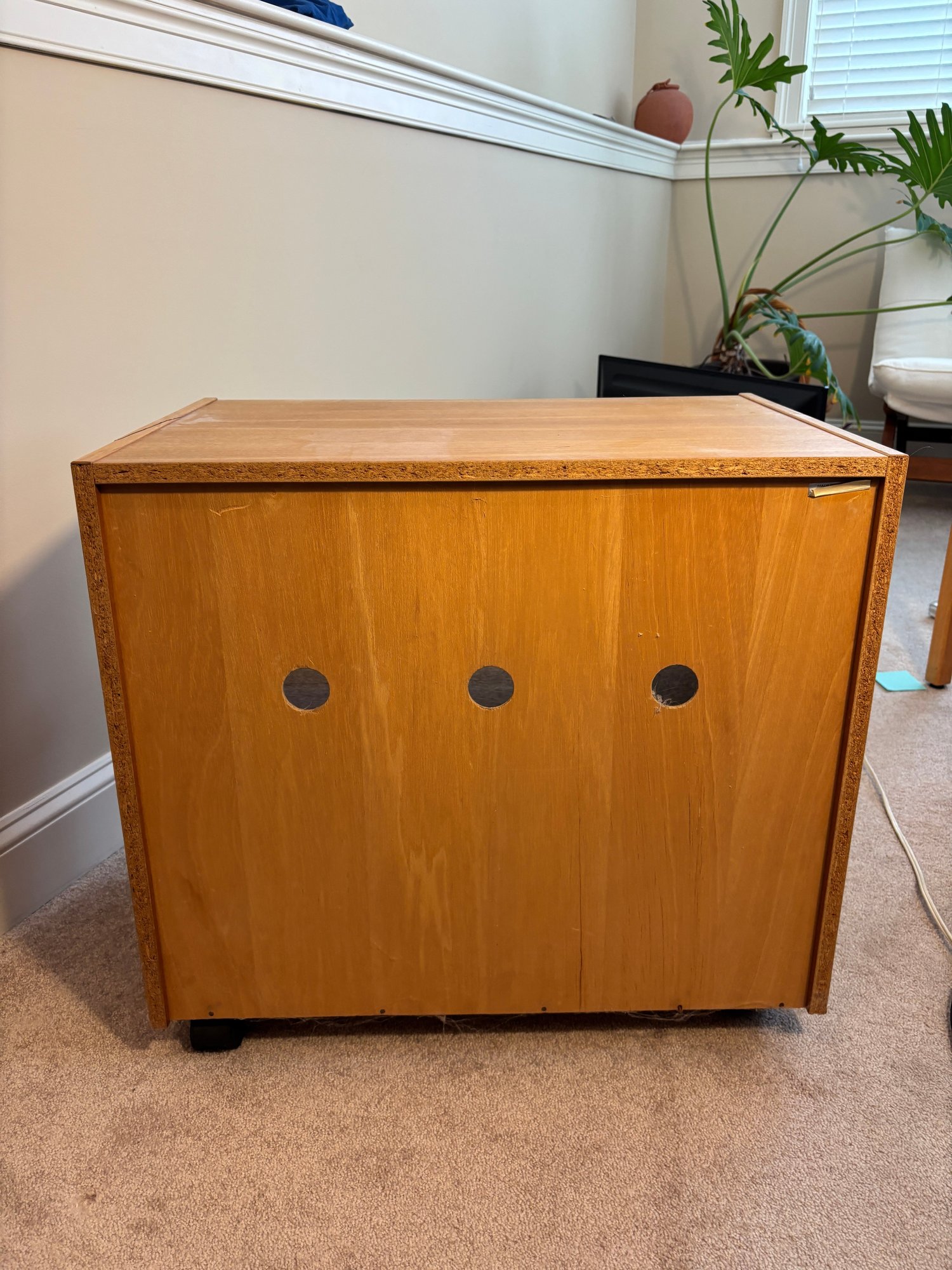 Notes: Has some damage to top, bottom drawer appears to not fully shut