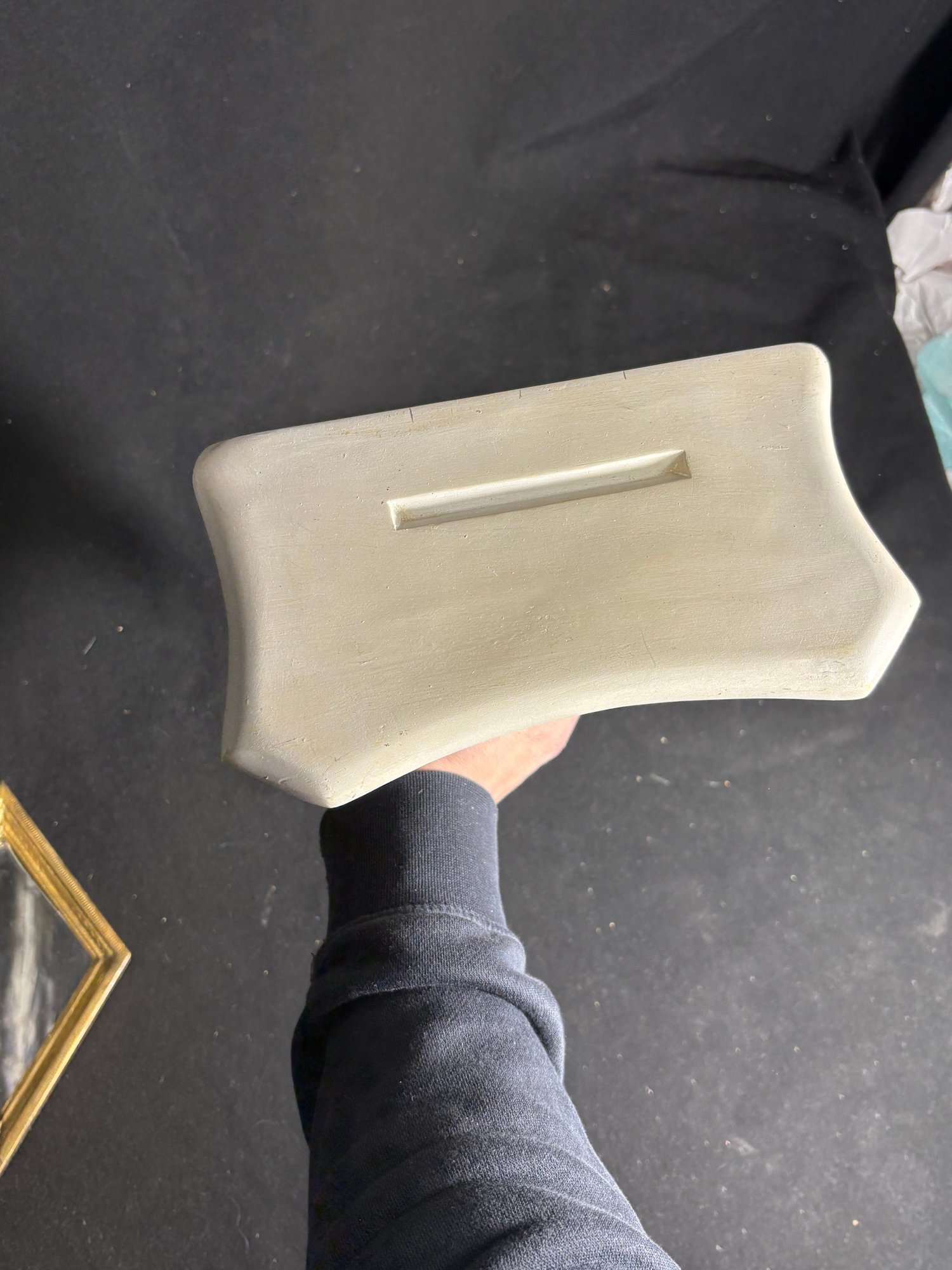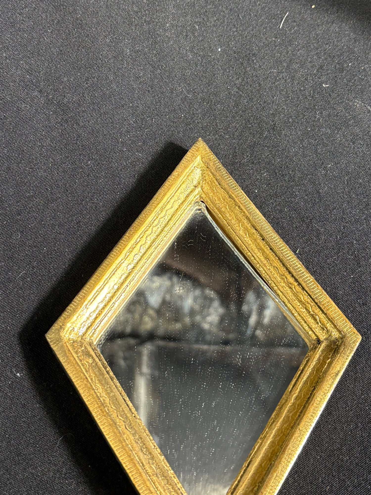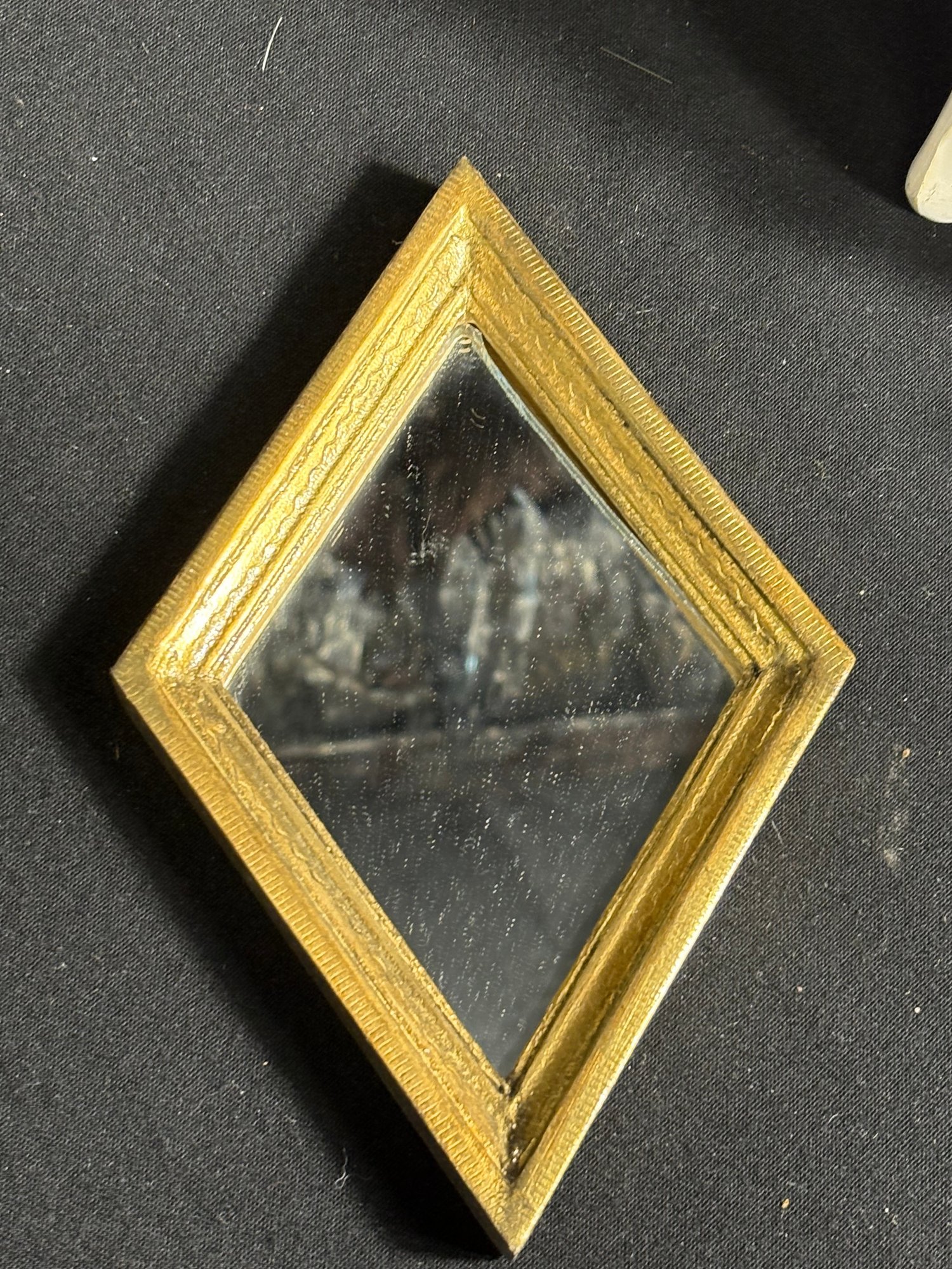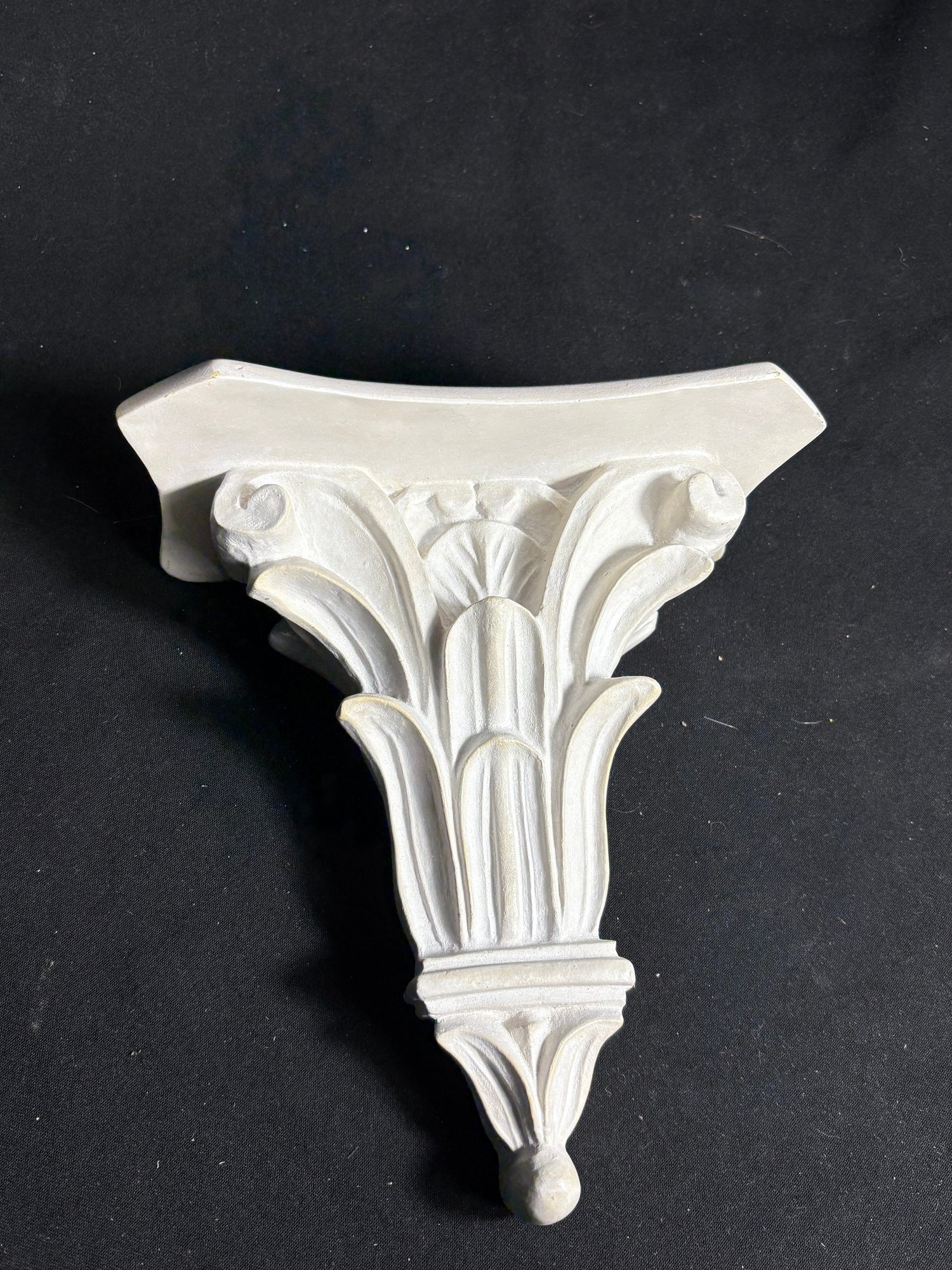 Dimensions ornate wall shelf 9 by 10 inches long. Mirror 5 by 8 inches long