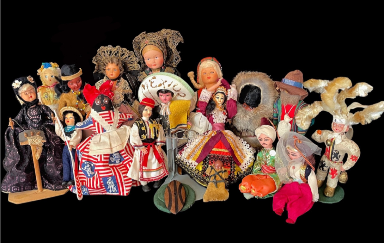 Collection of 16 international dolls including Belgium, Mexico, USA, and Germany