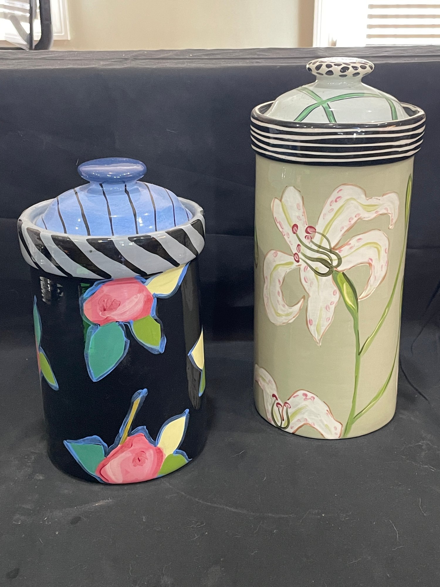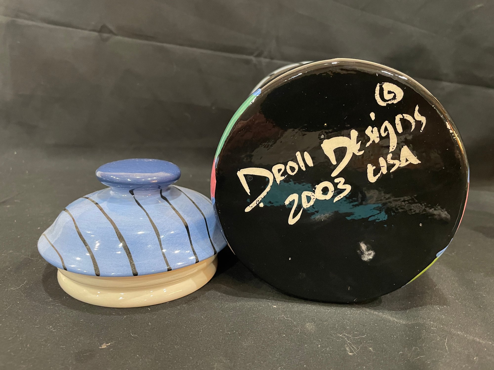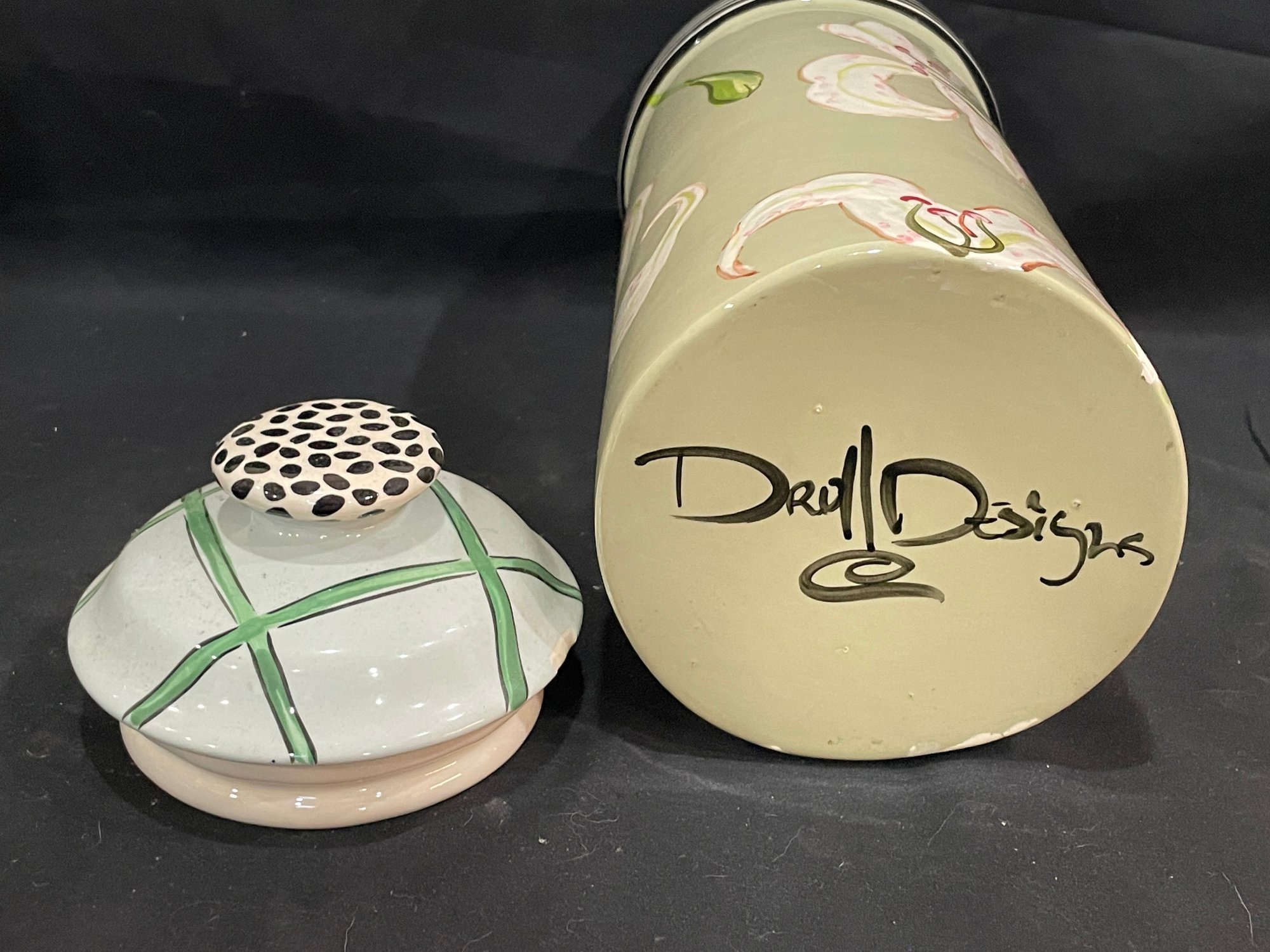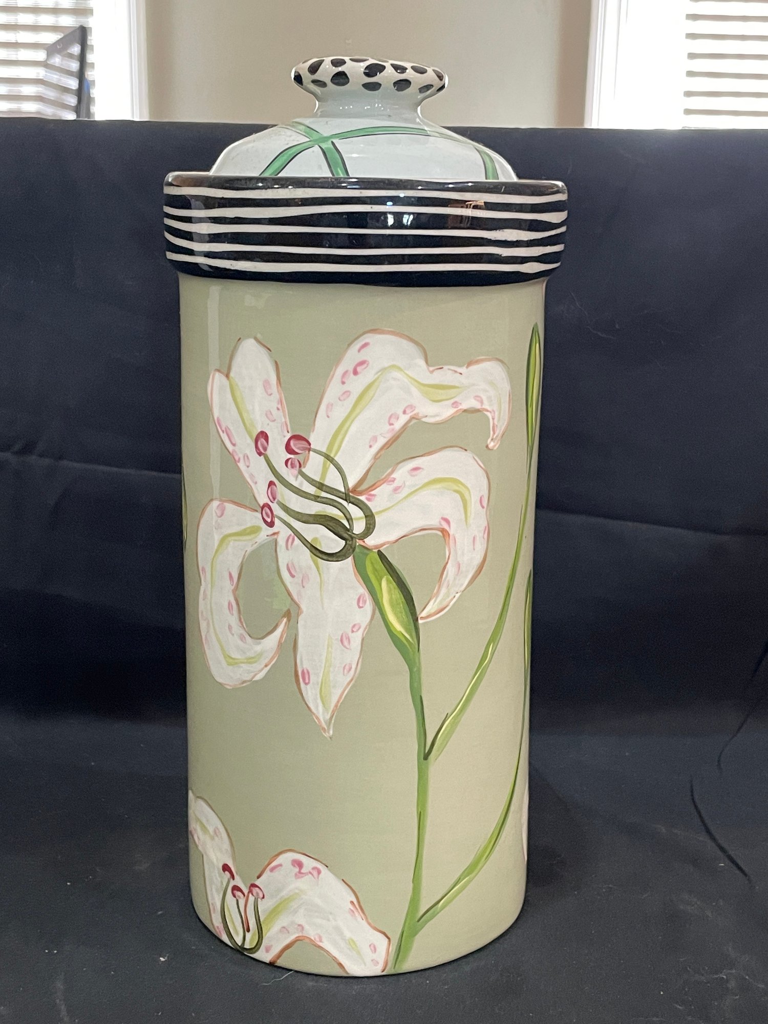 Lily motif 6” x 12 1/2” chip in lid which has been
