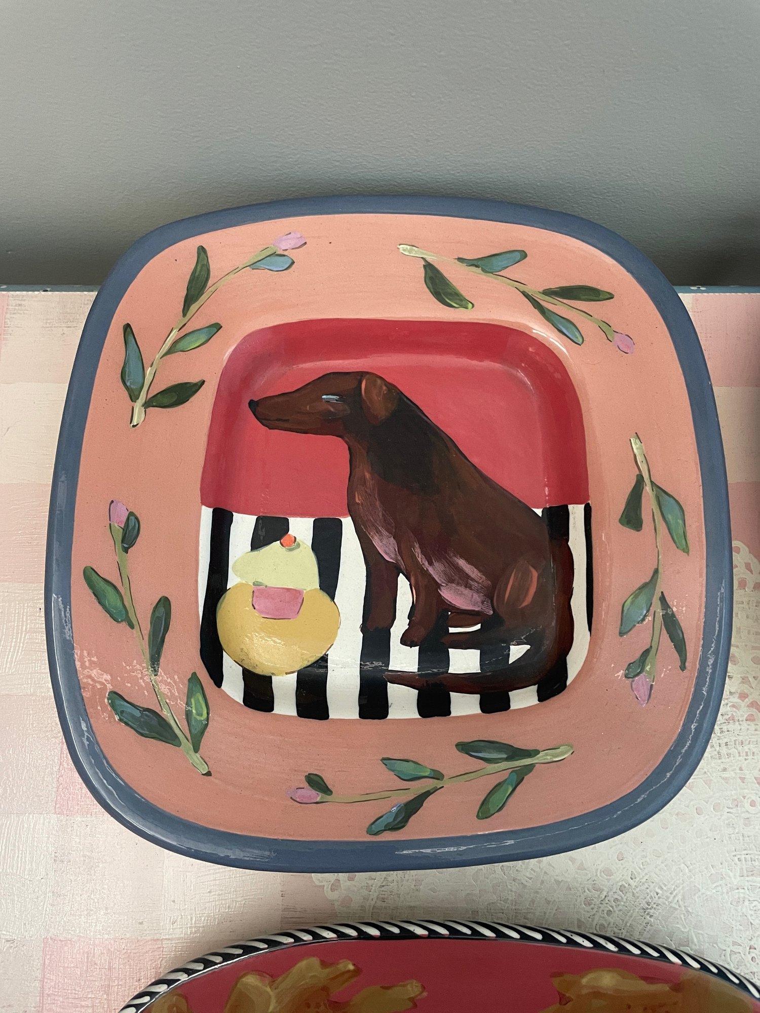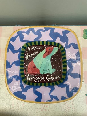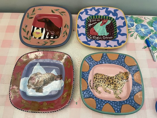 Walrus, leopard, two dog motif dishes/plates
