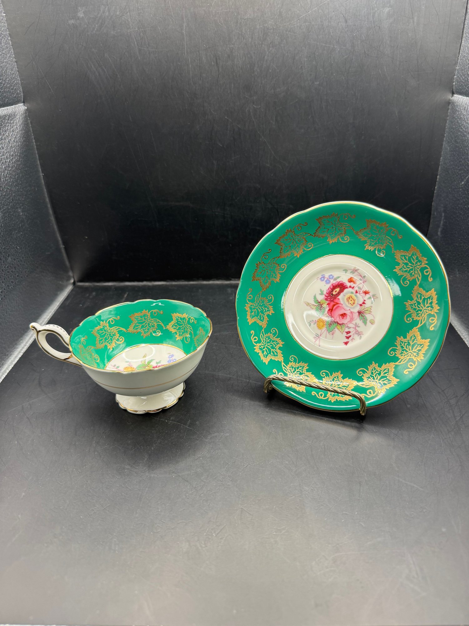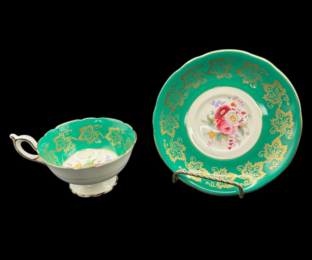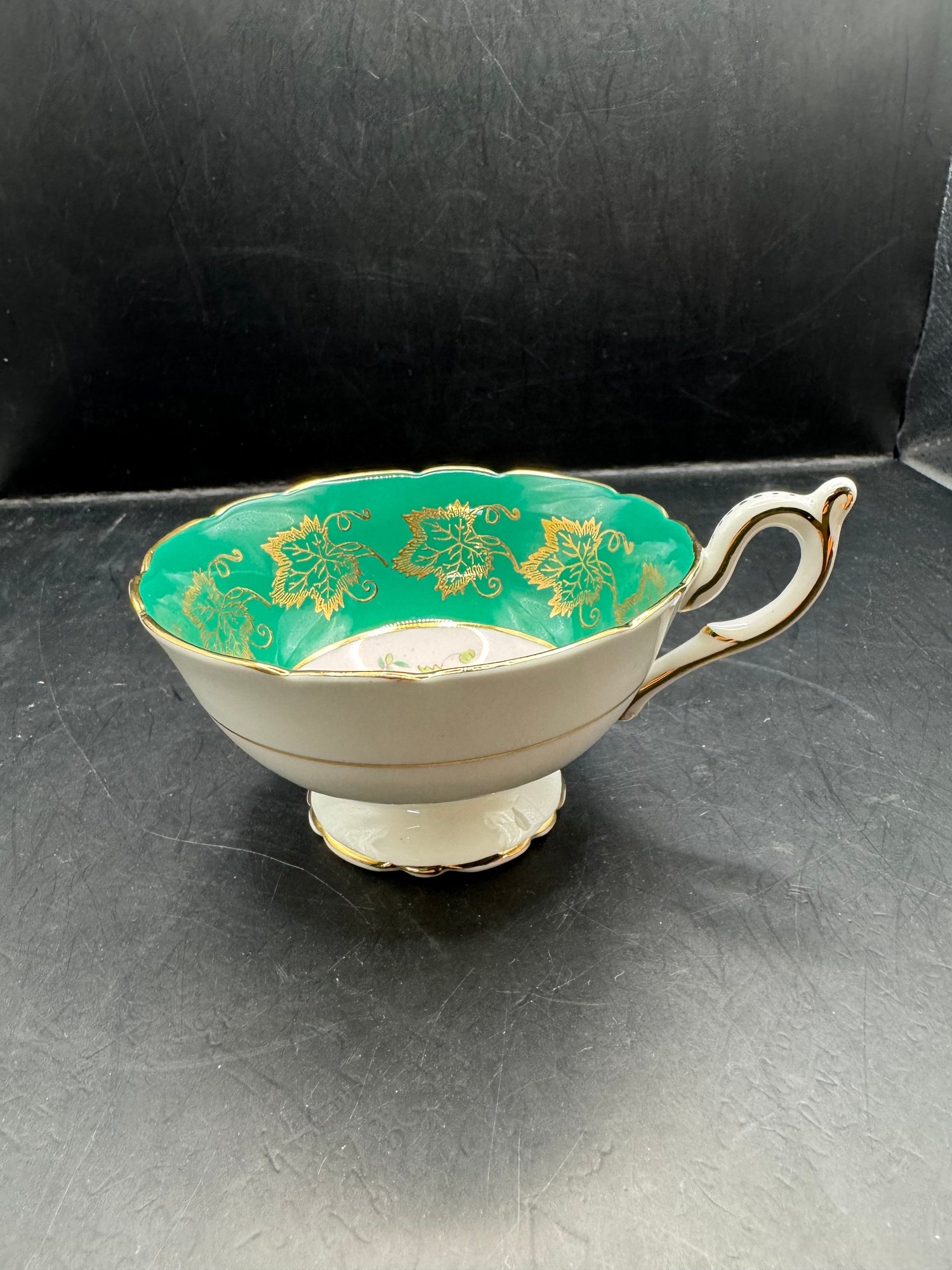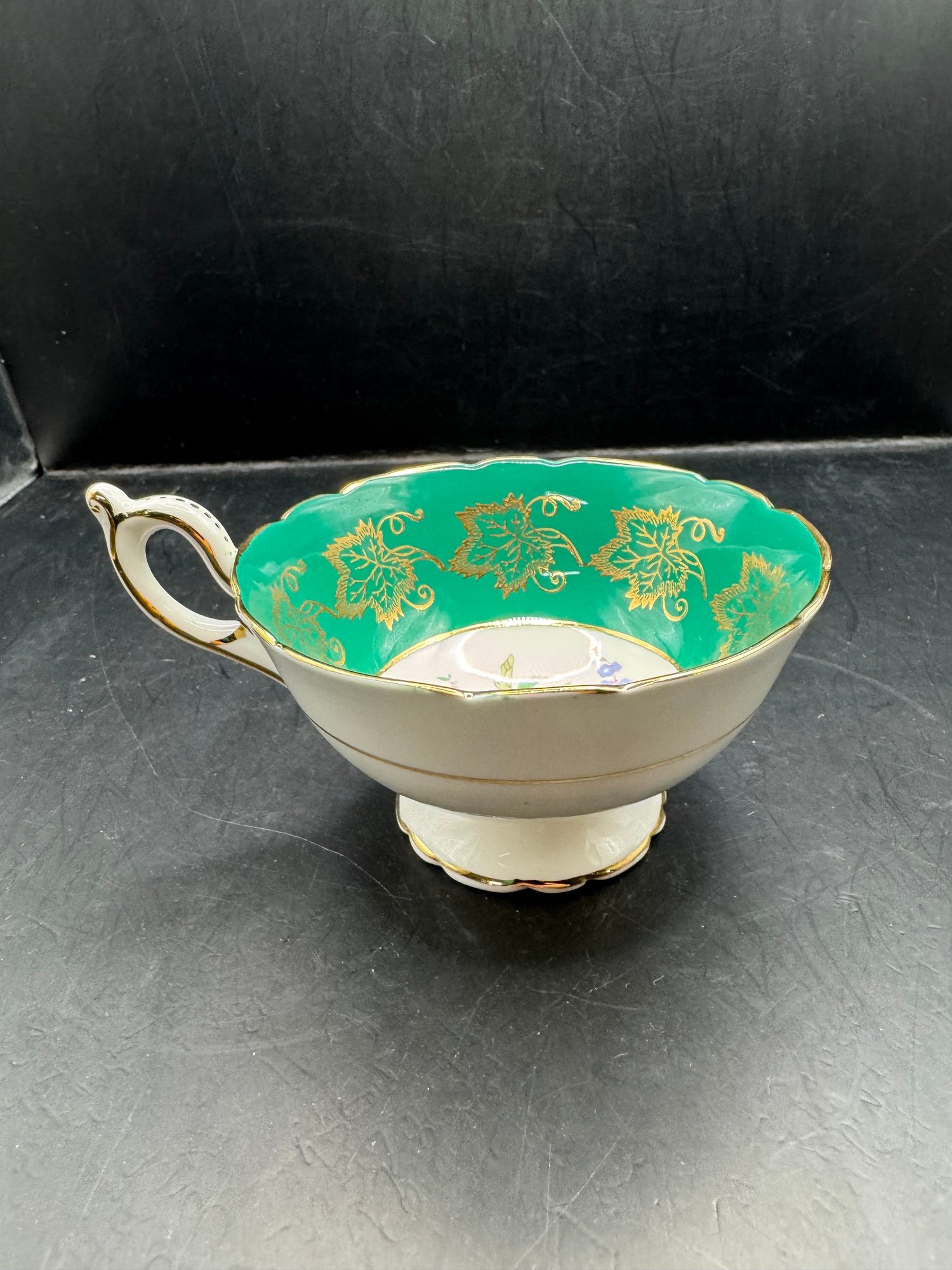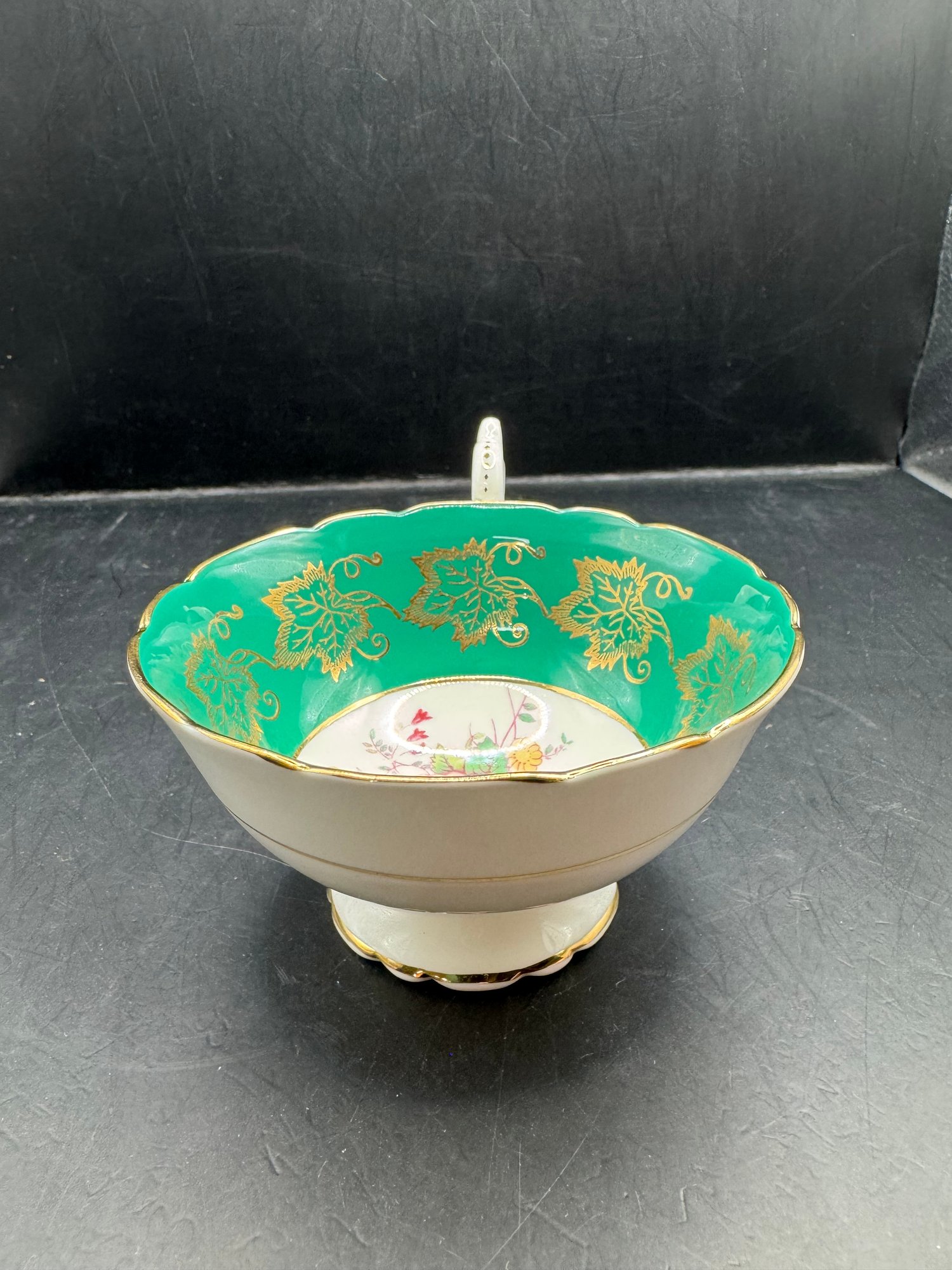 Eb Foley 1850 Green Floral Bone China Tea Cup & Saucer