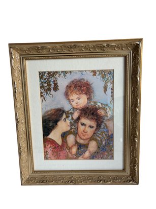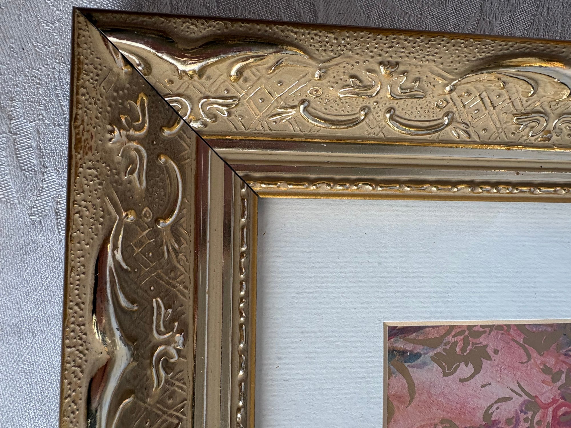 It’s from an oil painting on silk. The reproduction is then enhanced with silk screen gold overlay.