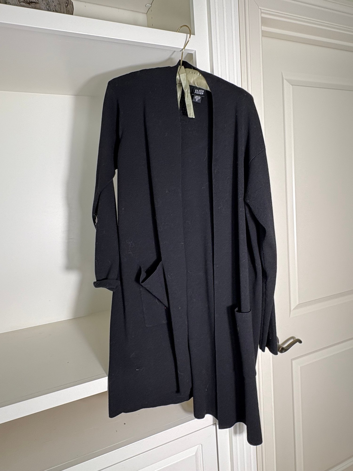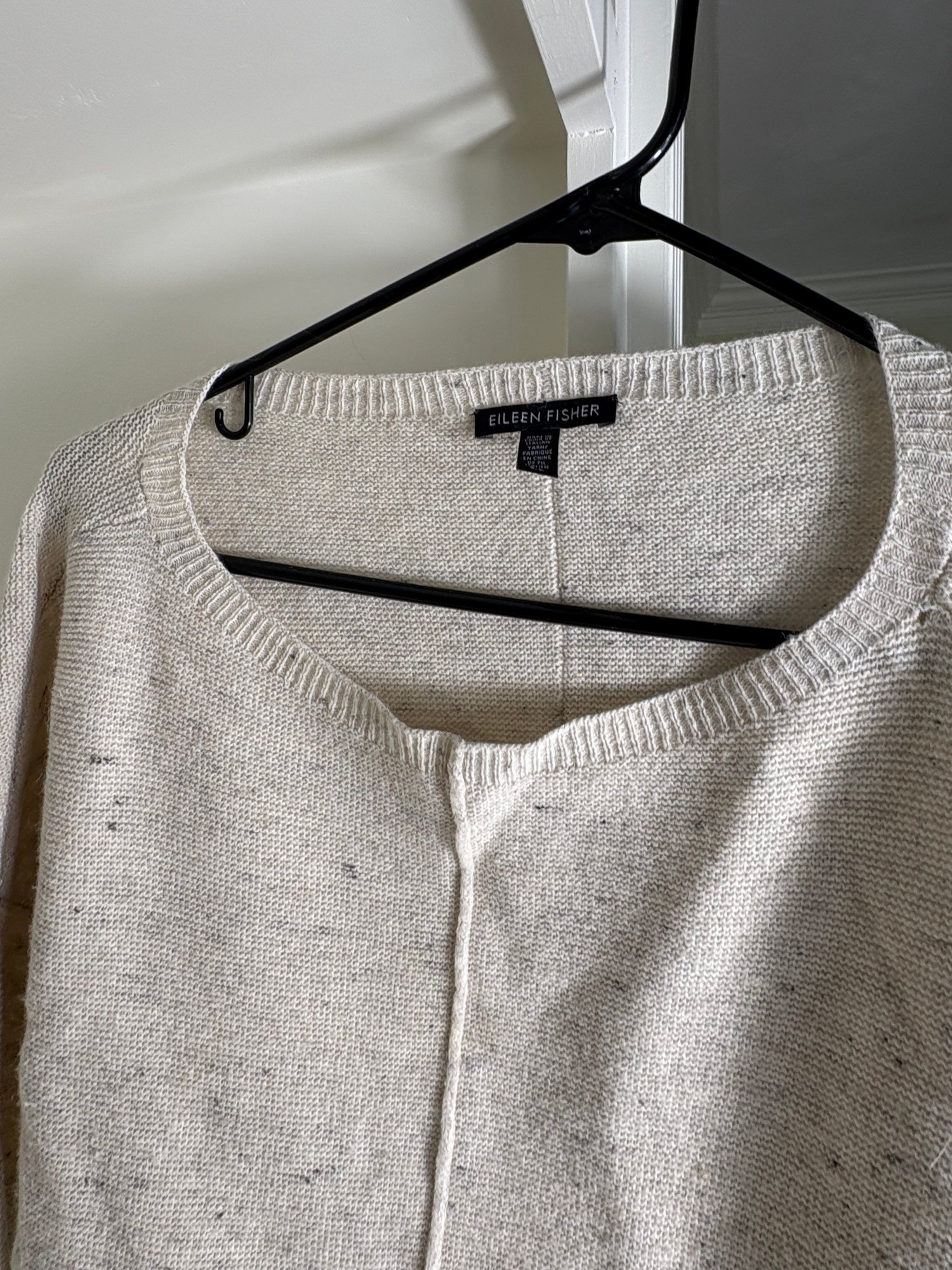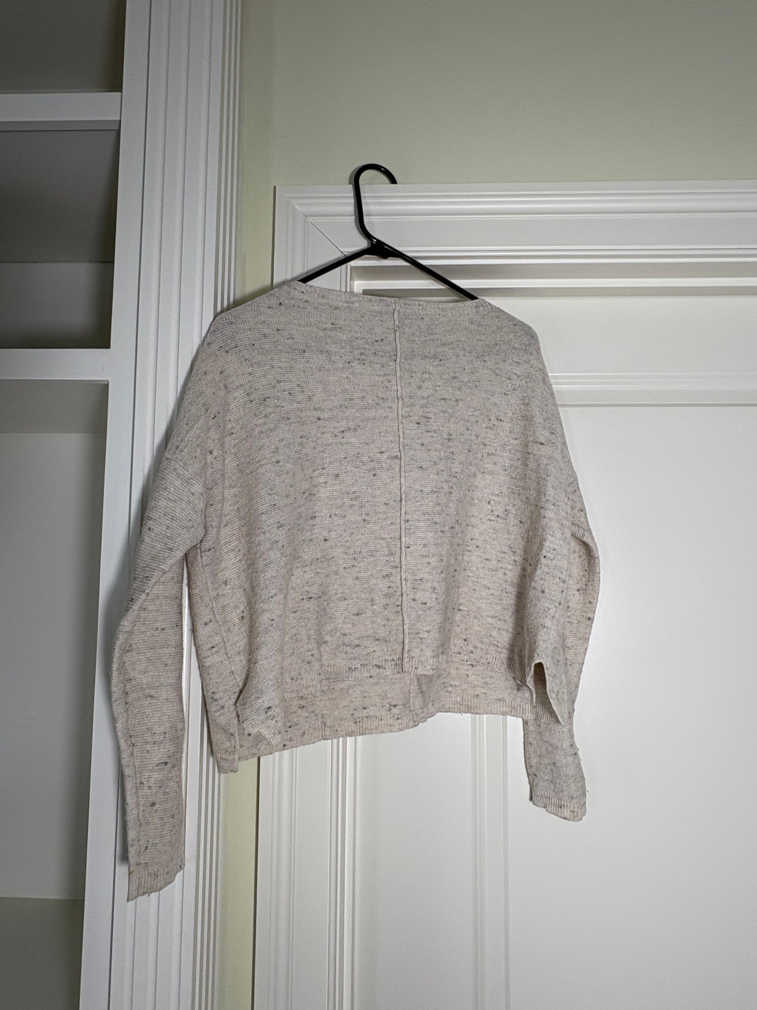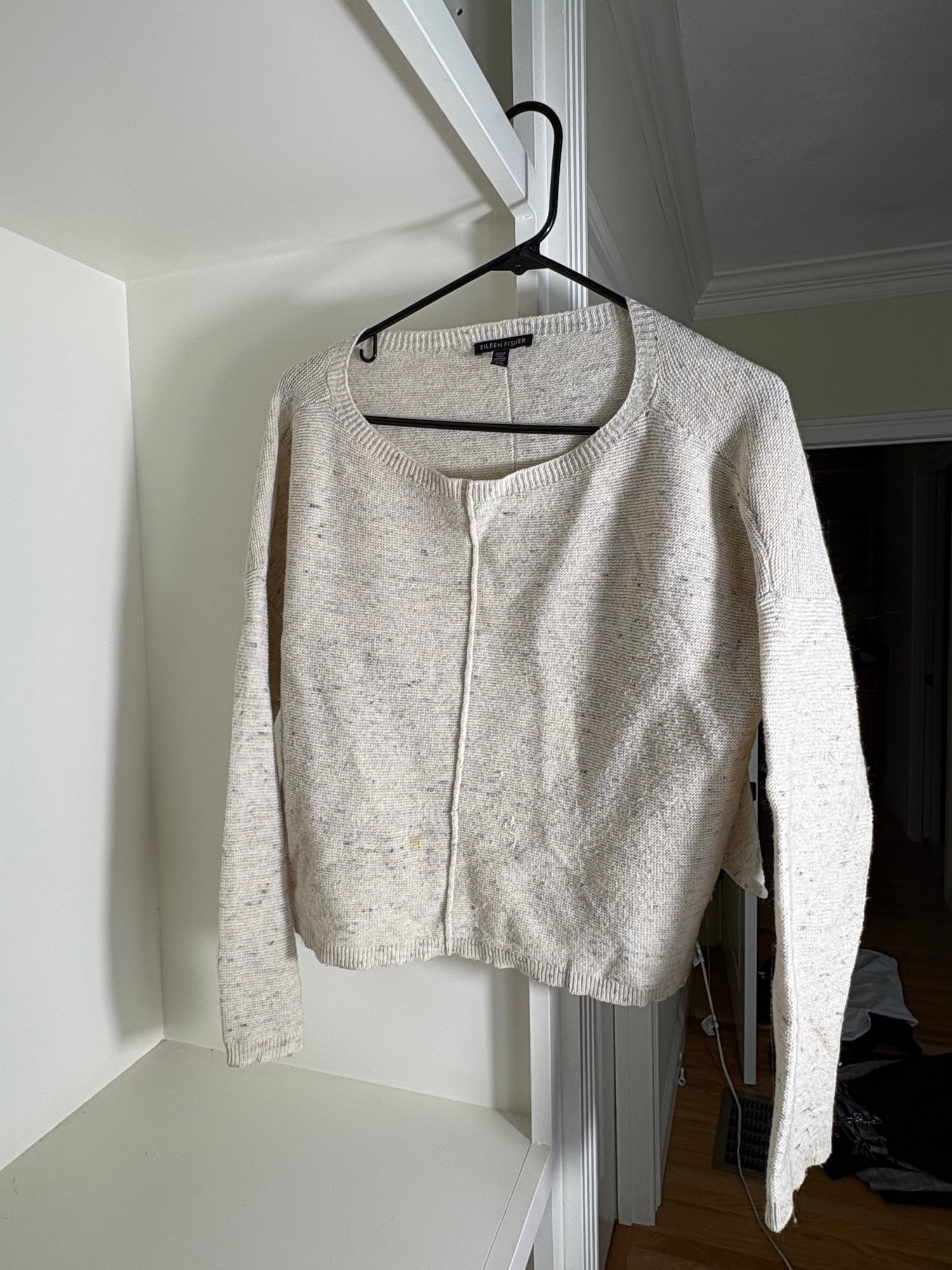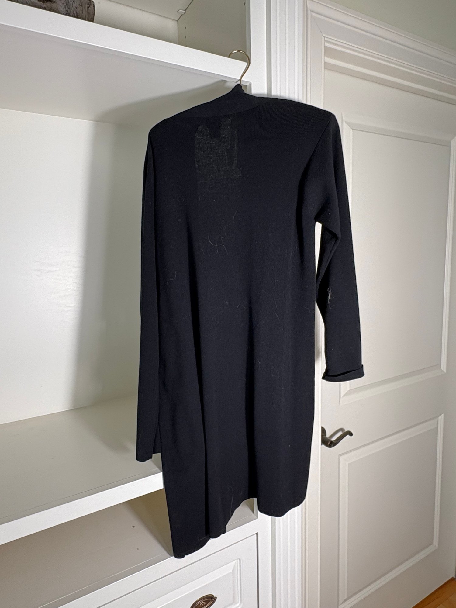 Black sweater size women’s medium. Blue sweater women’s size large. Yellow sweater size small. White sweater size small