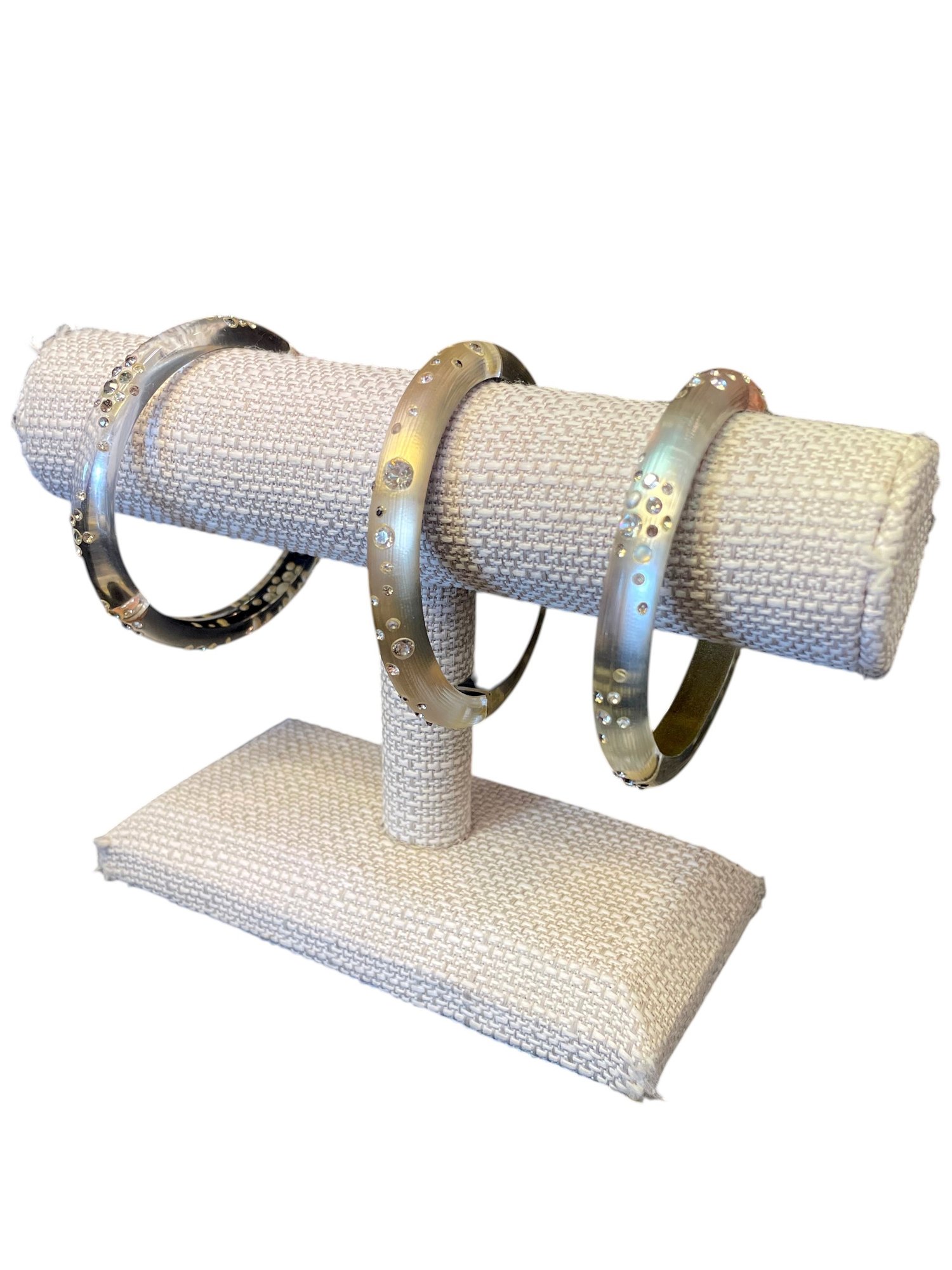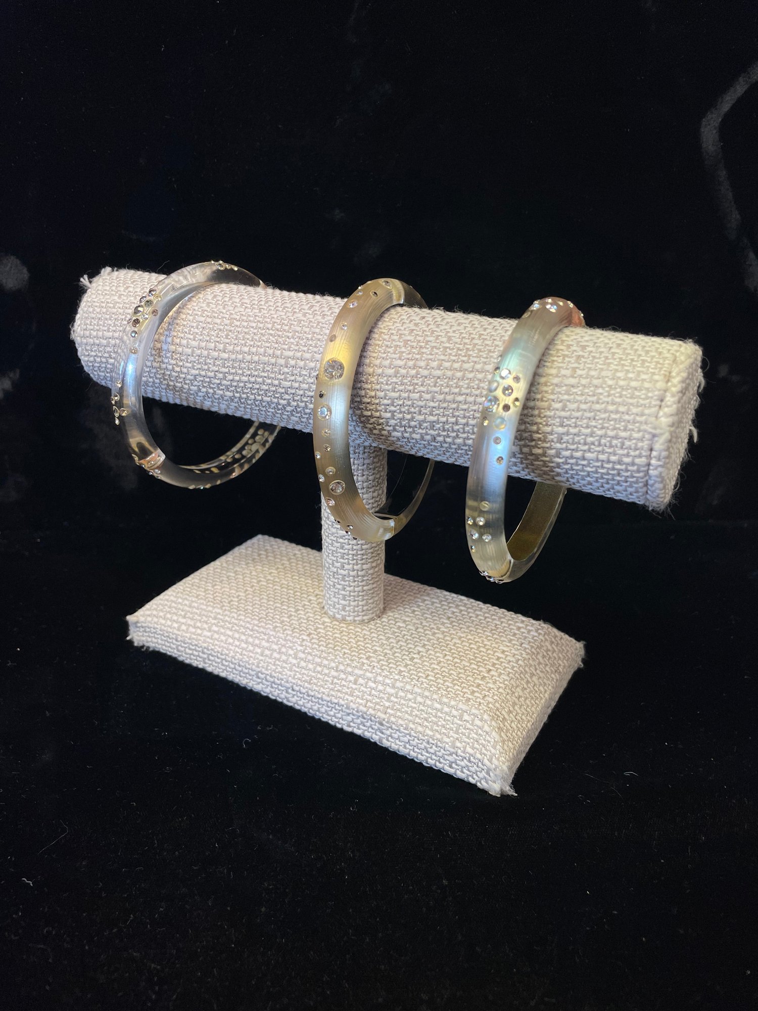 Three costume bangle bracelets with hinges and gemstone designs