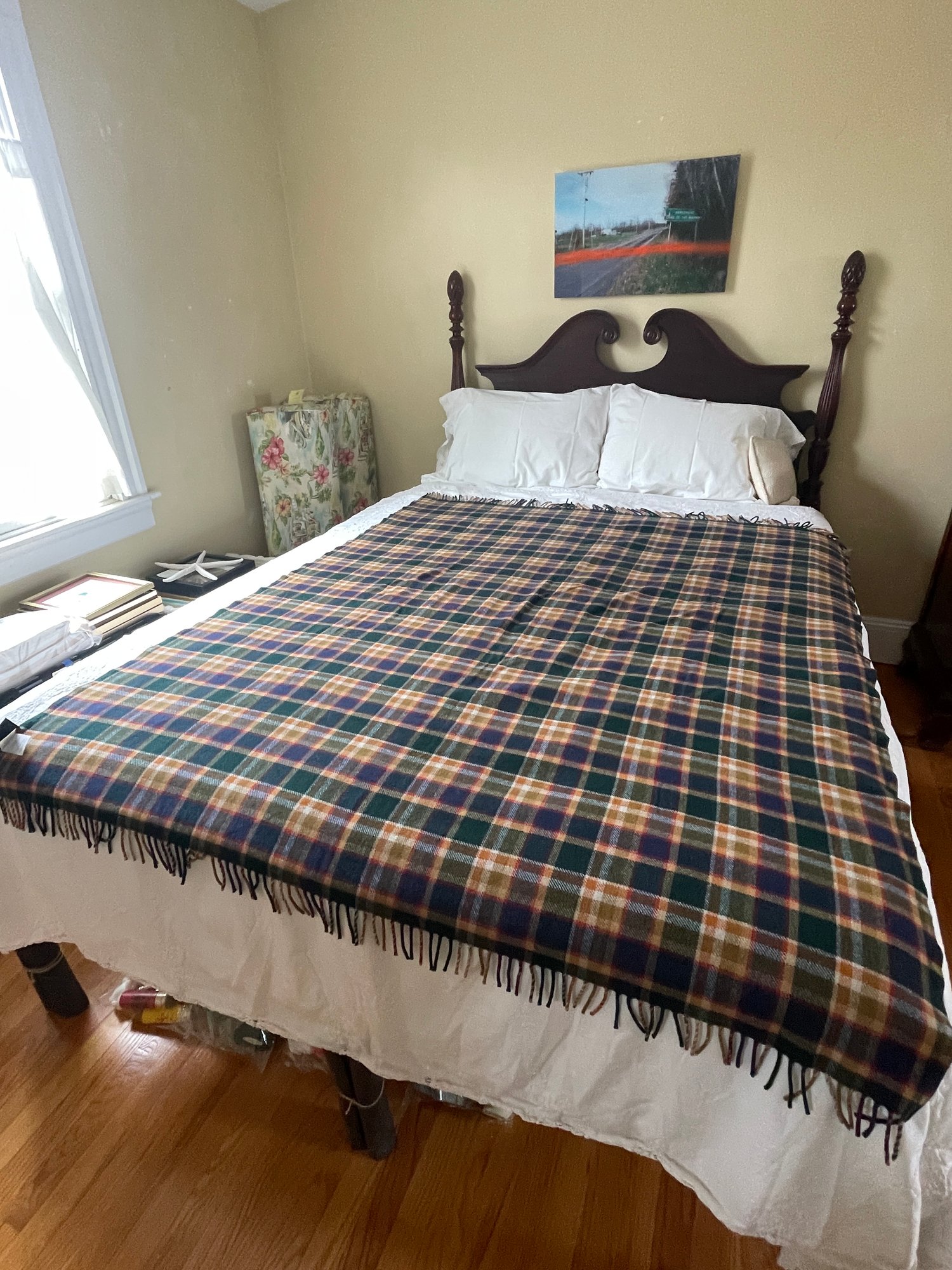 Plaid Pendleton wool throw with fringe. 54x62 inches