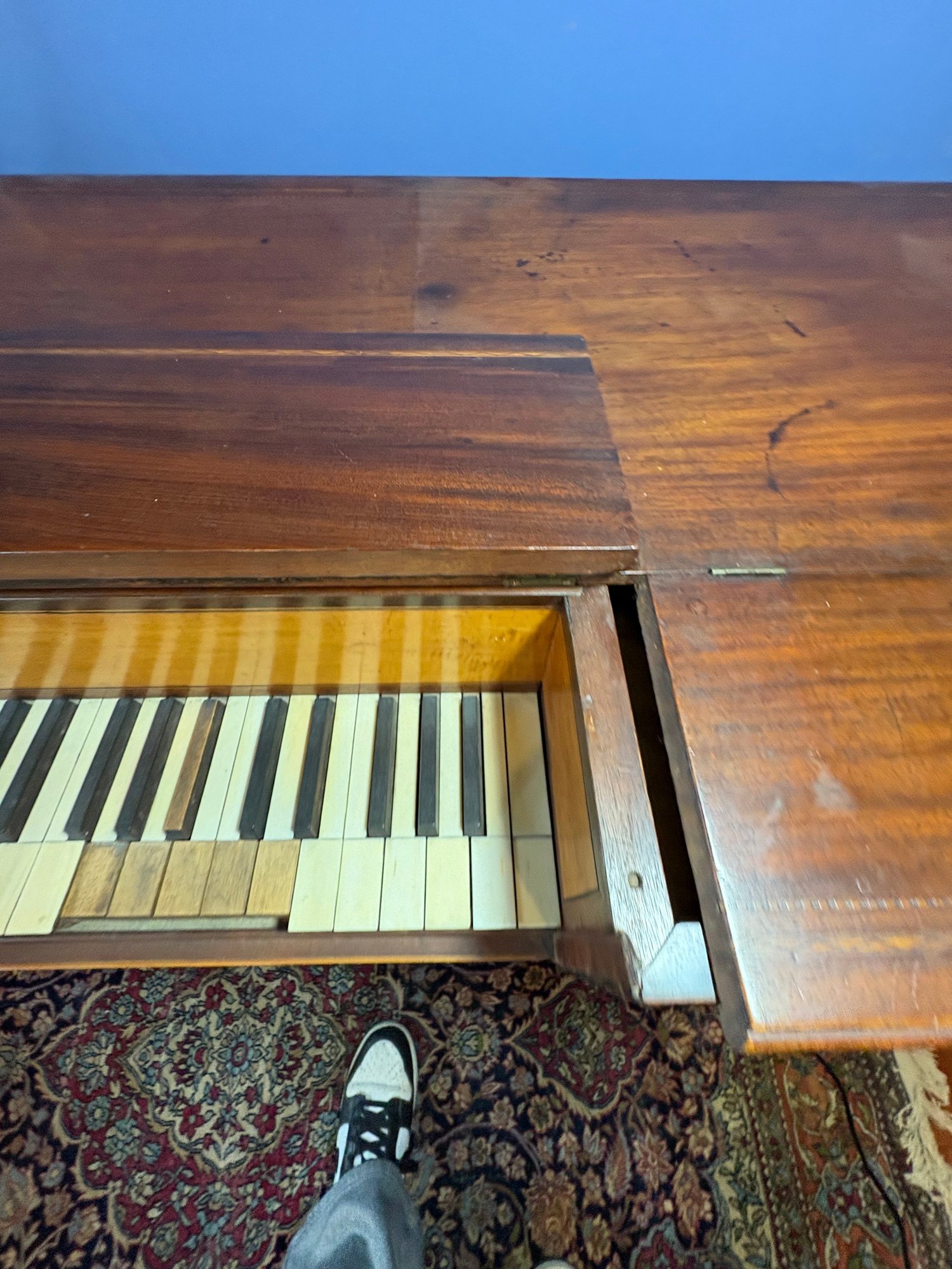 Notes: Piano doesn’t work, needs new keys, has scratches on the top, top of the piano is broken latches are broken!
