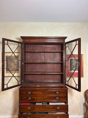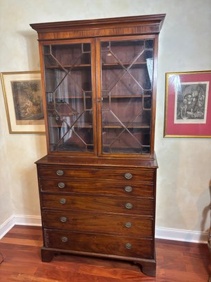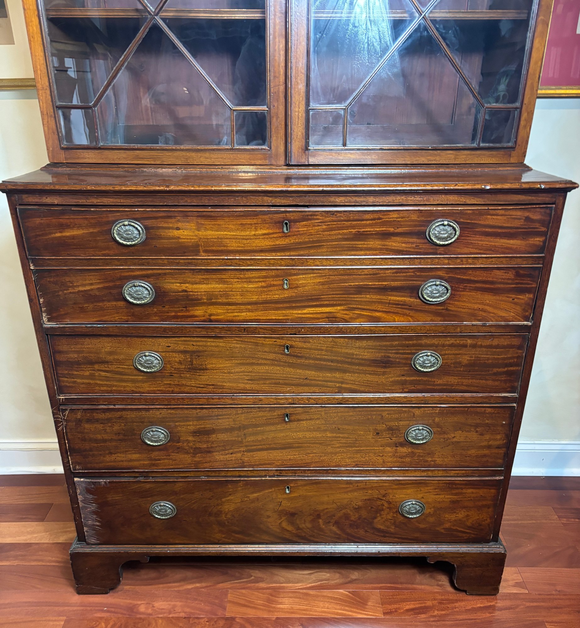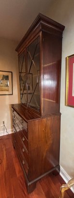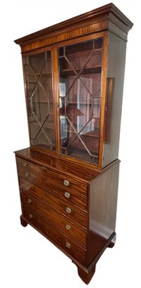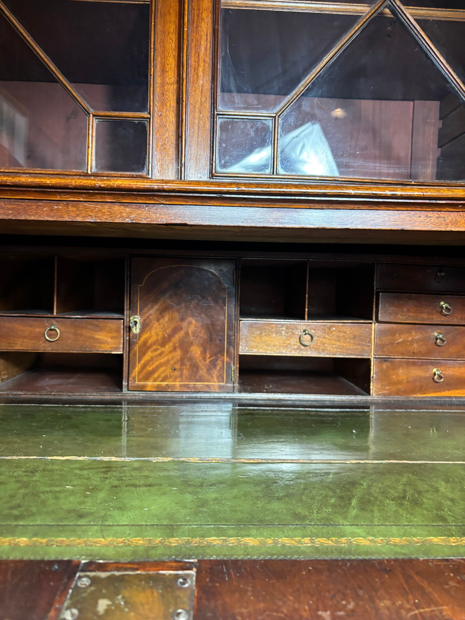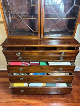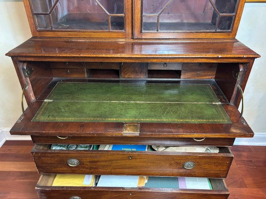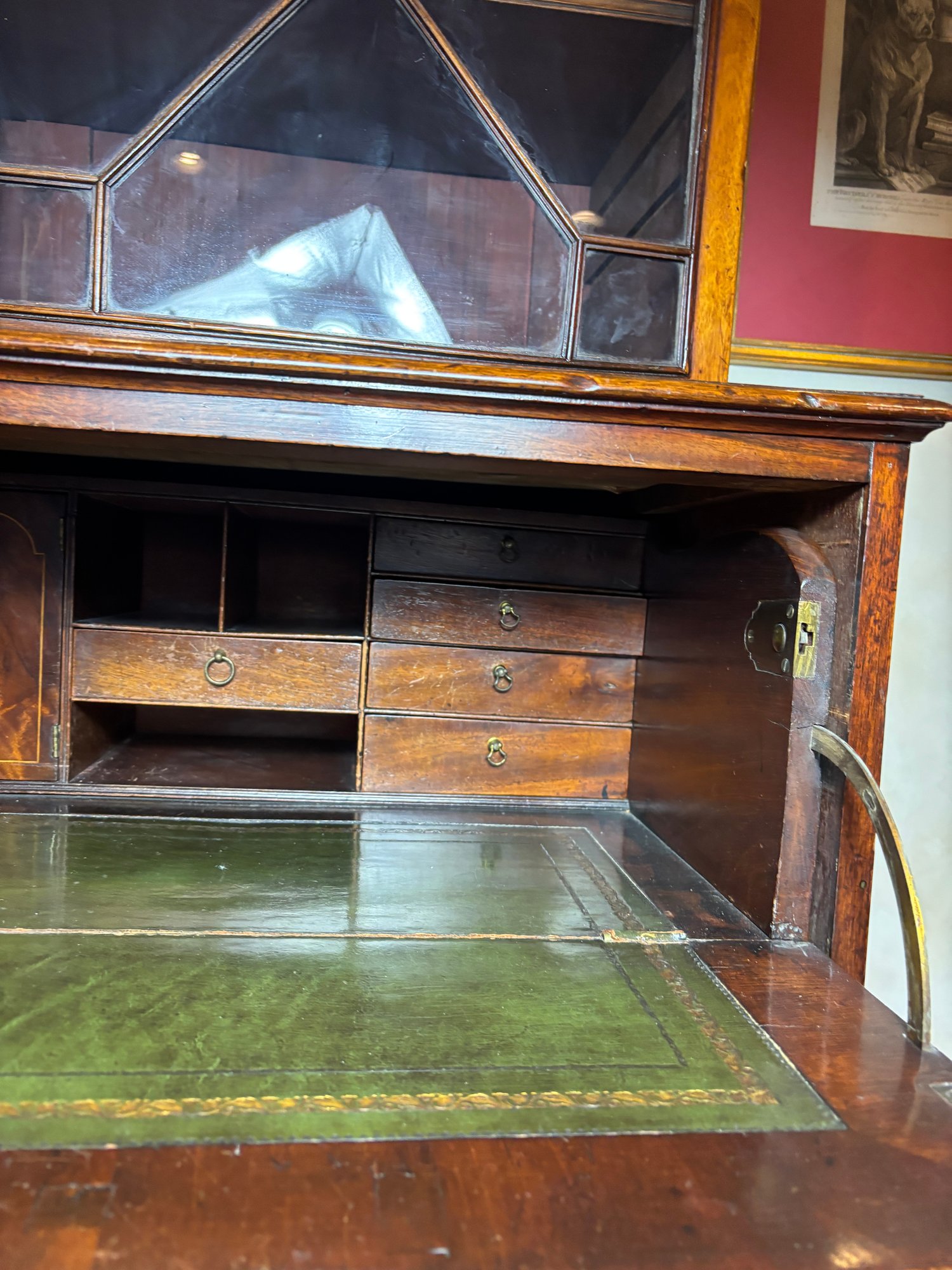 Includes a key for front glass and one for the inside drawer. Does not include key for drop down desk
