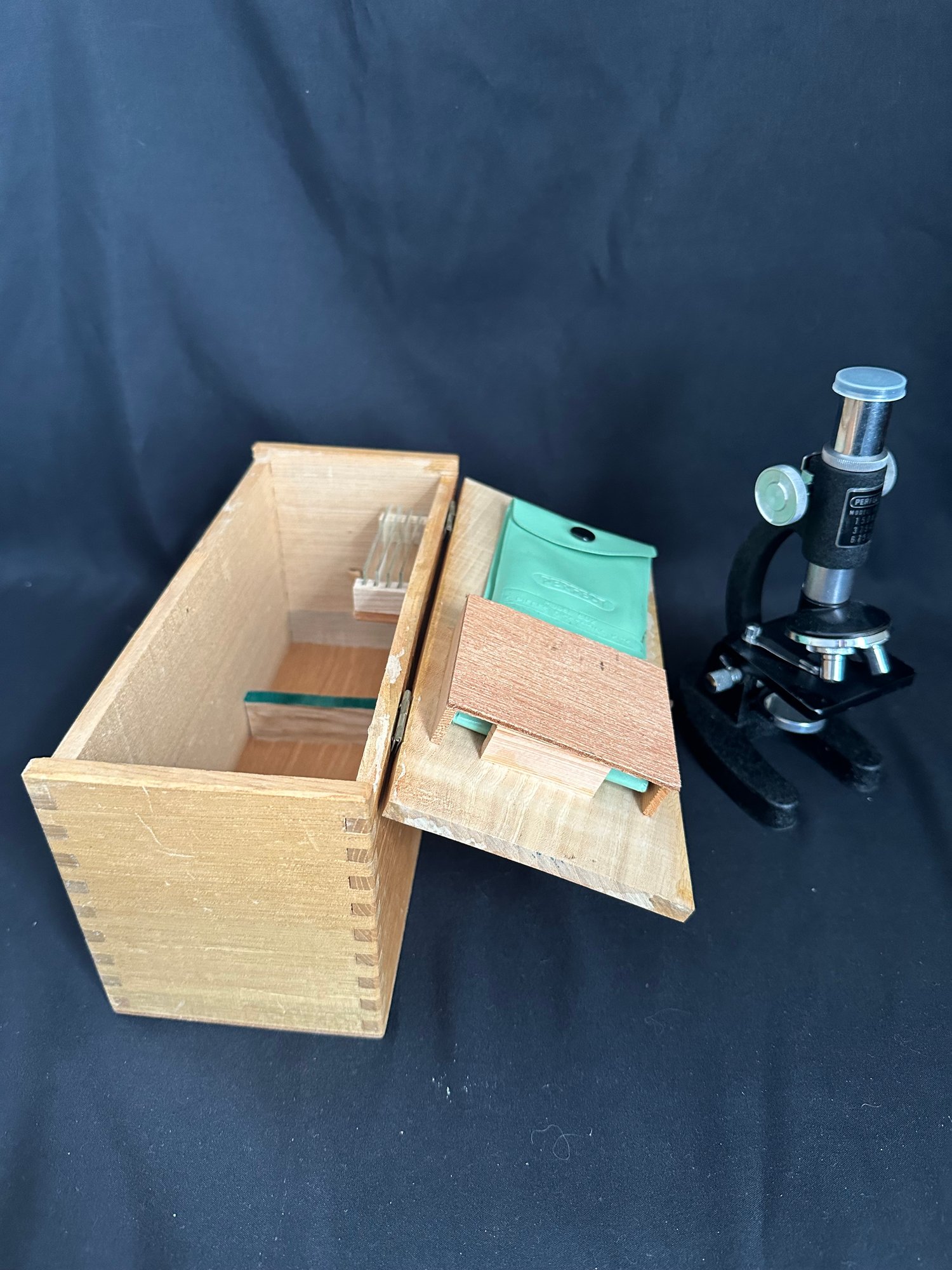 Perfect Turret Vintage Microscope With Wood Case (gbm1)