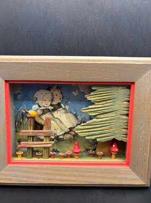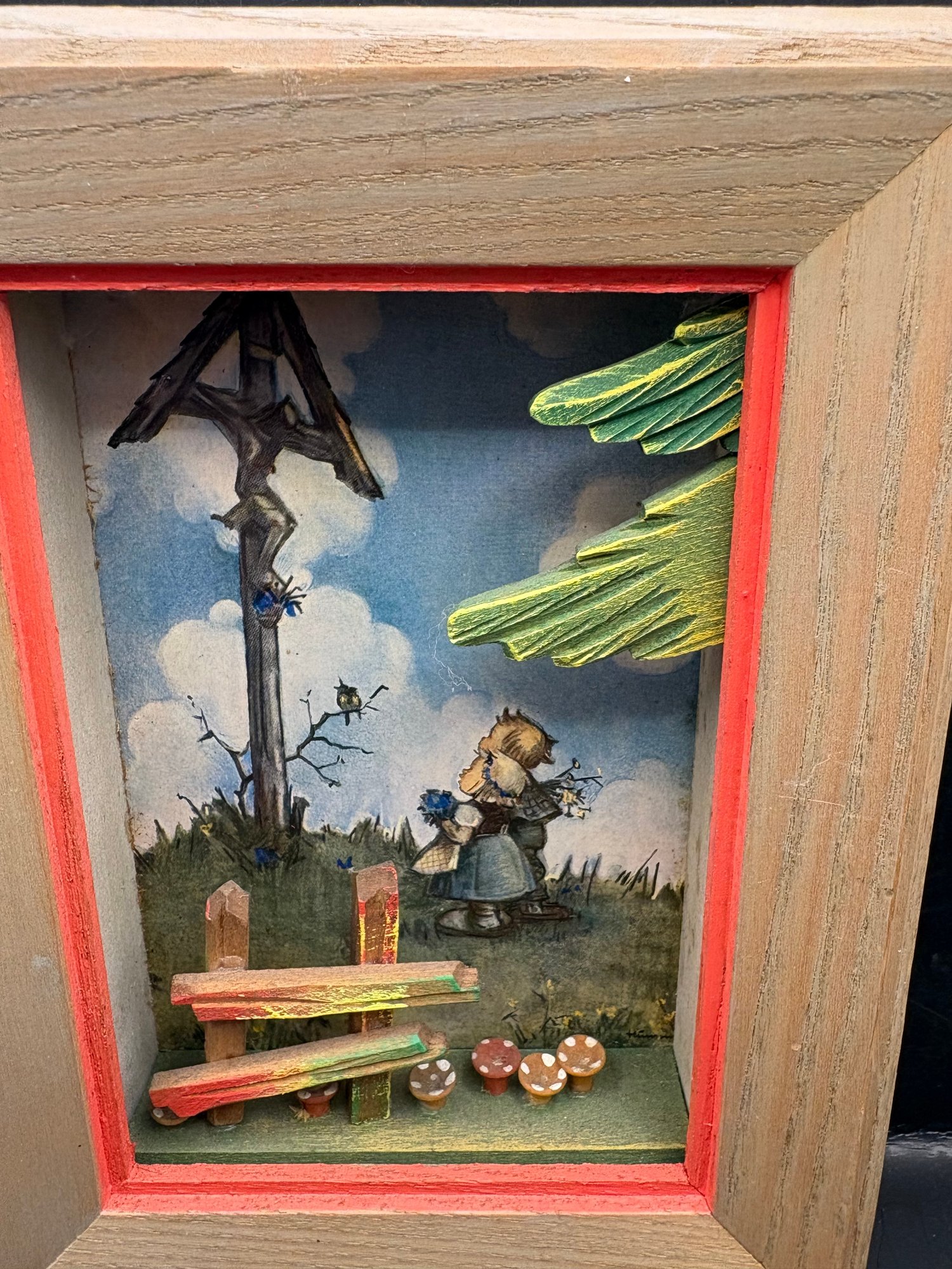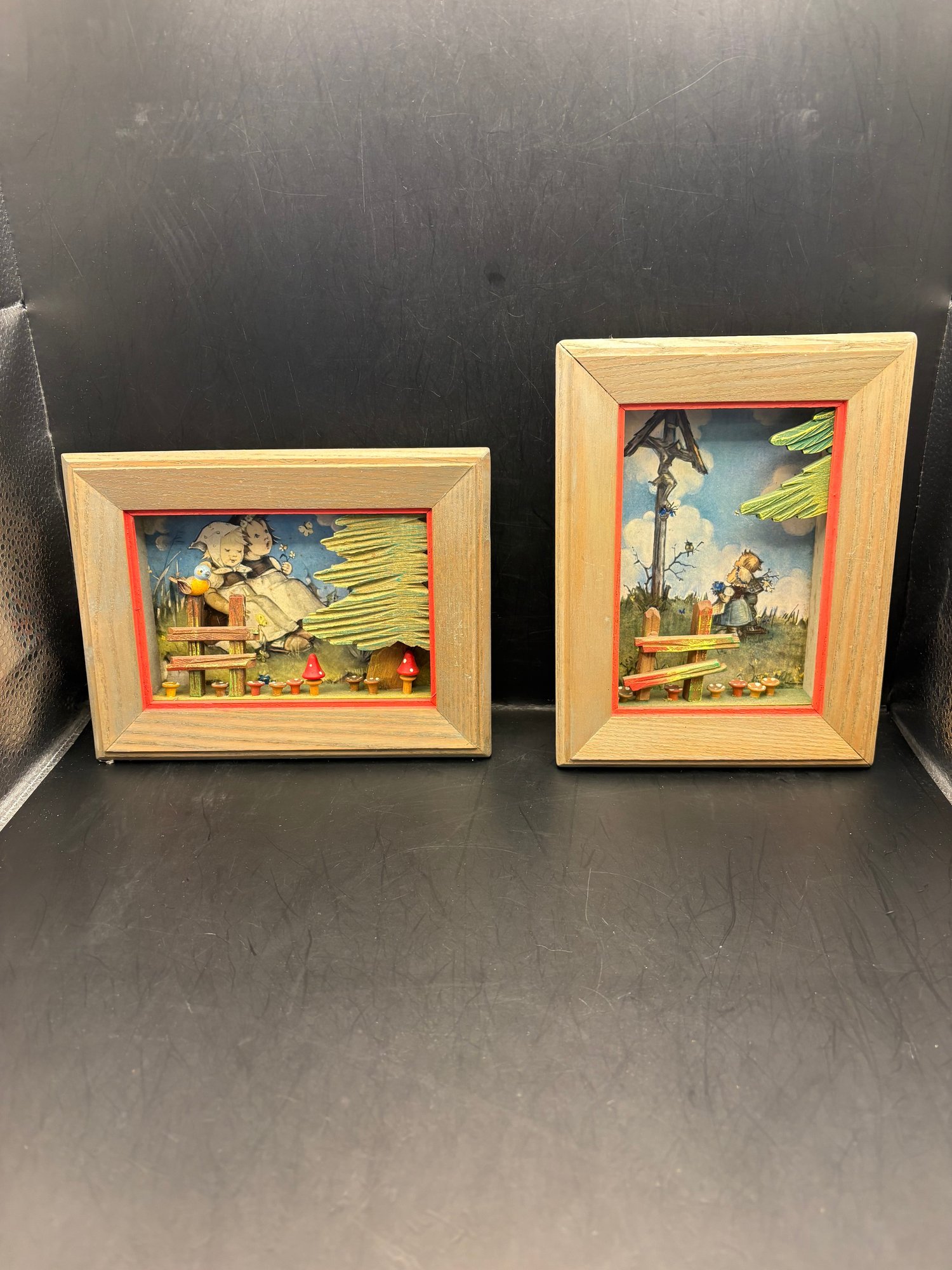 German Hummel 3D wood carved shadow boxes, often attributed to Emil Fink Verlag or ANRI.