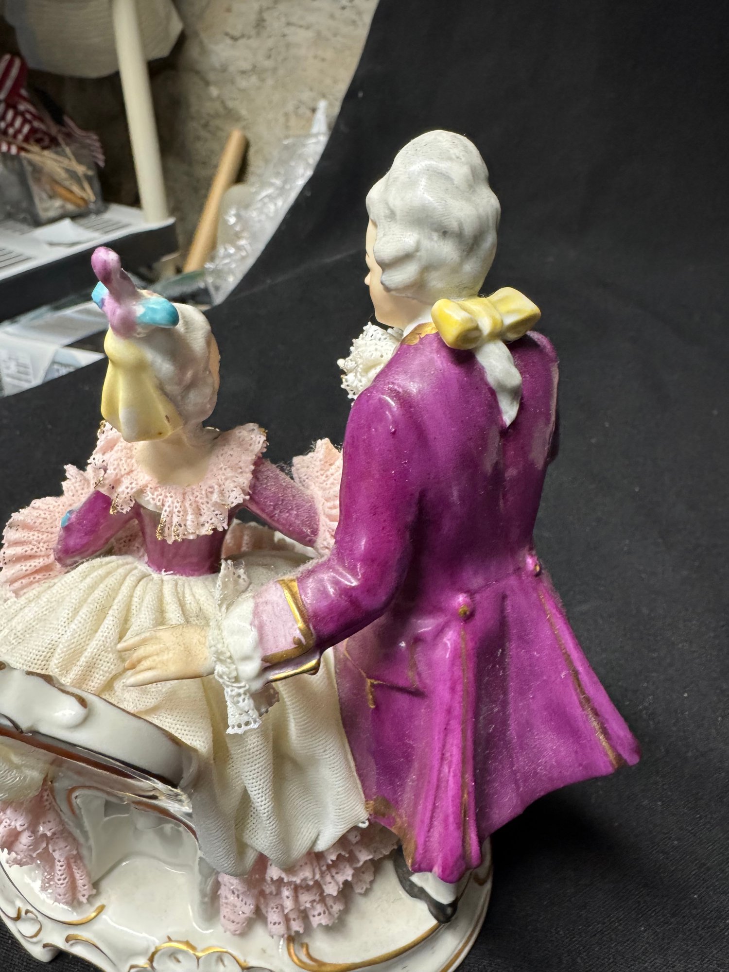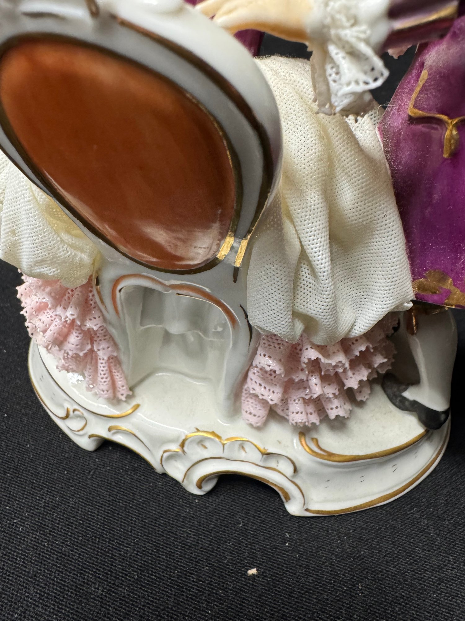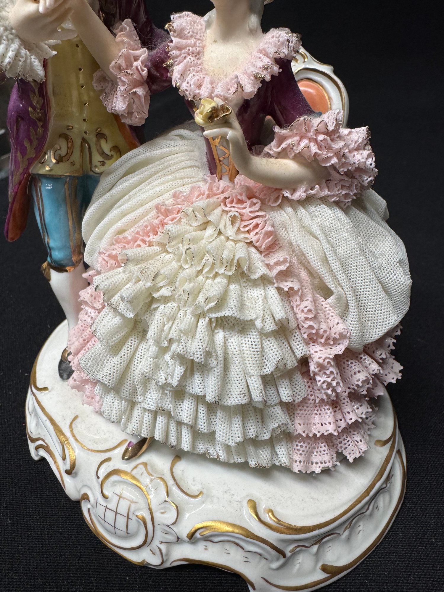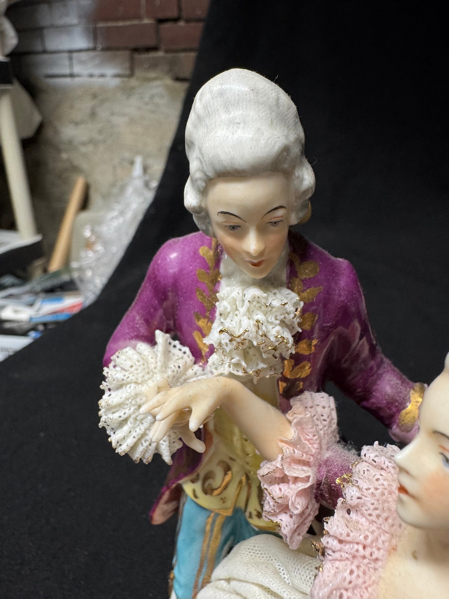 some minor areas of damage in the lace, missing a finger