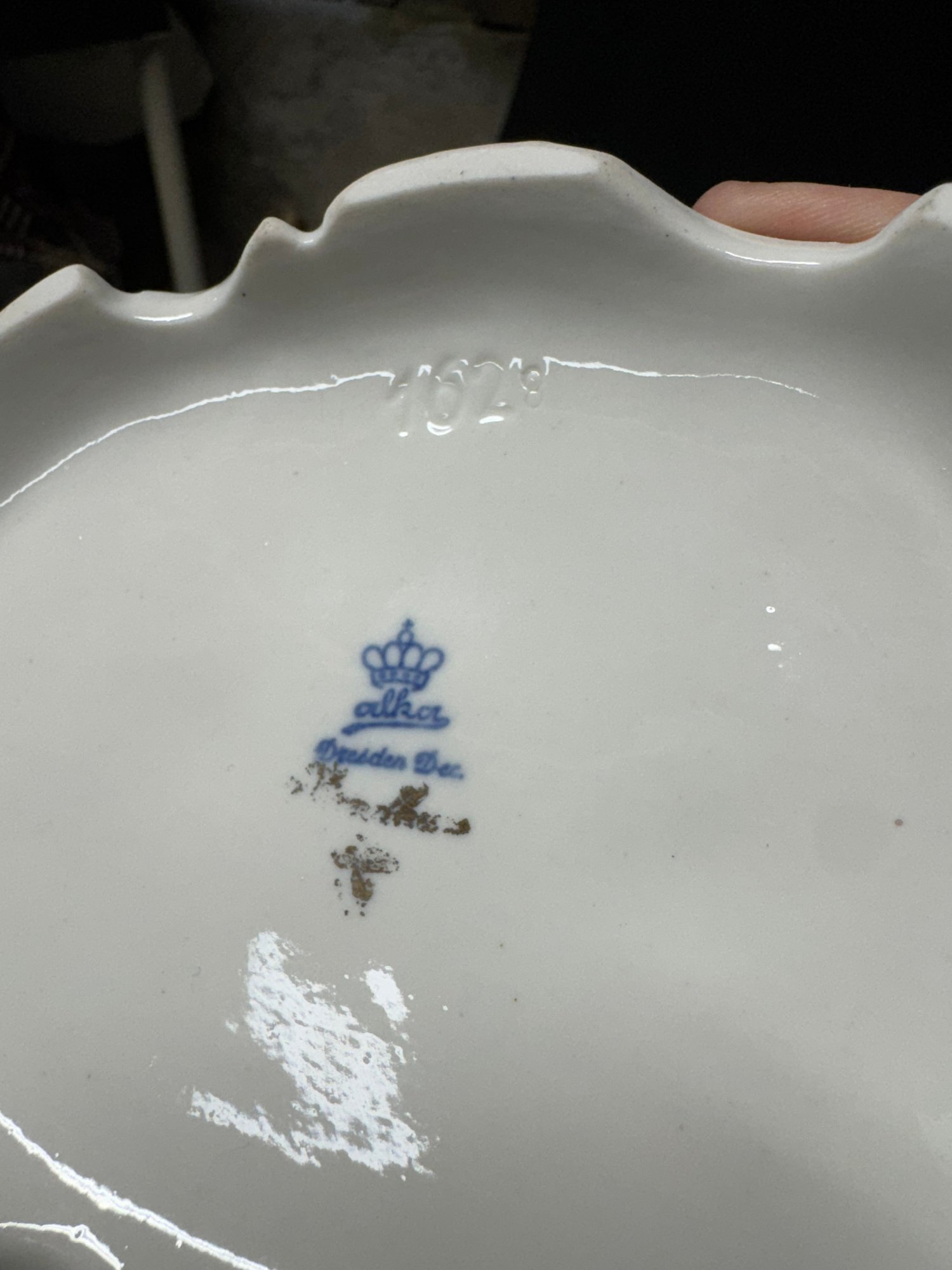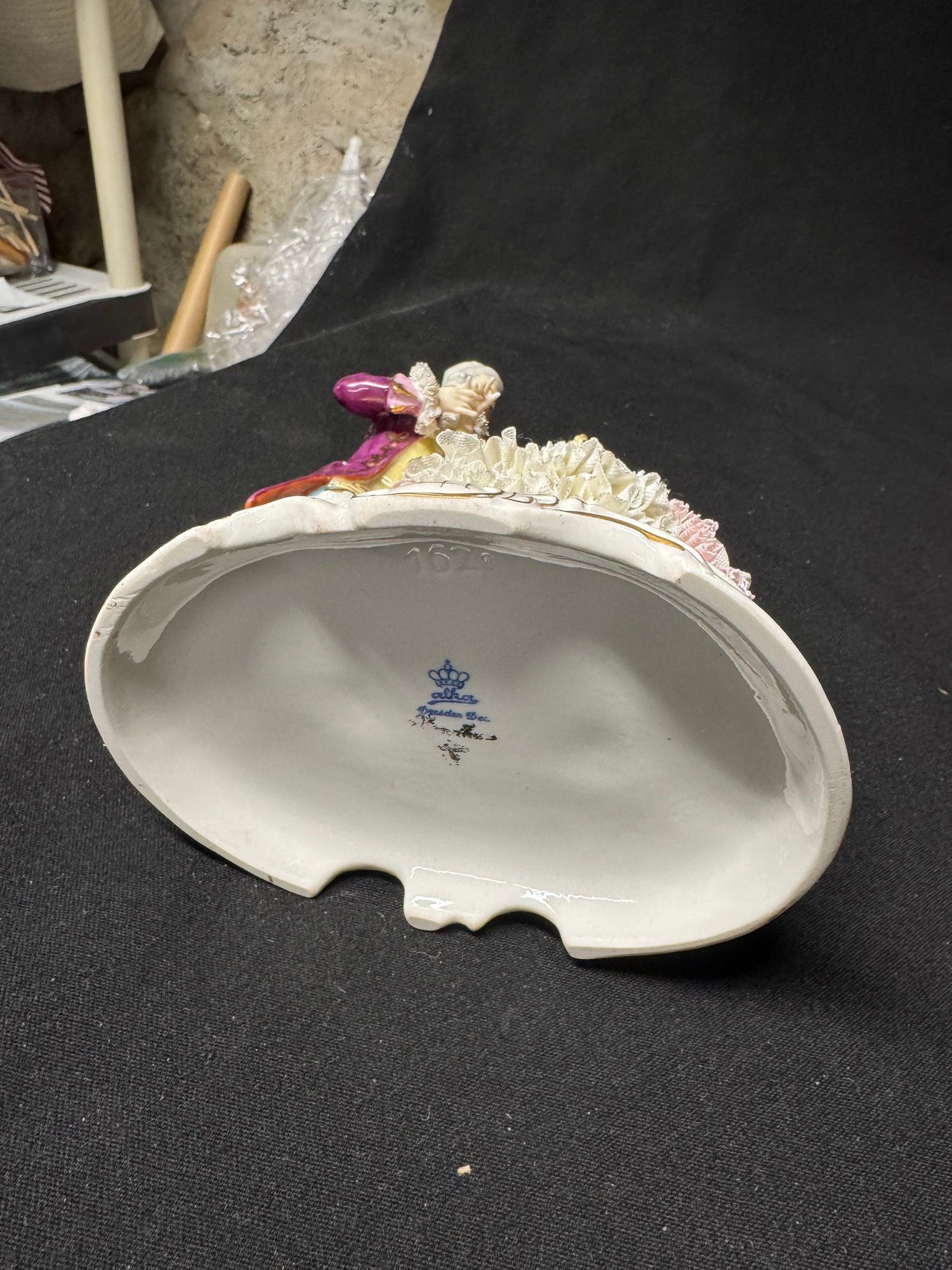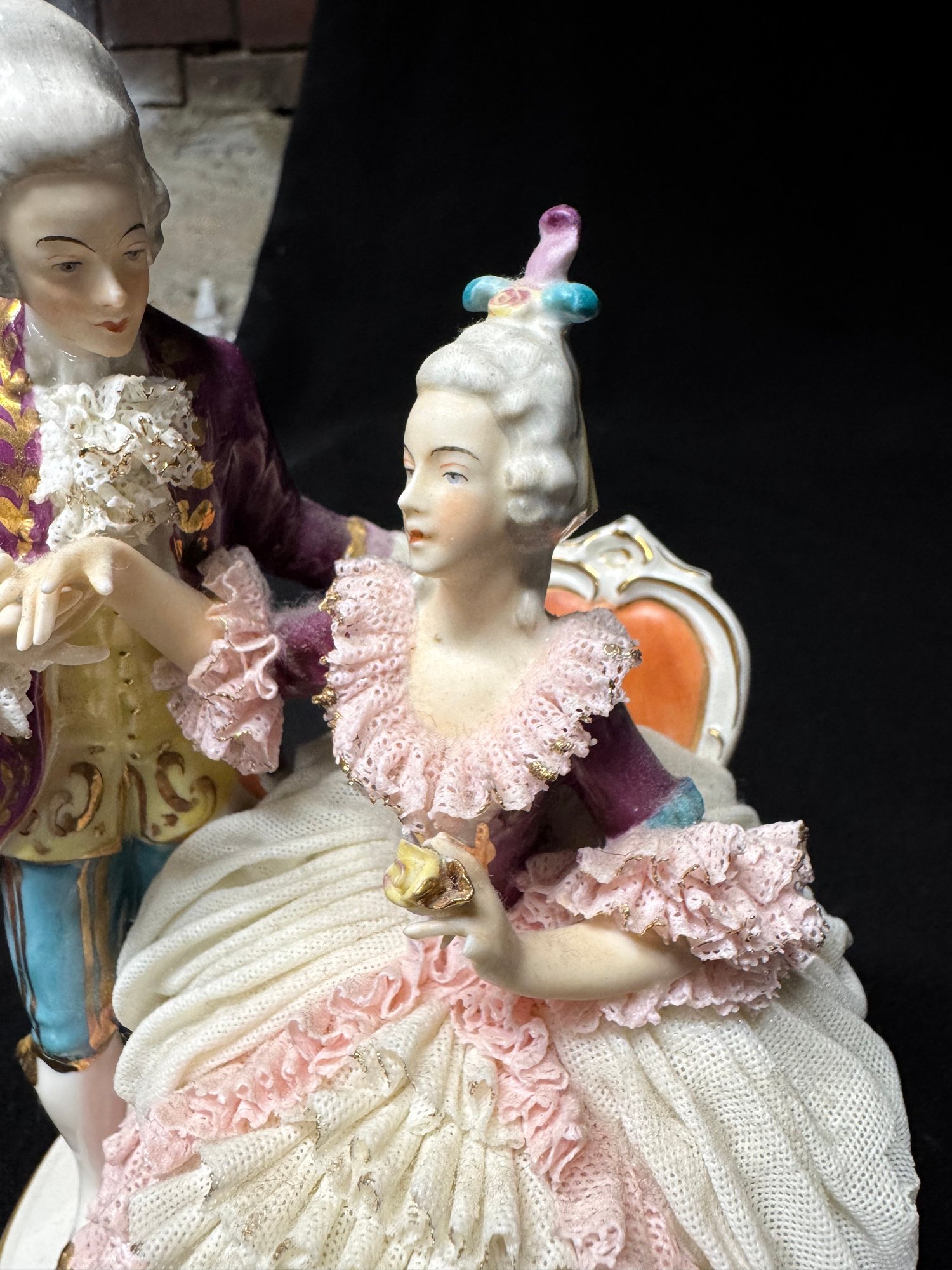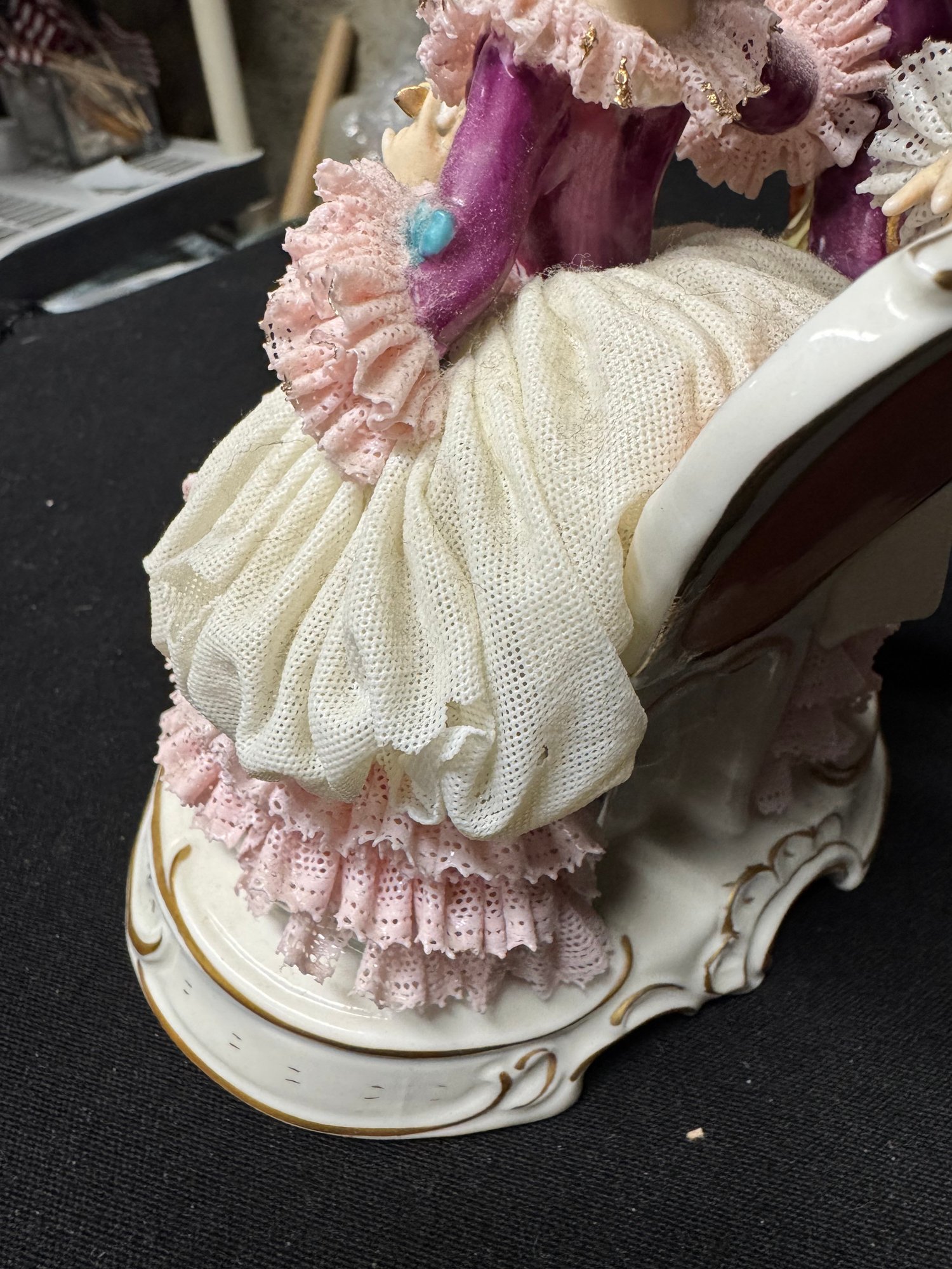 some minor areas of damage in the lace, missing a finger