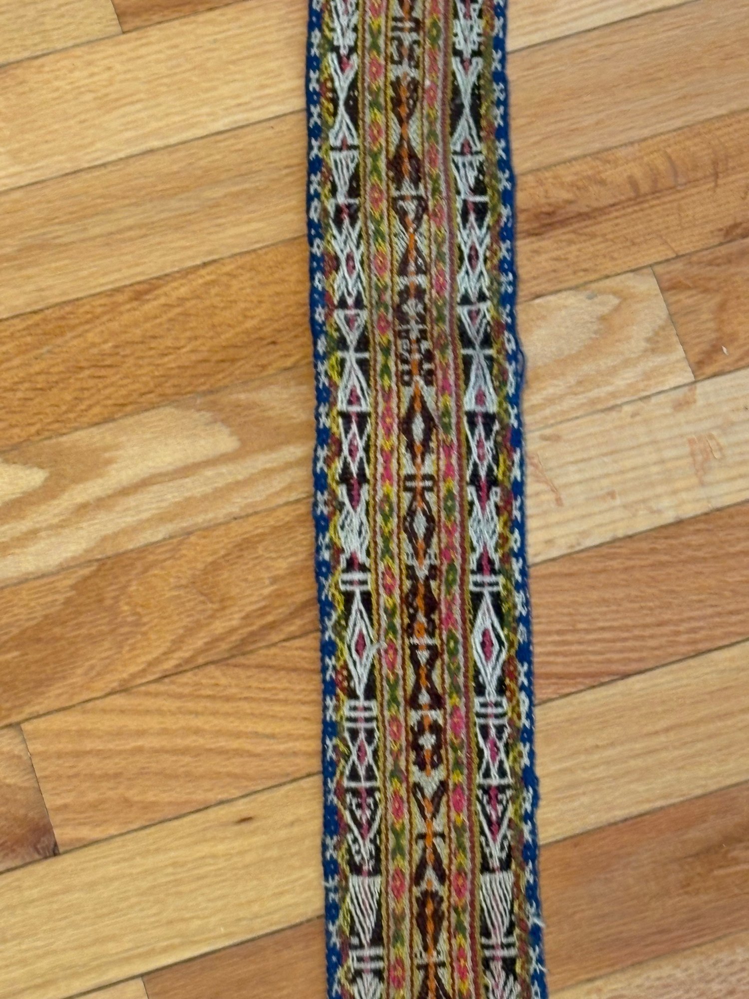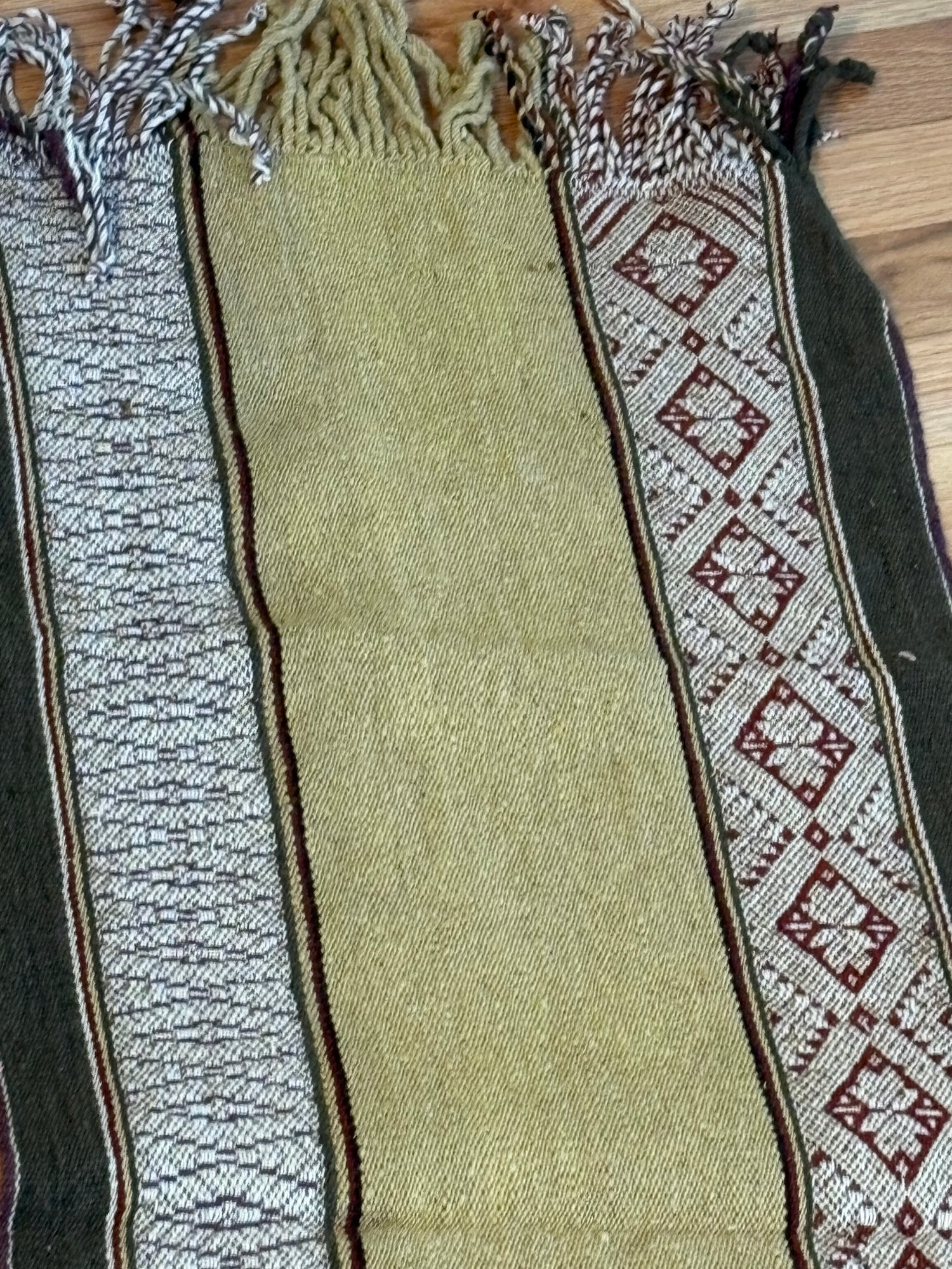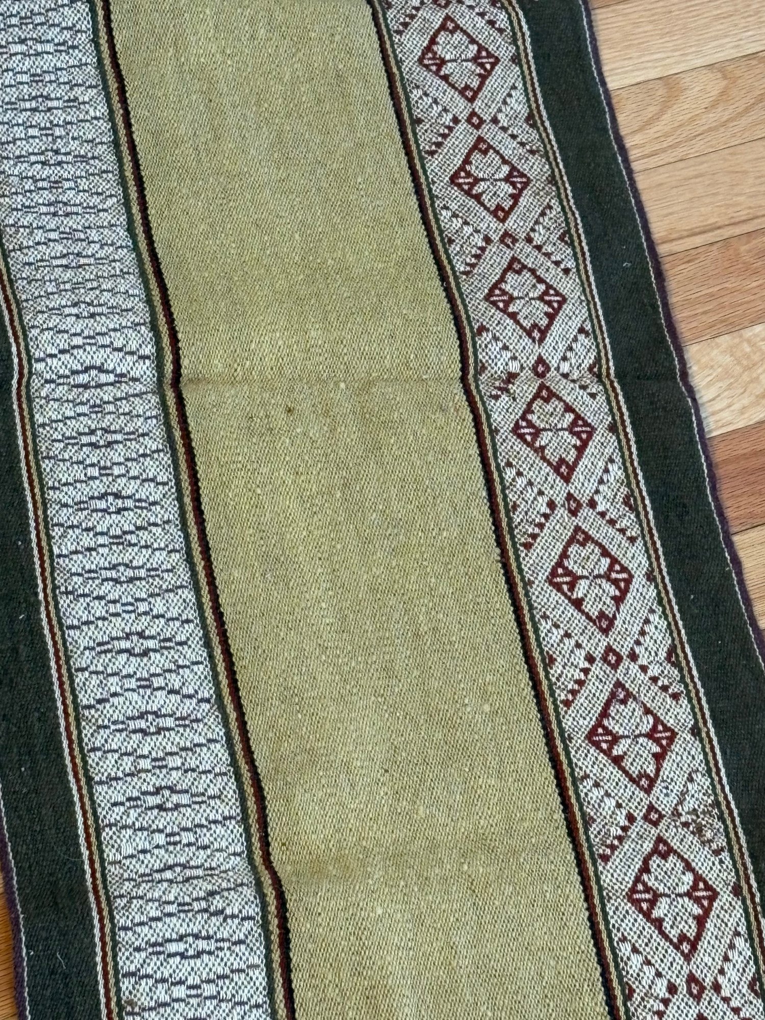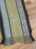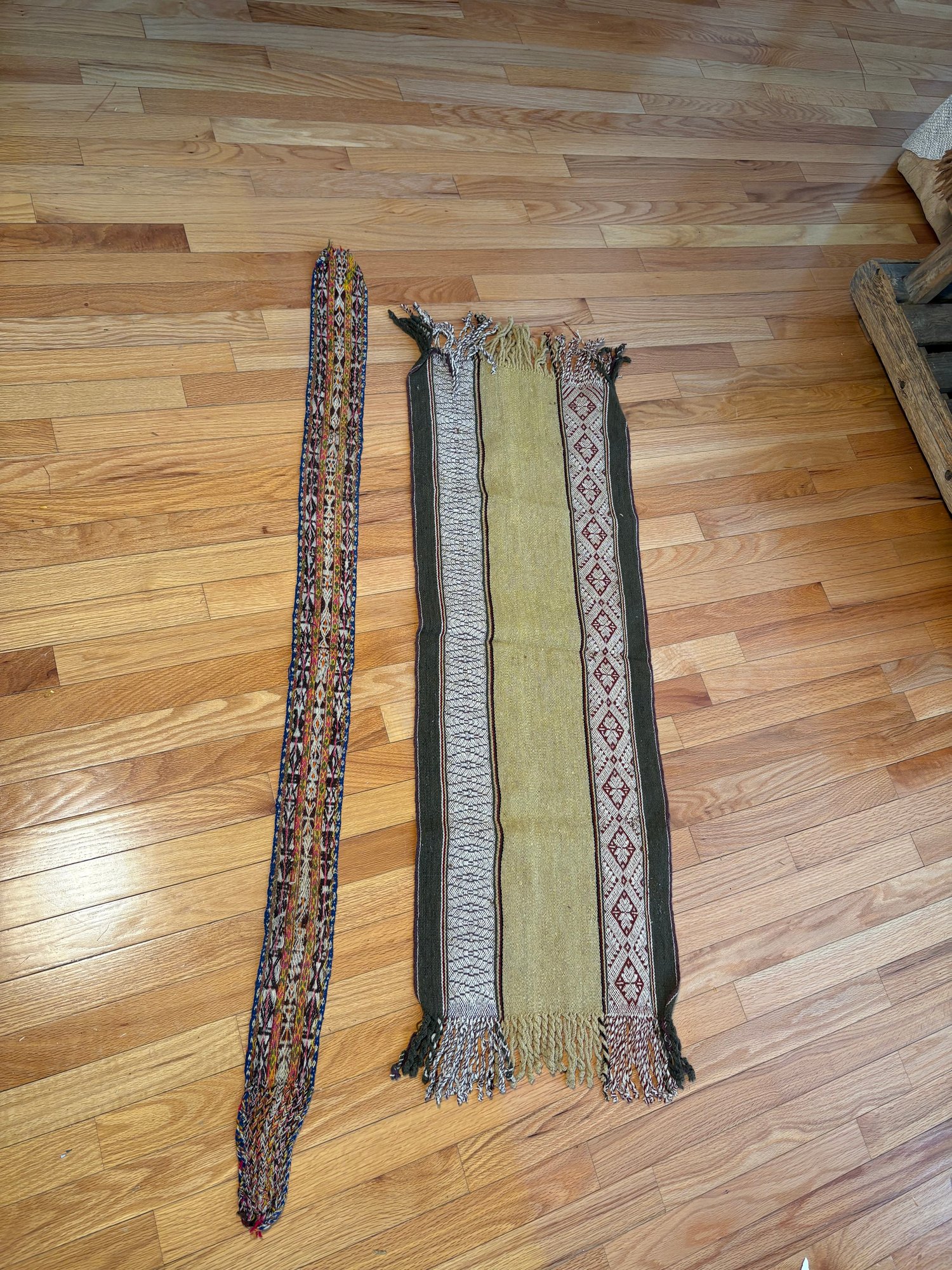 Dimensions approximately green and red pattern table runner 42 *15.75. Brown and blue table runner dimensions approximately 57 *3.5