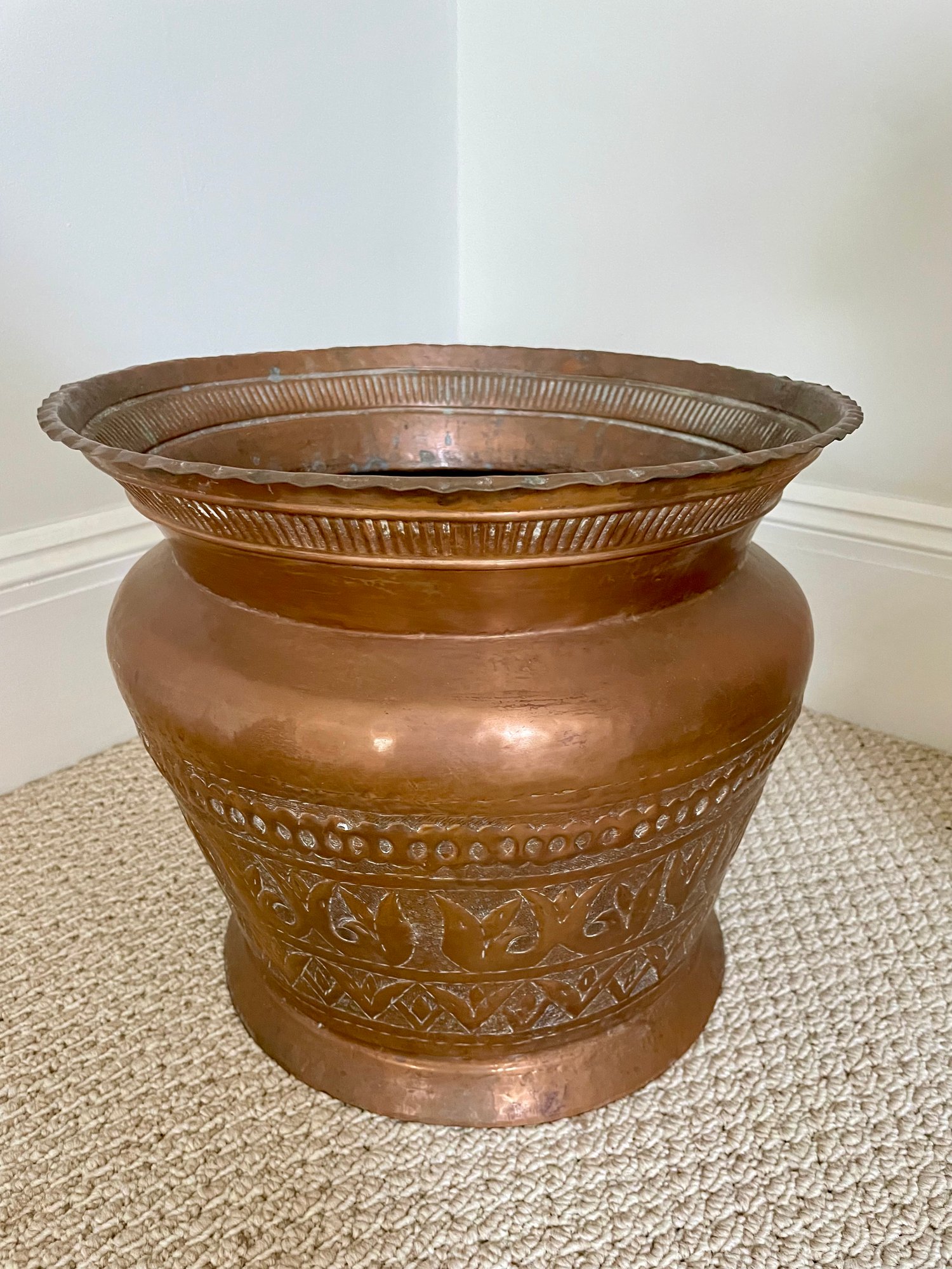 Etched copper planter