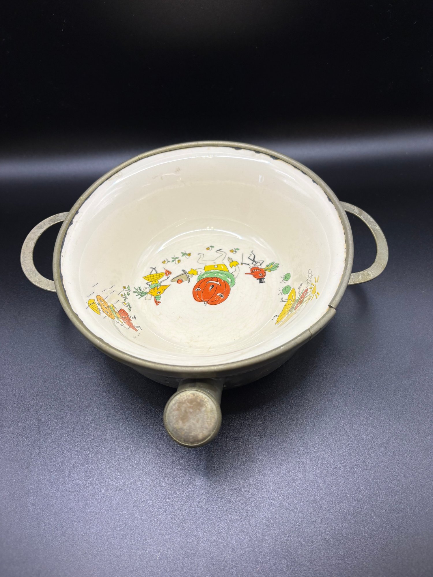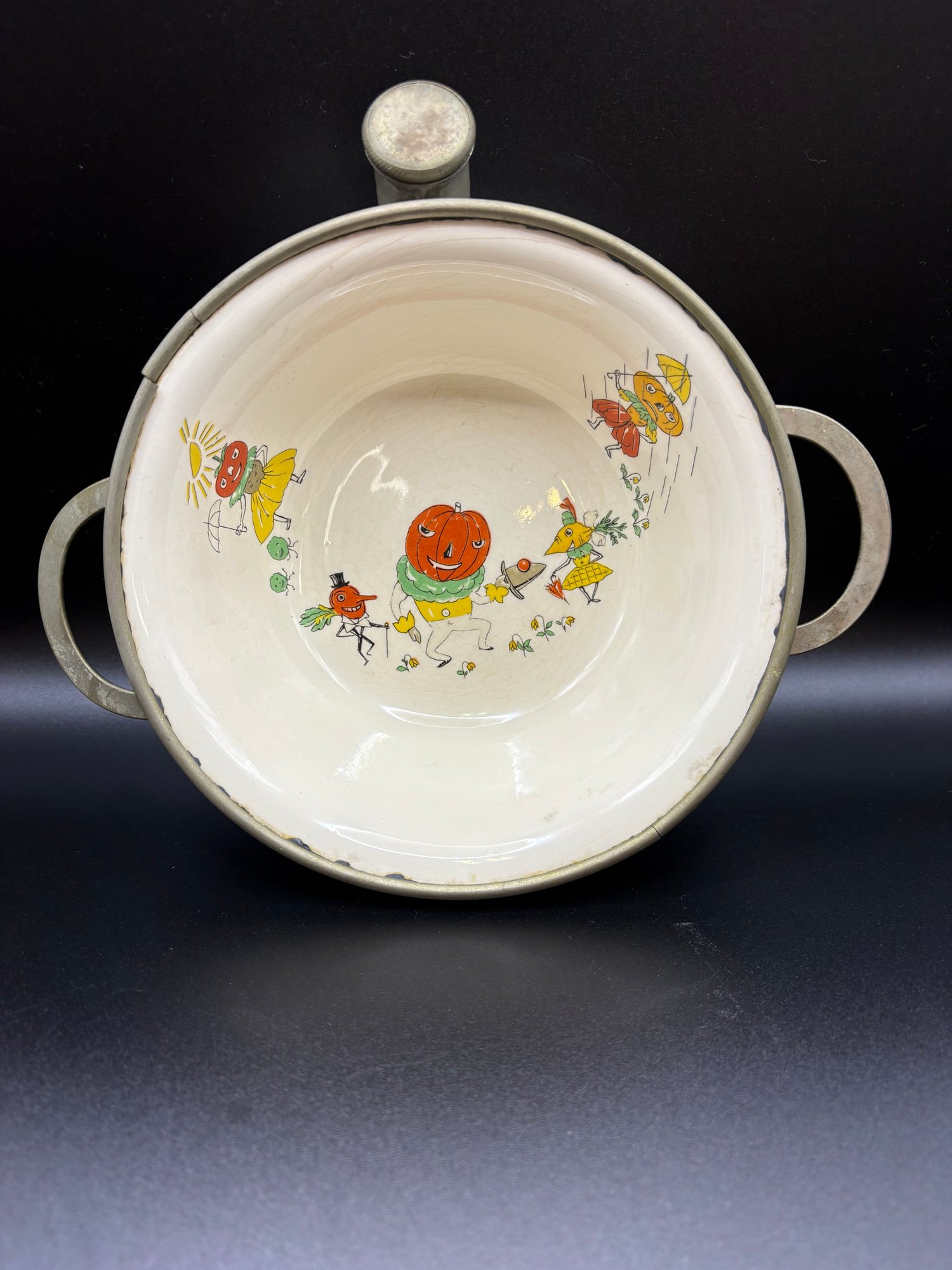 Excello baby/child warming bowl with a pumpkins and vegetables design. Vintage