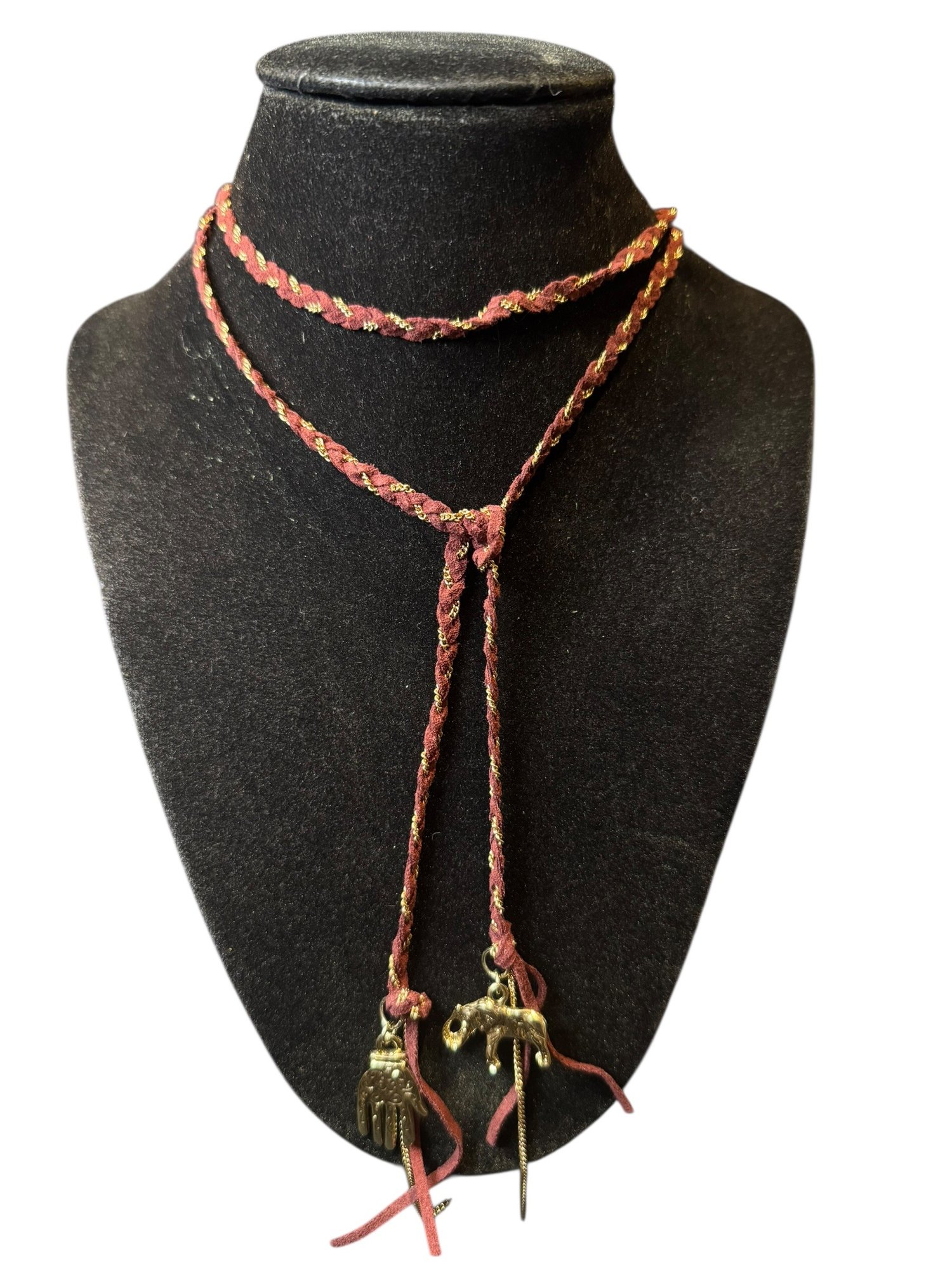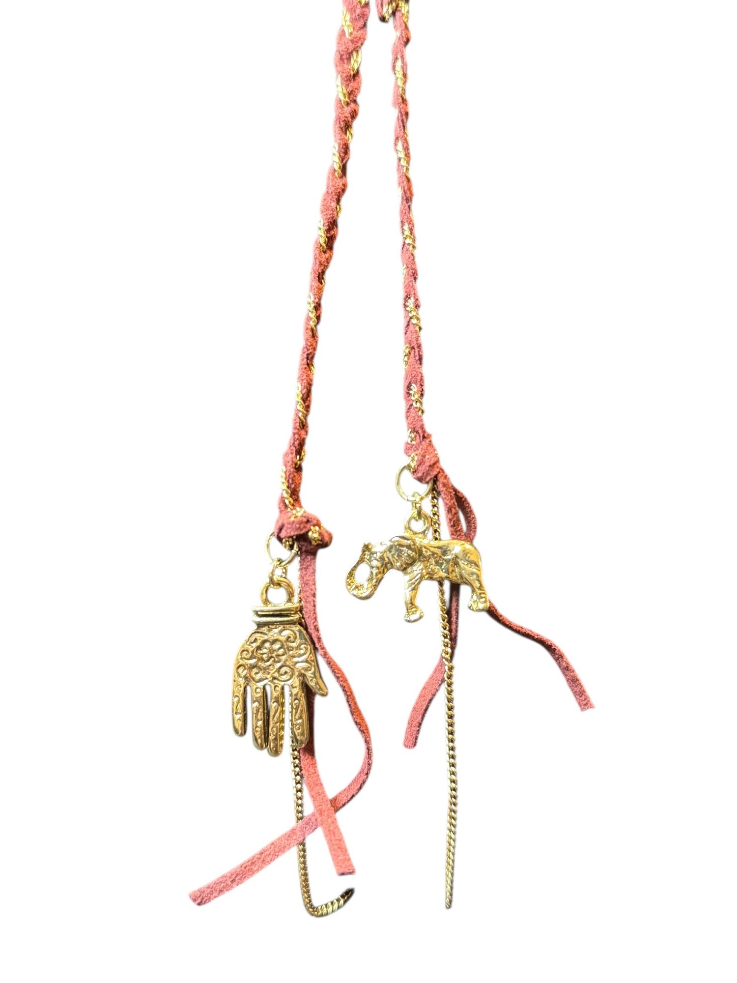 2. Braided Hamsa and Elephant Necklace (21" length)