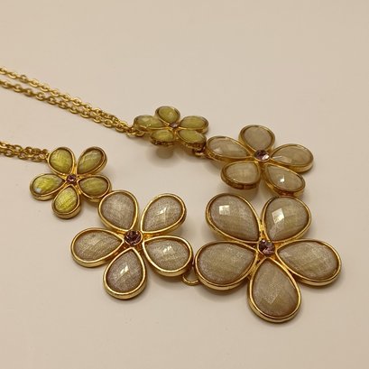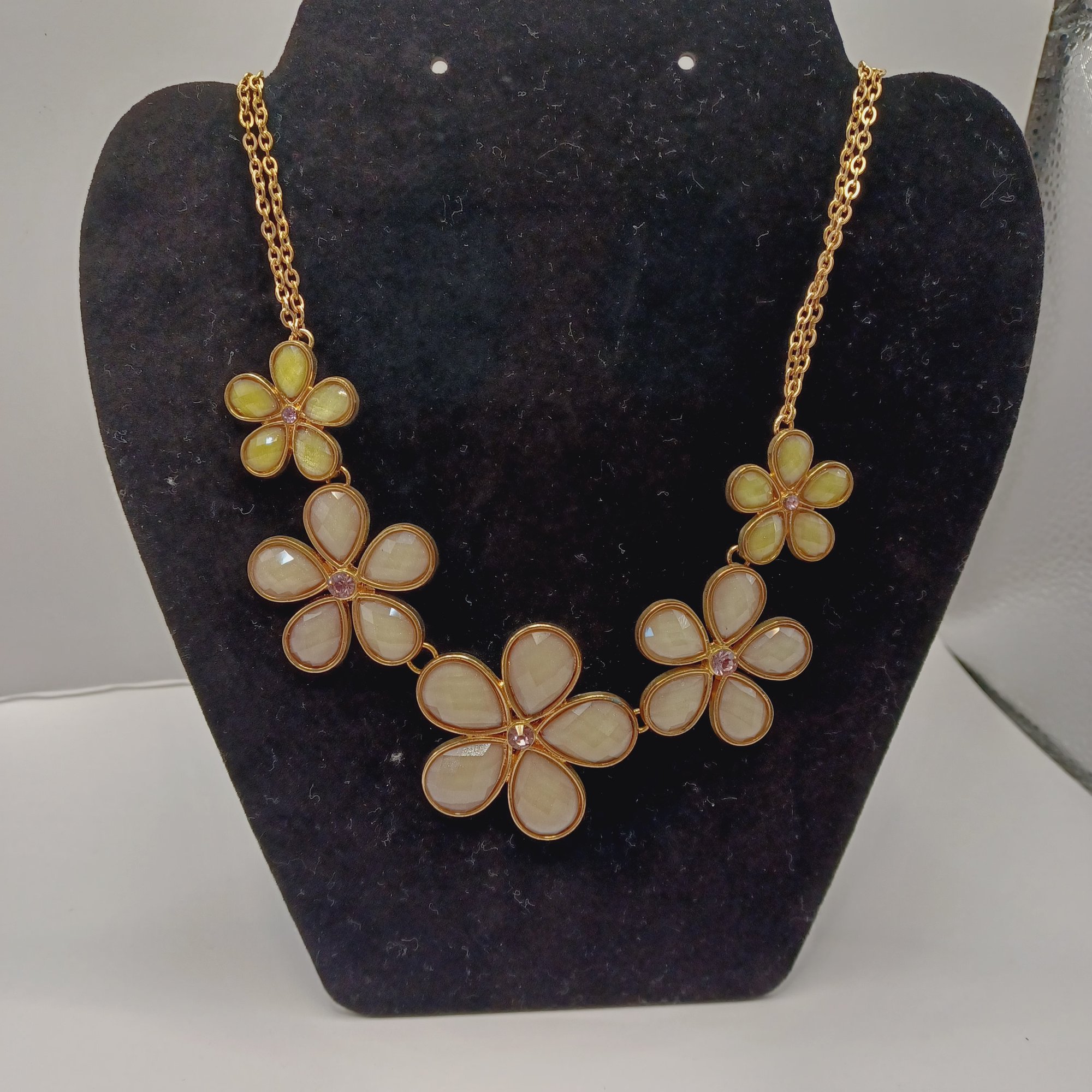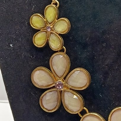 Shimmering taupe and chartreuse stones set in goldtone