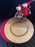 Fabulous painted metal chargers 8-red, 1- gold, 13 inch diameter, 2-adorable felt mouse ornaments 8 inches.