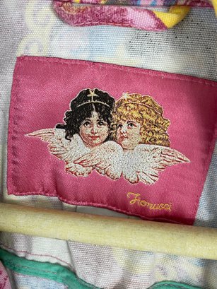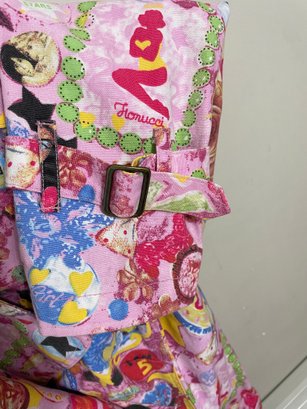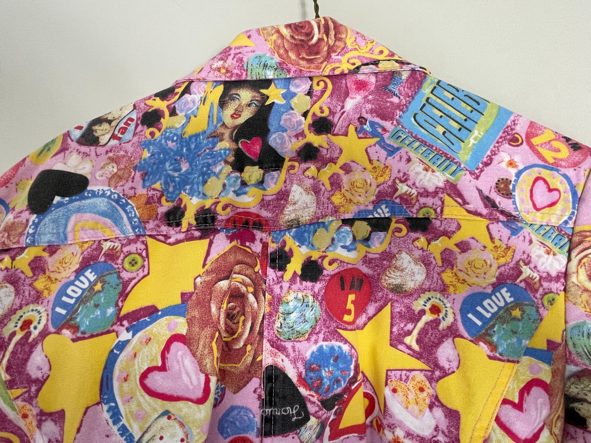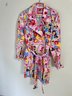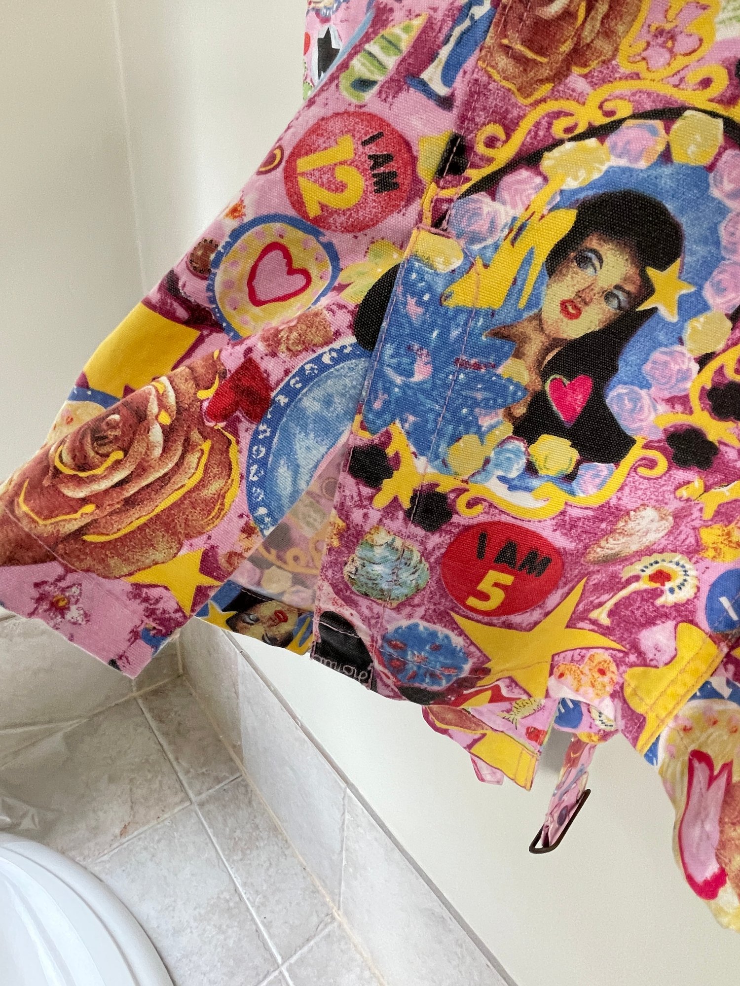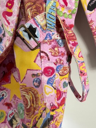 Vintage 2005 pop art trench coat with belt, side pockets and vent in back