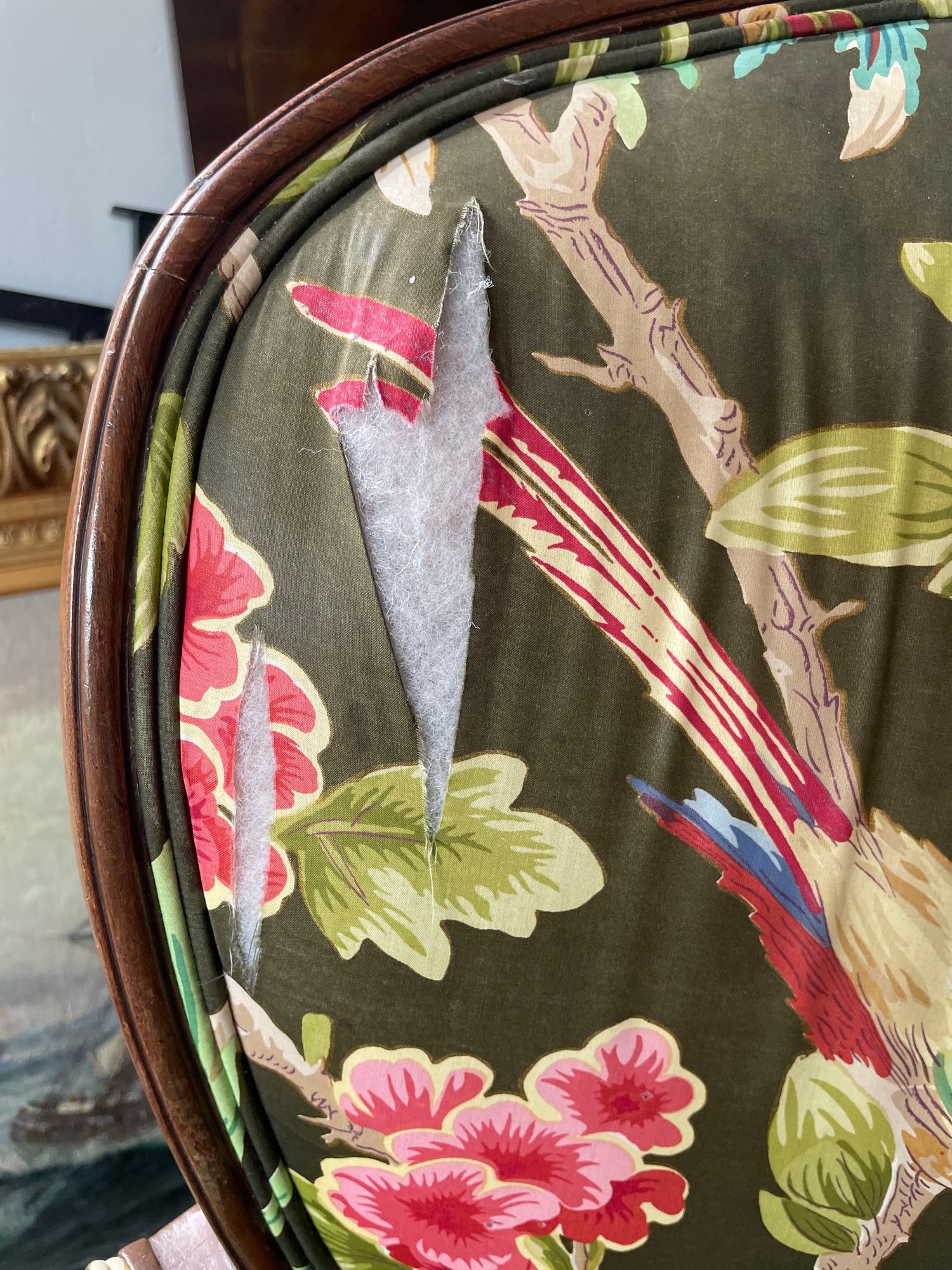 Tears in both seat back fabric see photo