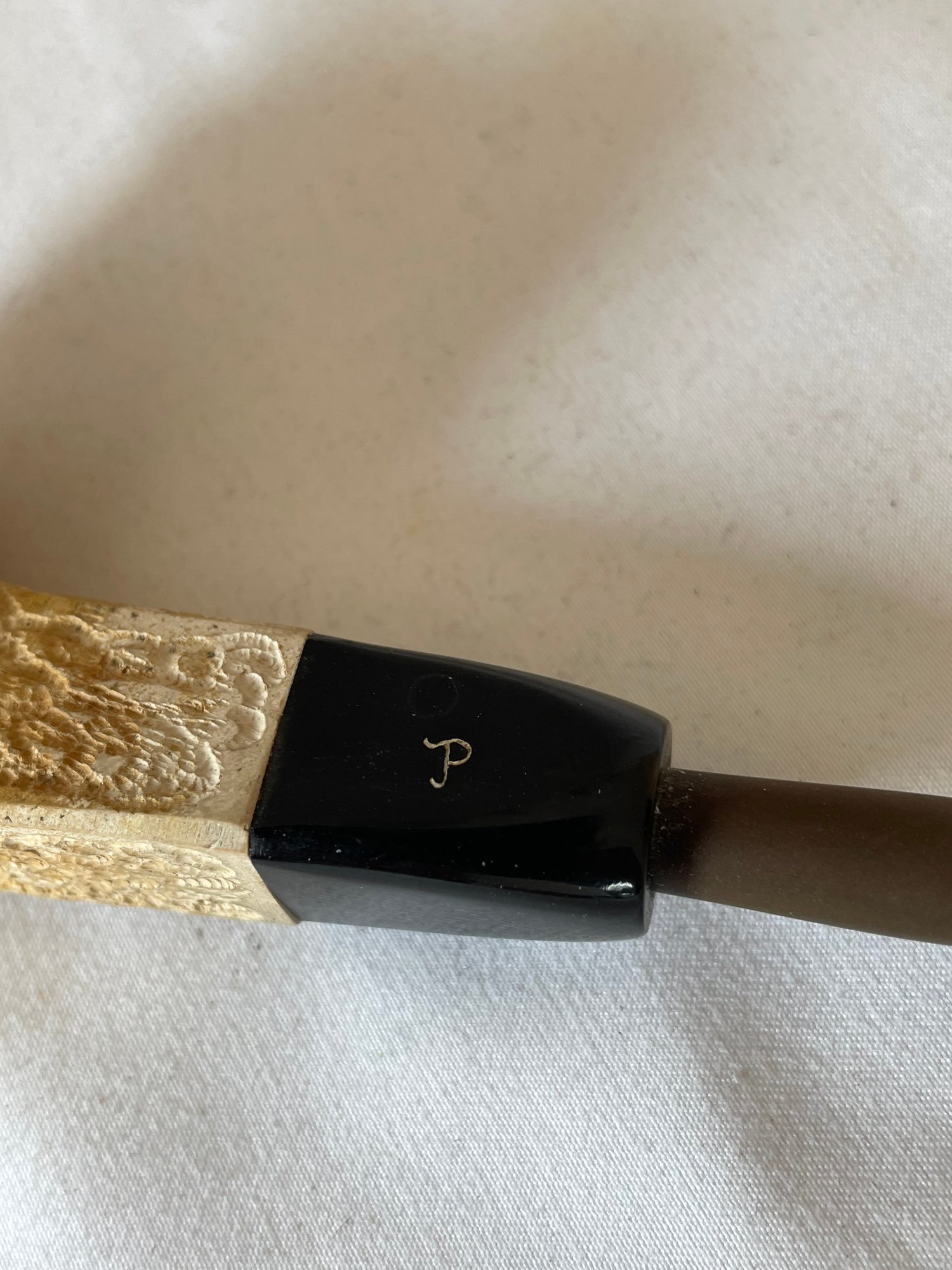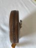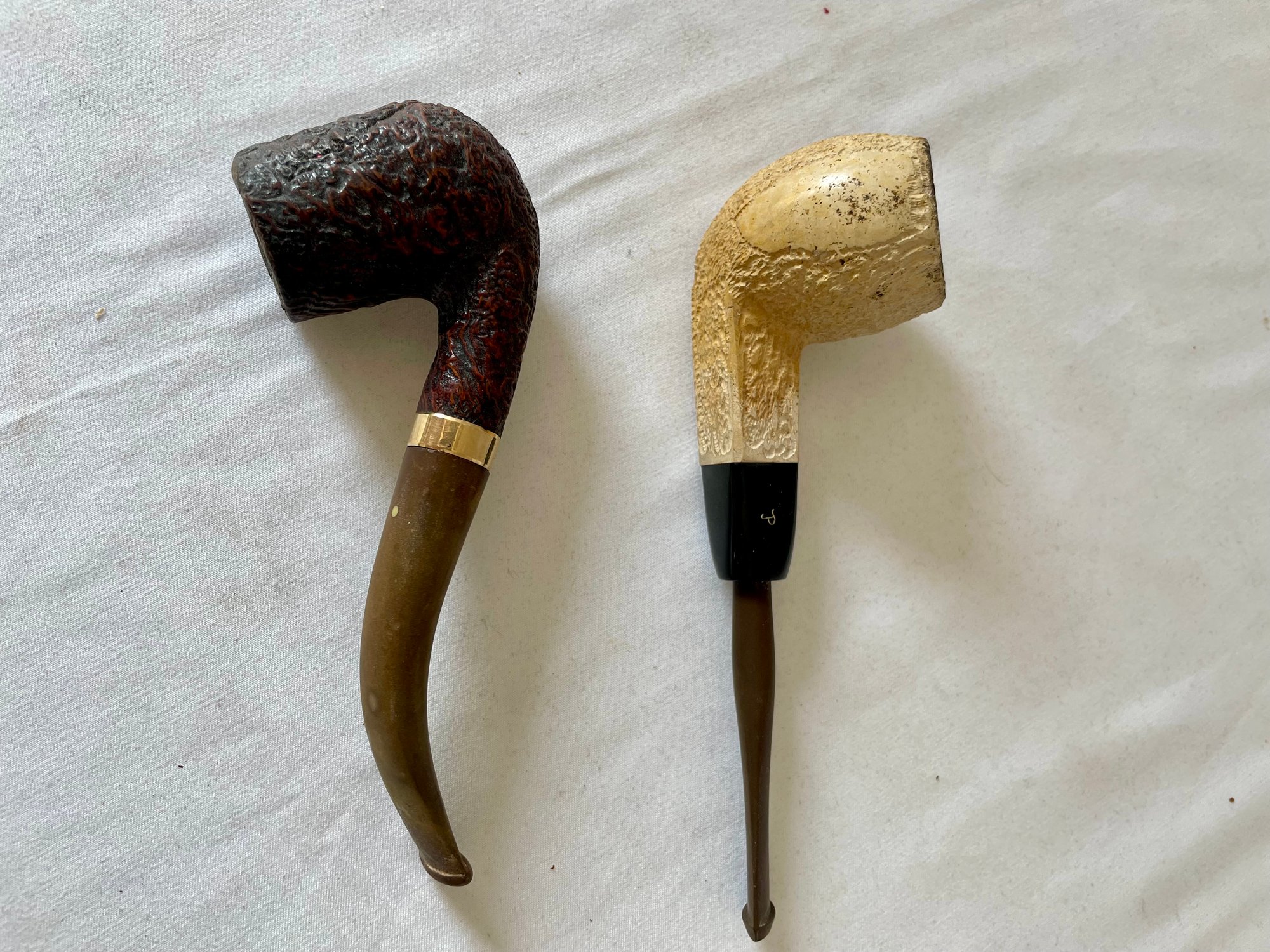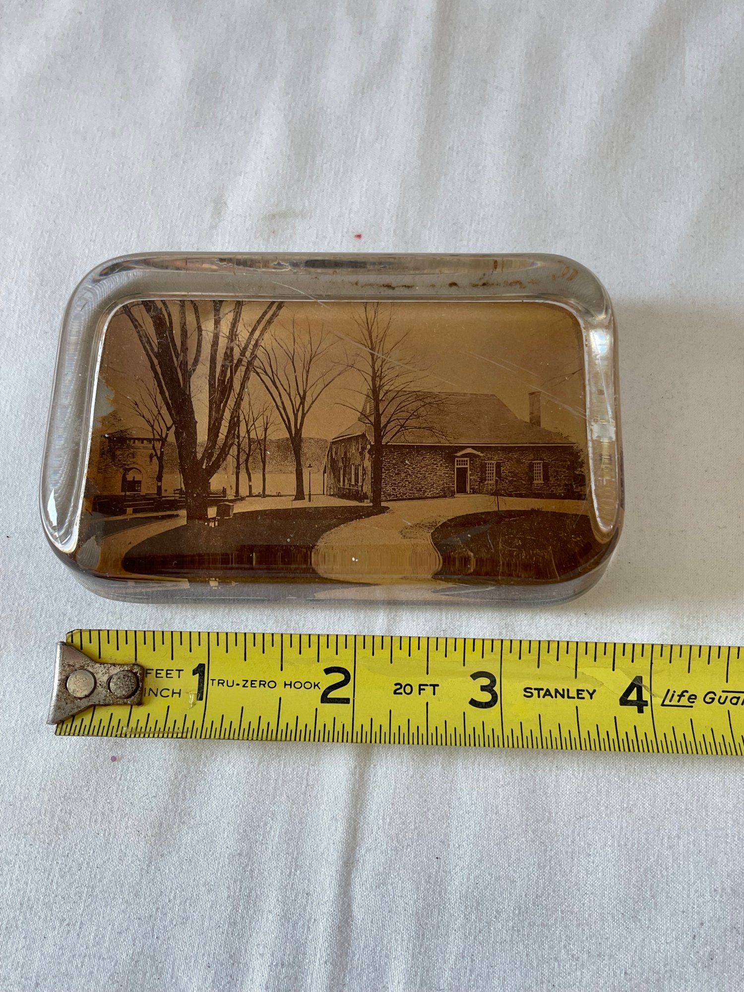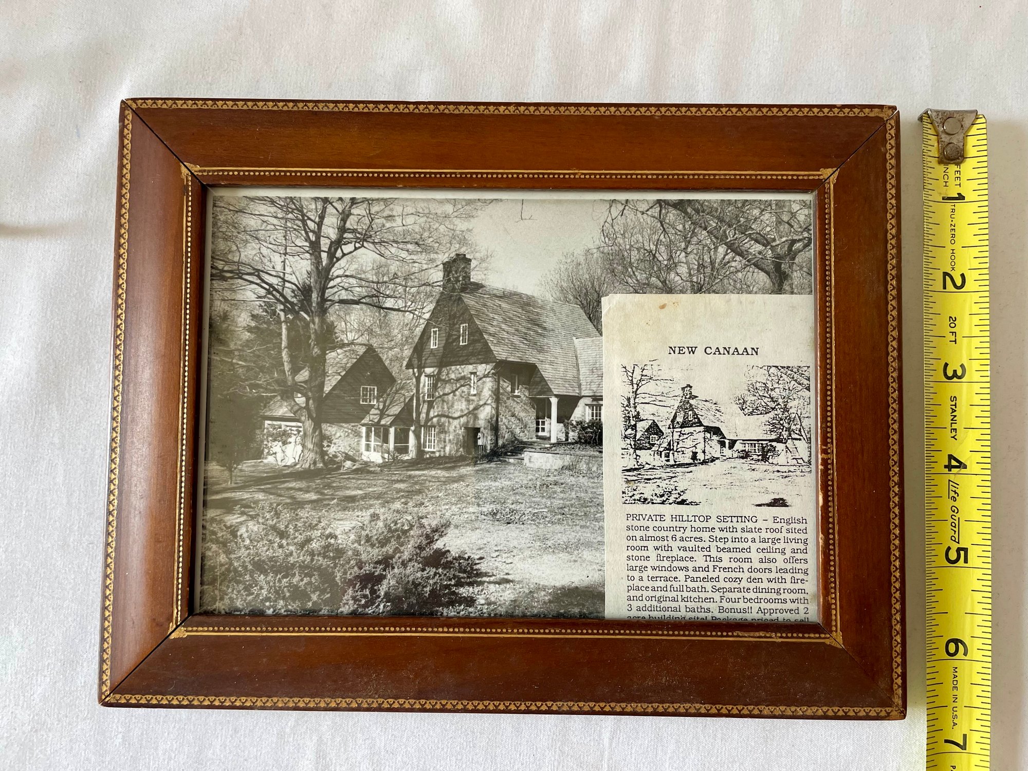 Lot of vintage items, Leather & wood frame, 2 pipes, 2 magnifying glasses, cloth measuring tape, paperweight