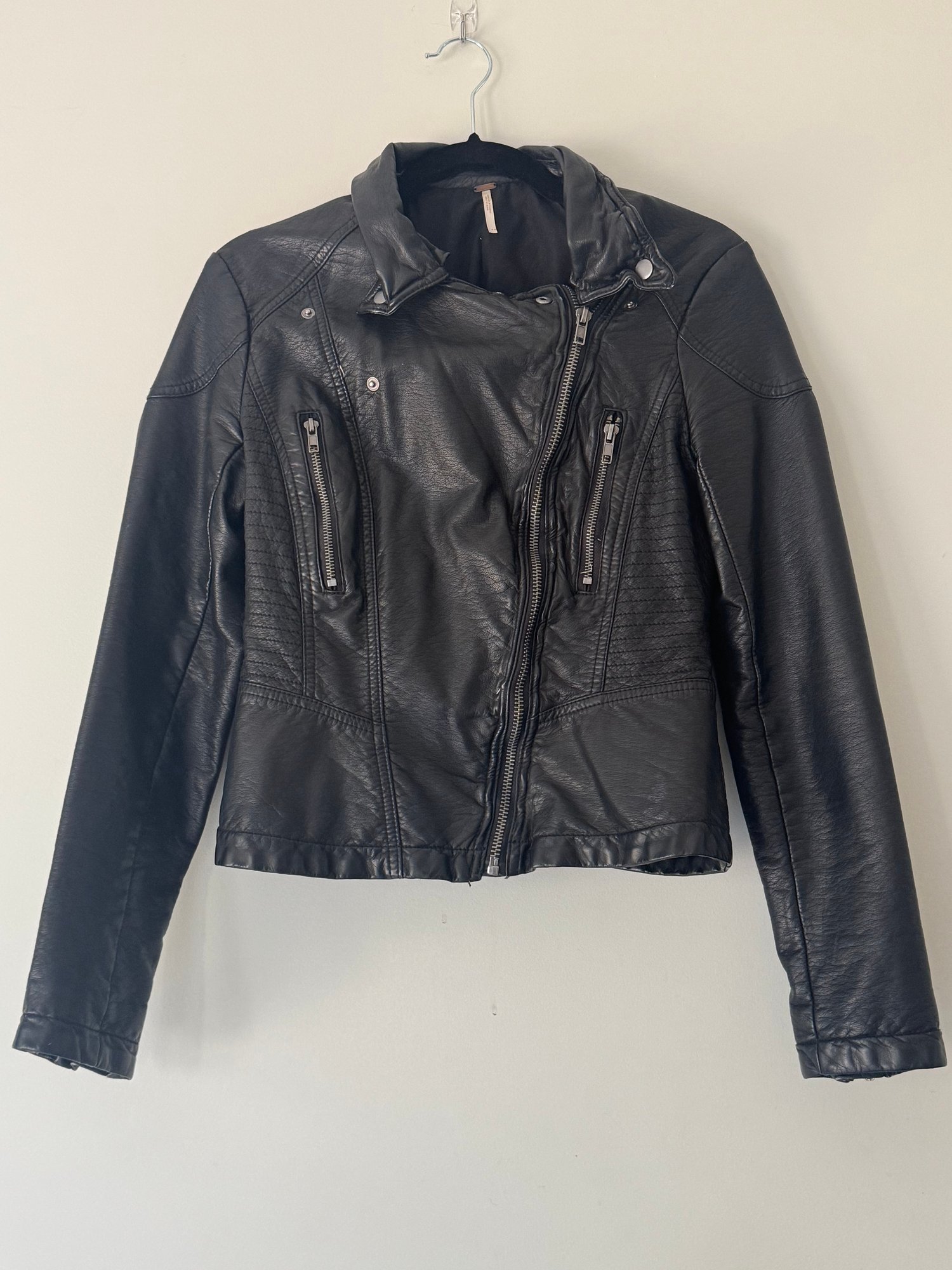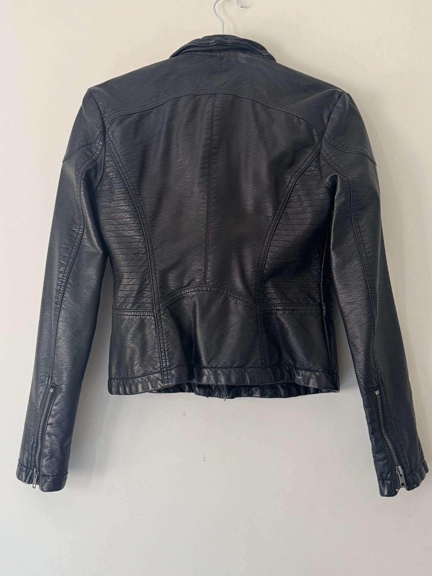 Style: faux leather moto jacket