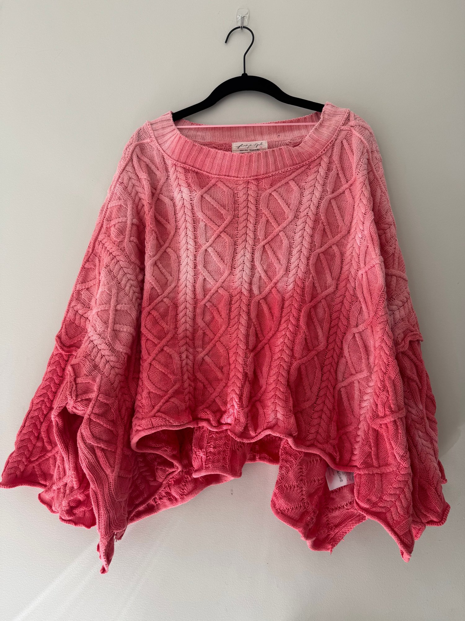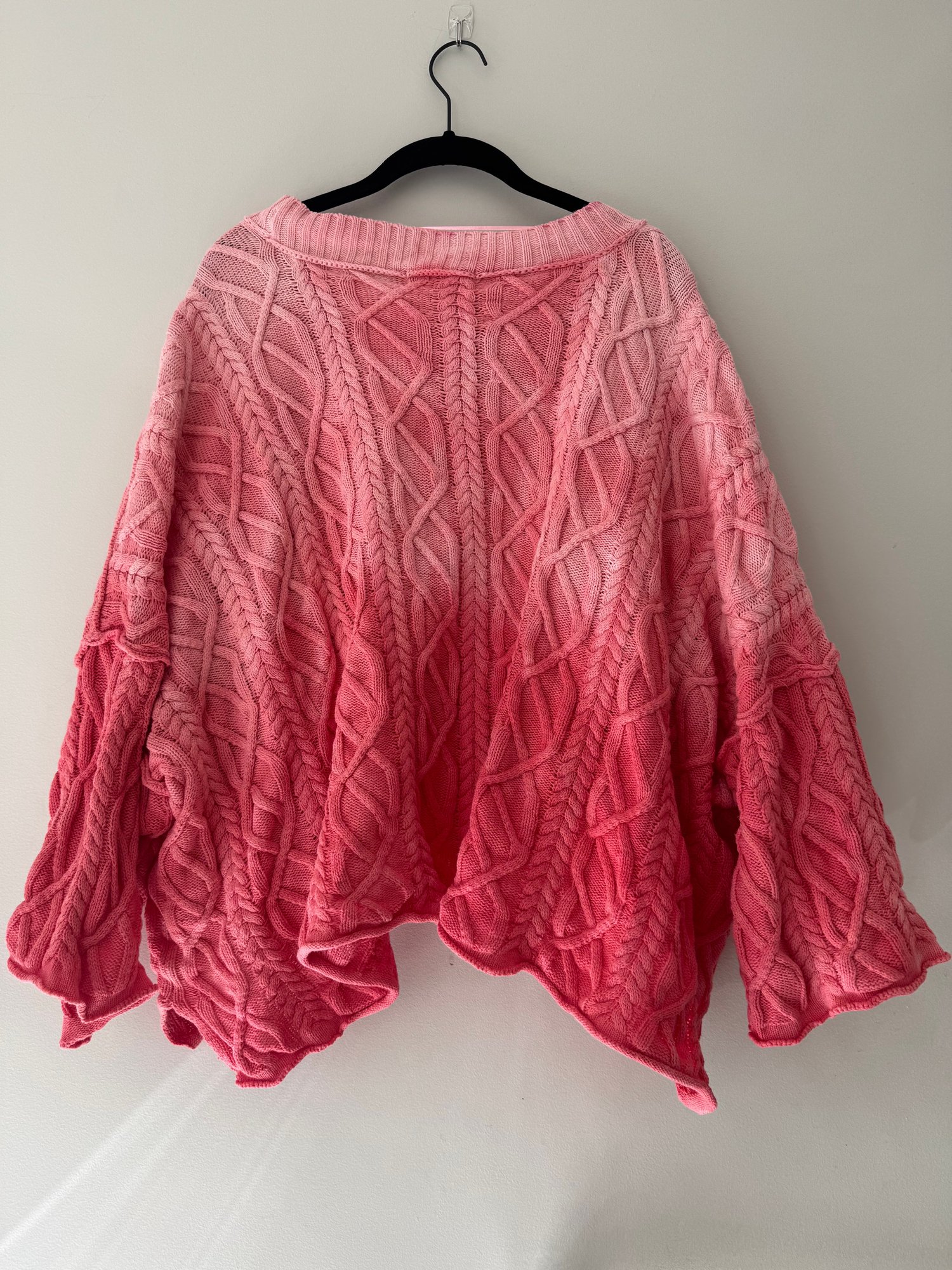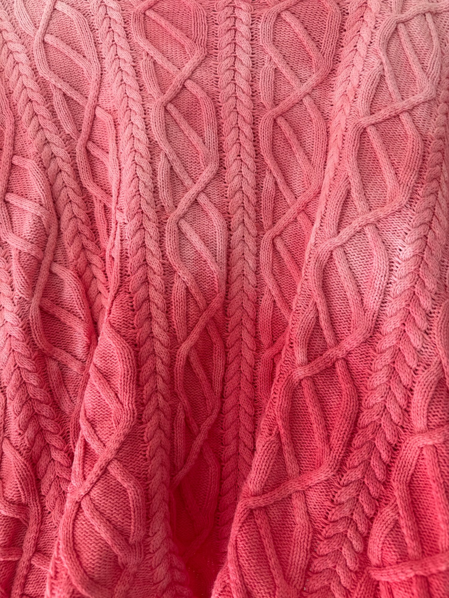 Style: Ombré, coral colored, cable knit sweater