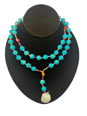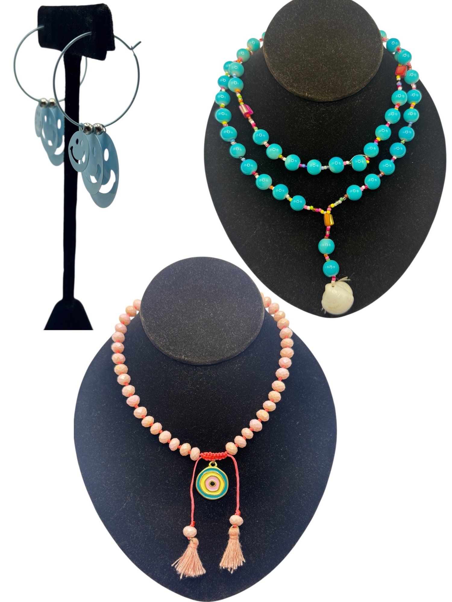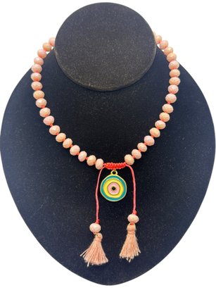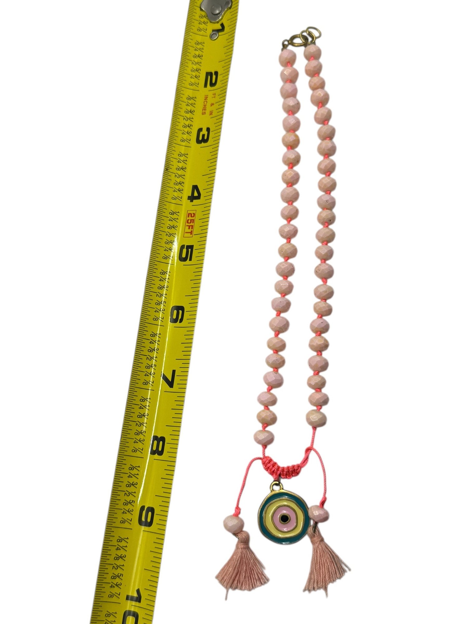2. Pink Beaded tassel evil eye necklace, clasp closure (pull string adjustable length)