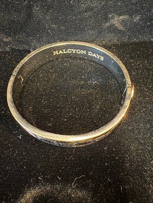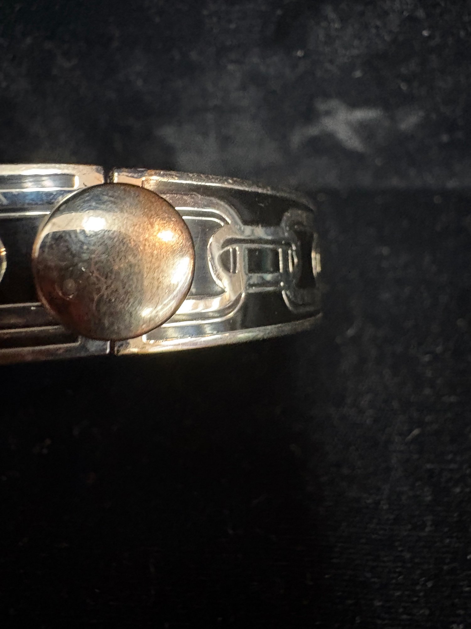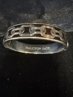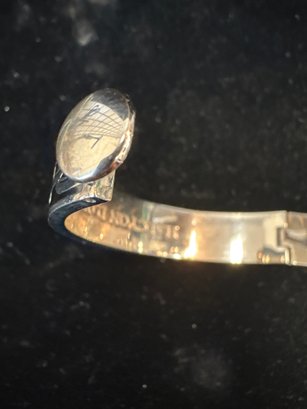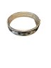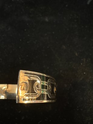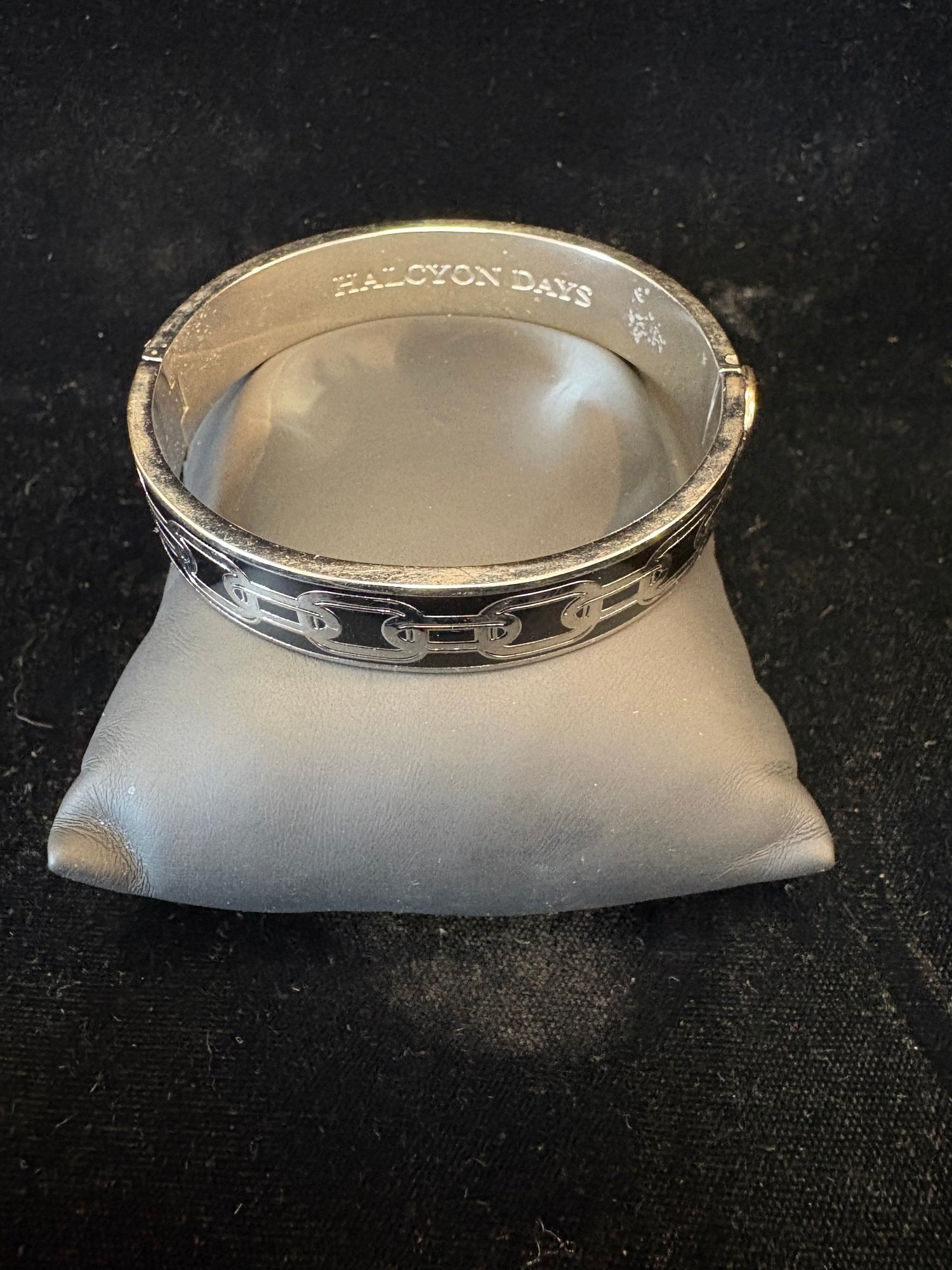 Black and silver toned bracelet it latches and un latches with a button that lifts up
