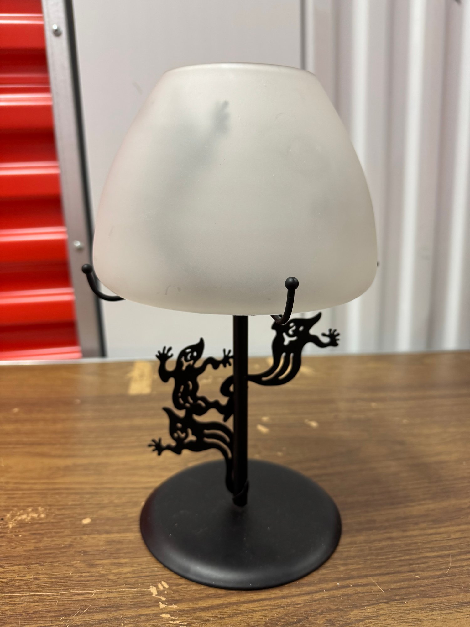 includes glass shade as well, when activate it looks like shadowy ghosts inside