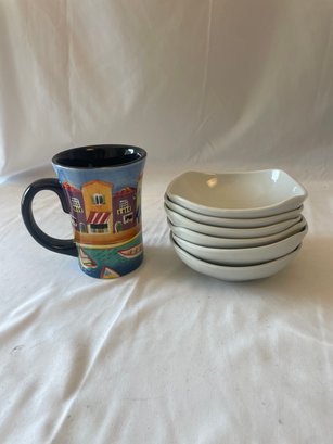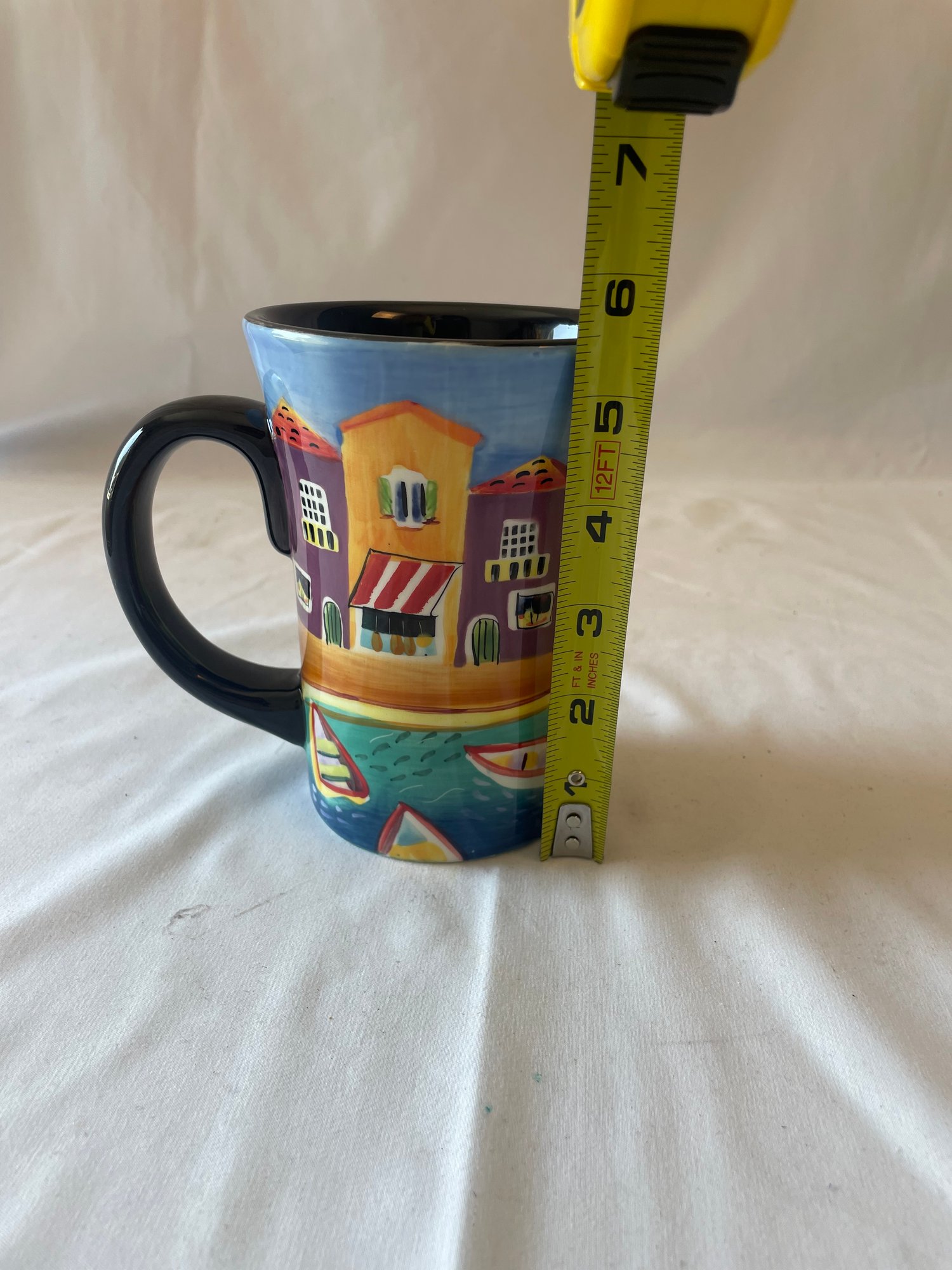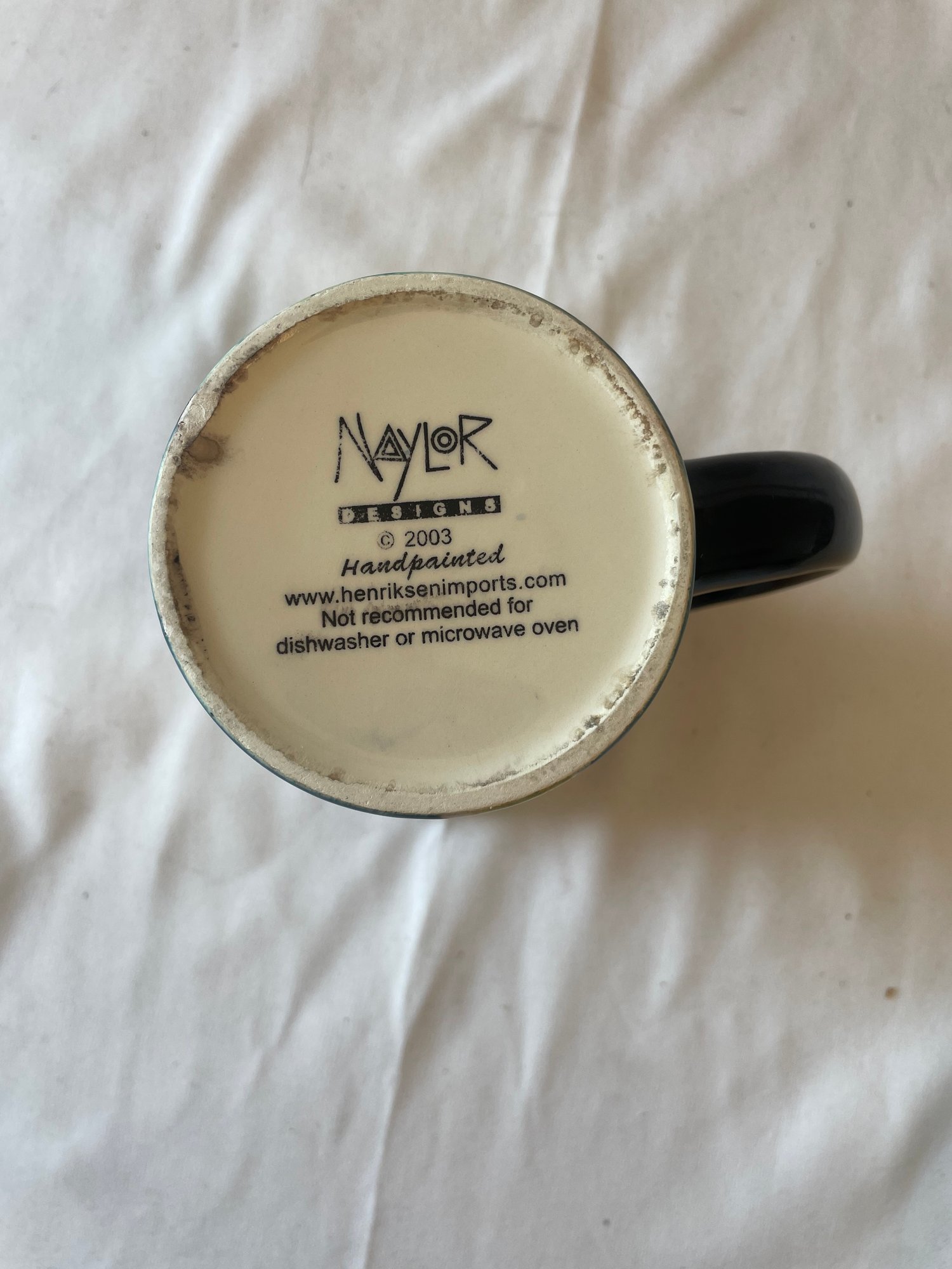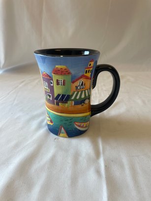 • Hand painted 2003 Naylor Mug, colorful beach scene - not dishwasher or microwave safe, chip on rim