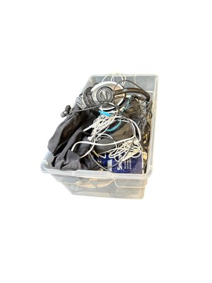 Headphones both small and big, headlamp works tested. Everything else is untested.