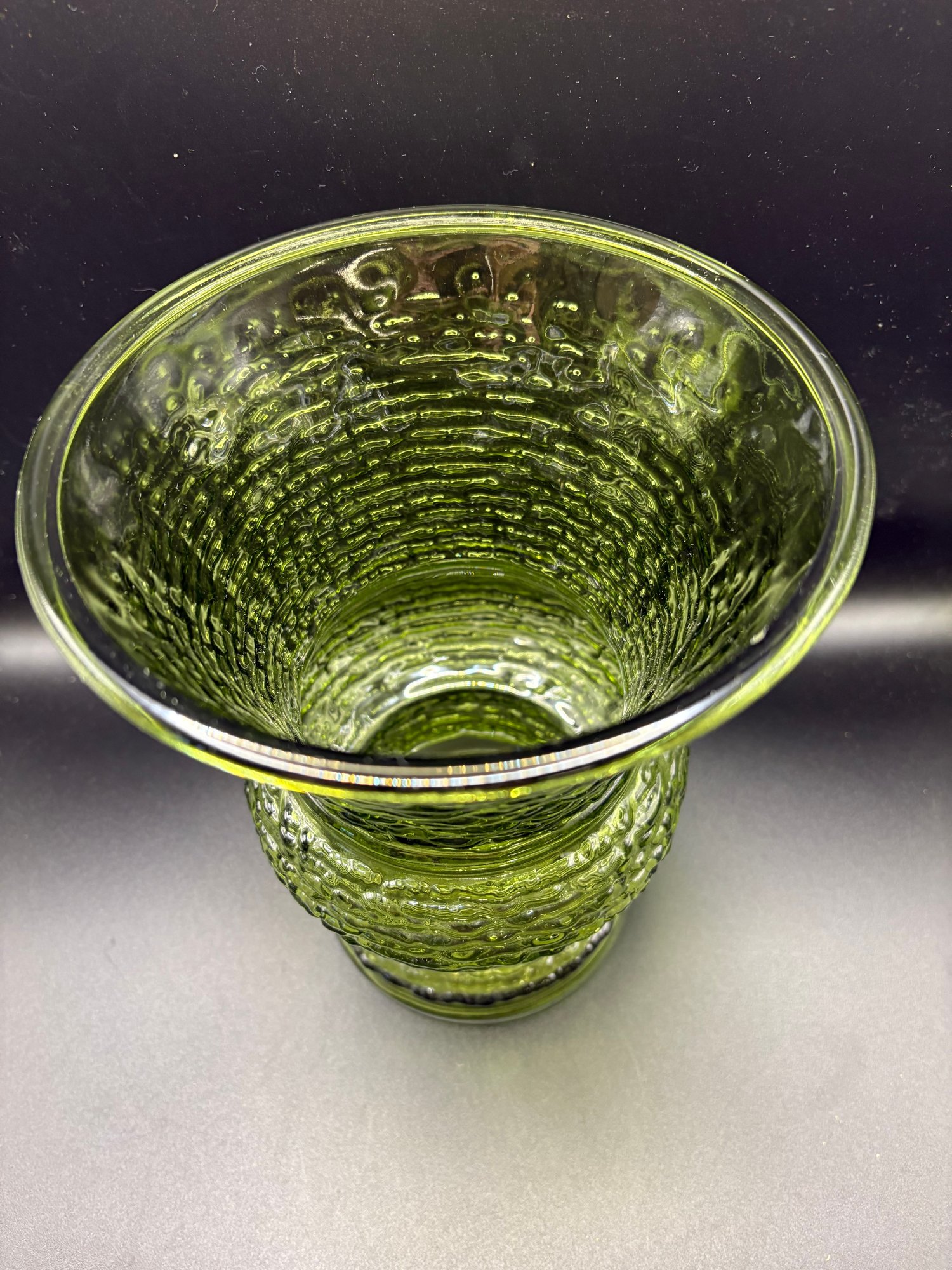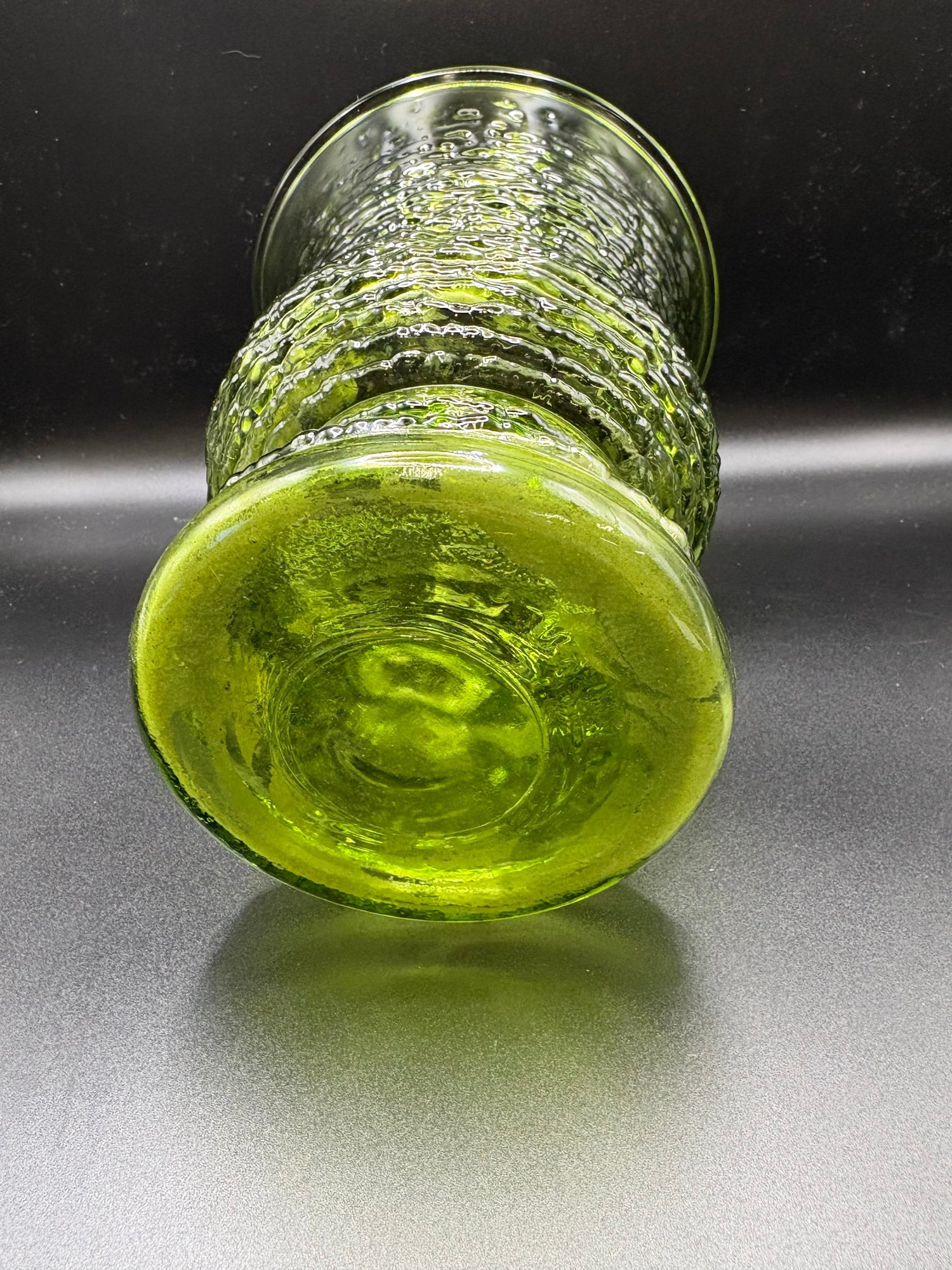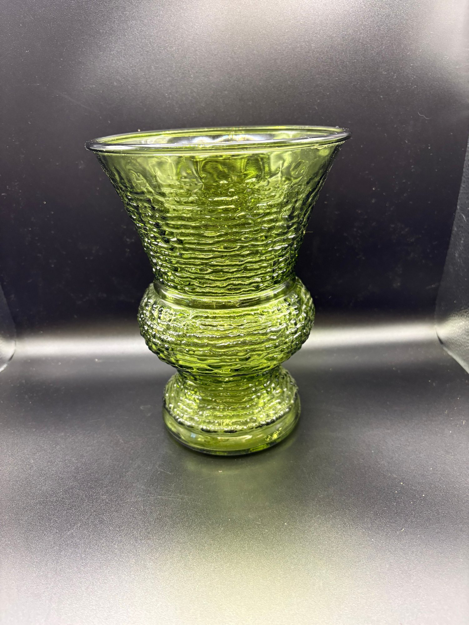 vintage Anchor Hocking Soreno avocado green glass vase.