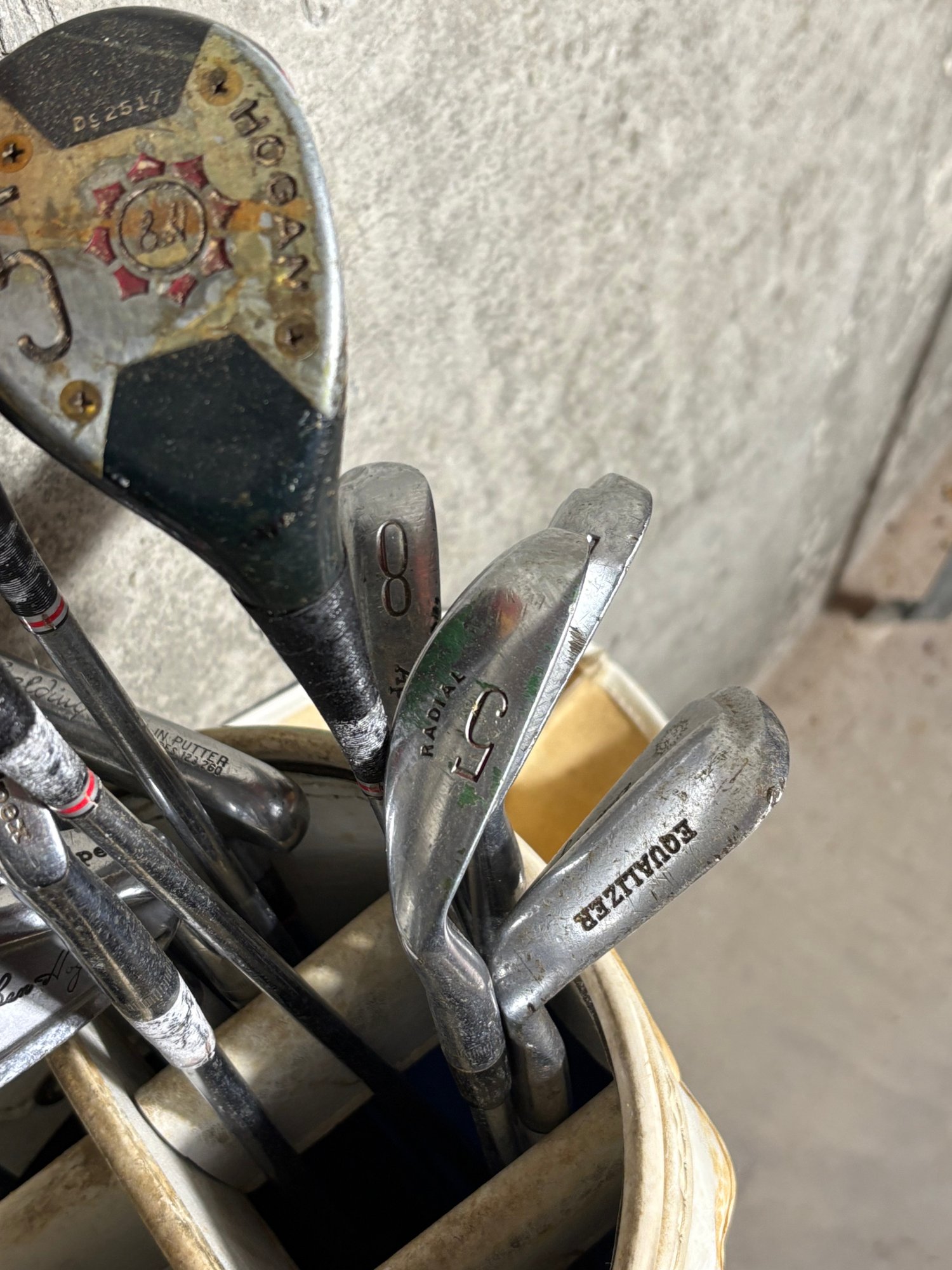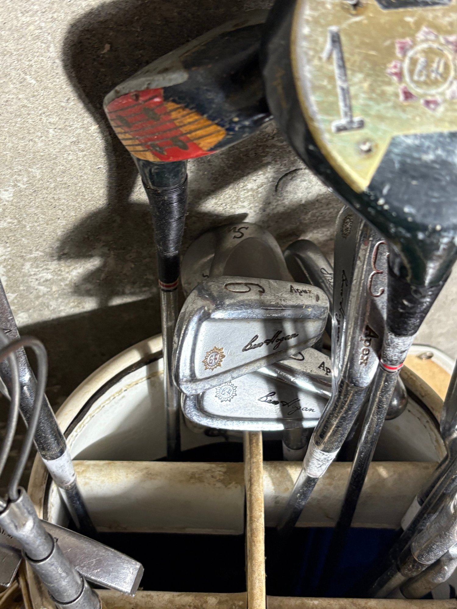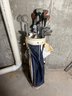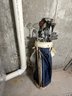 Golf bag Dimensions approximately 34 inches tall. Golf clubs range from 36-43 inches tall