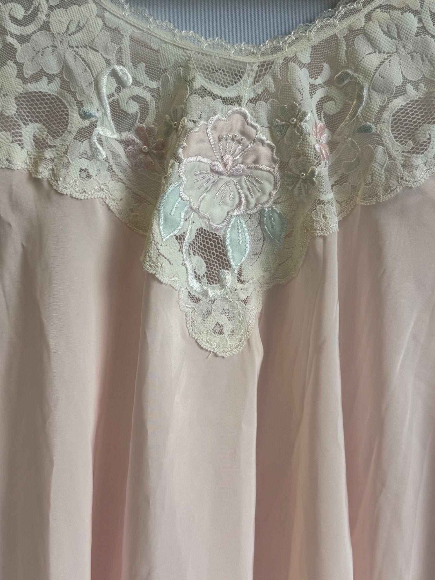Pink, floral and bead embroidery