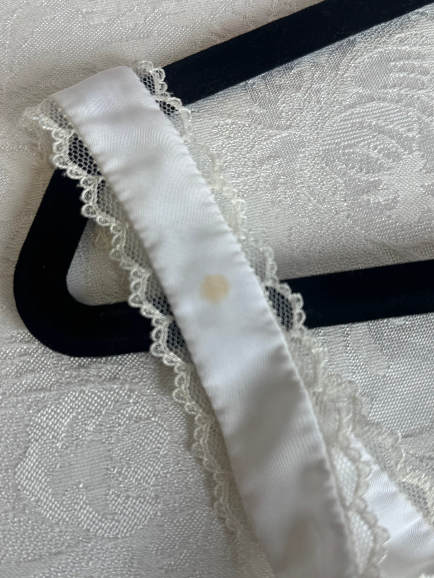 Notes: White gown- stain on strap, see photos.