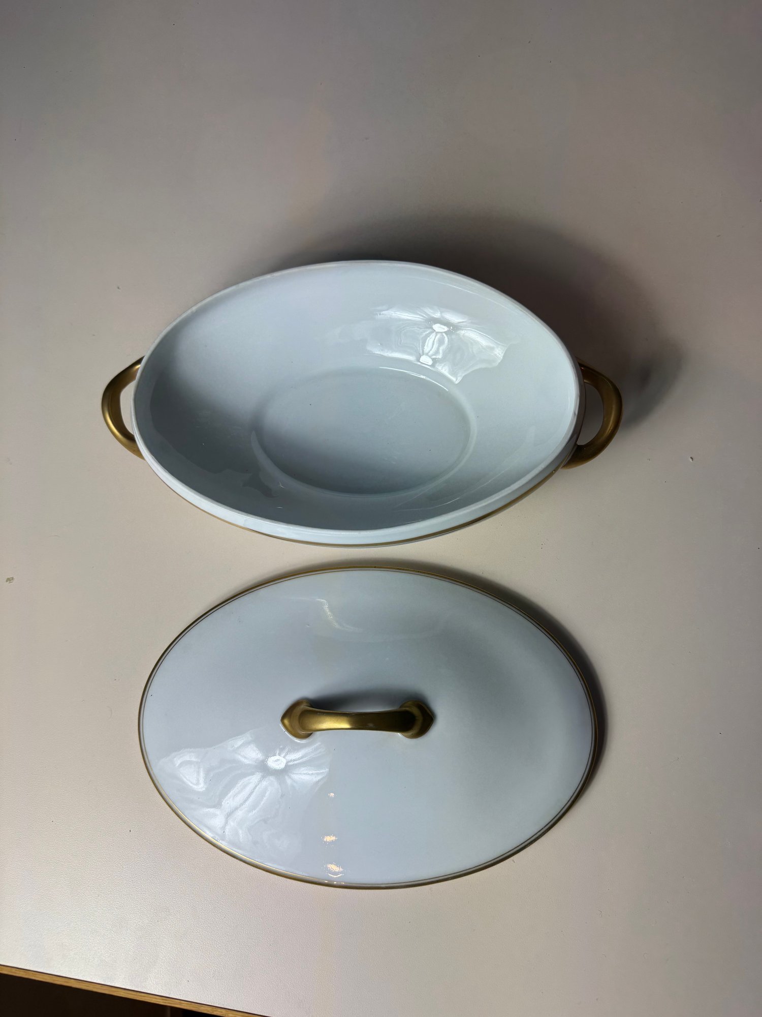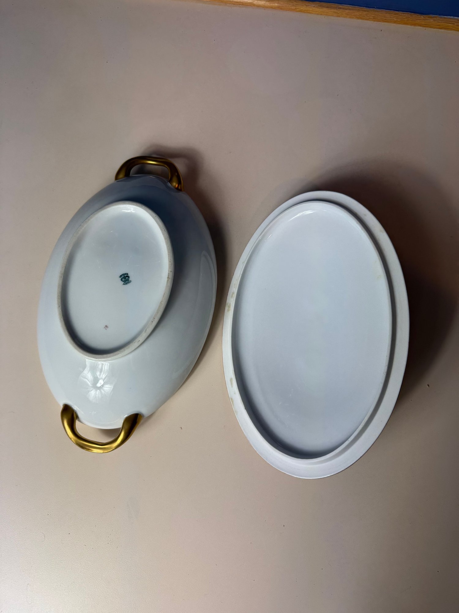 Larger lidded bowl approximately 12.5” long 2.75” tall