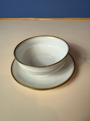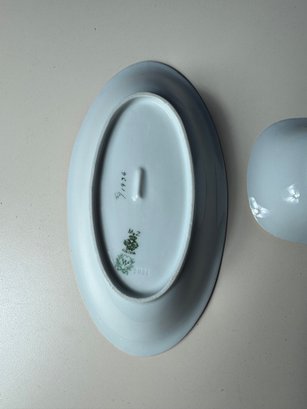 Dish with attached saucer approximately 6” long