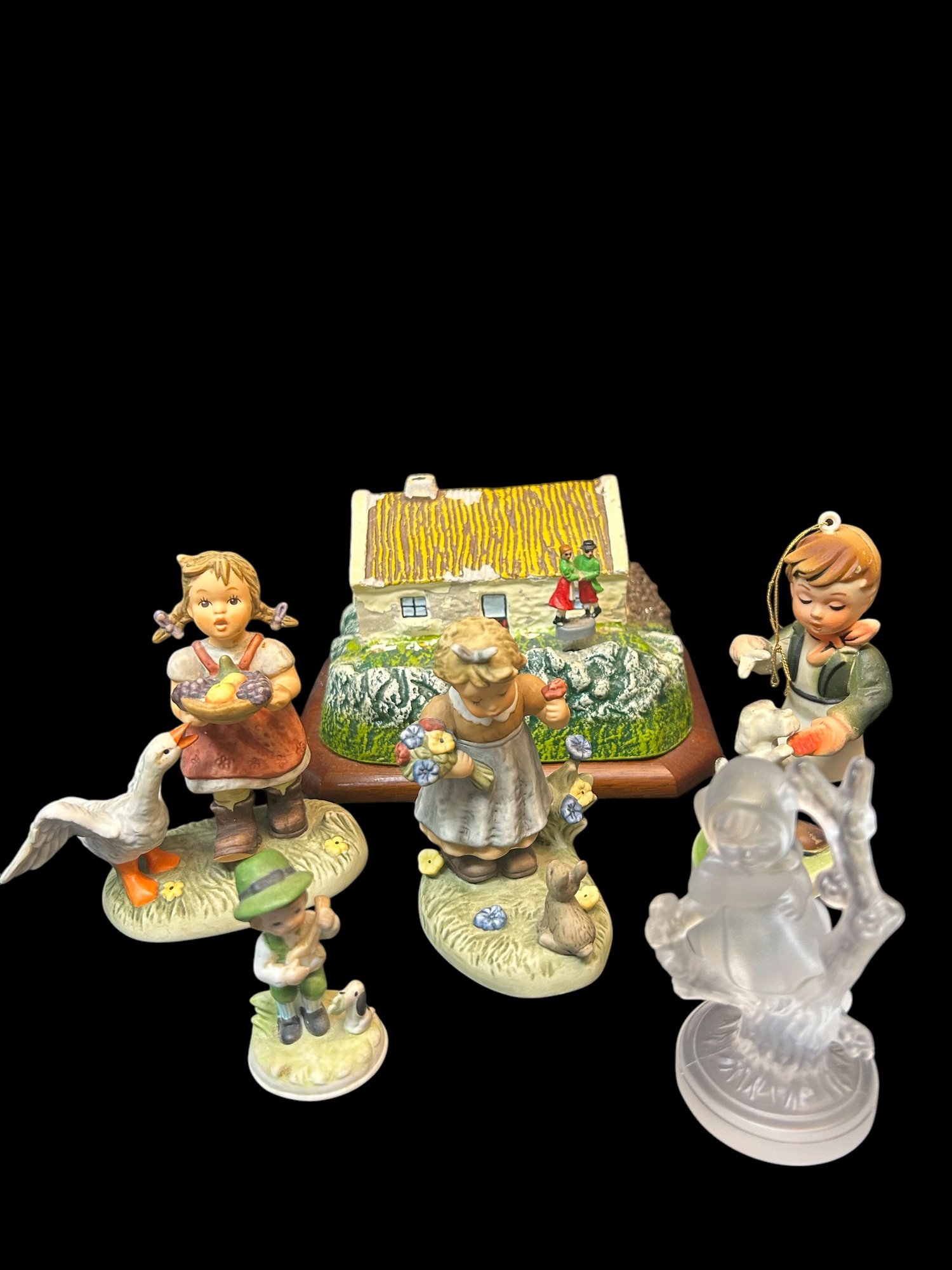 All details in pictures, (3) hummels including 1 frosted glass Hummel.