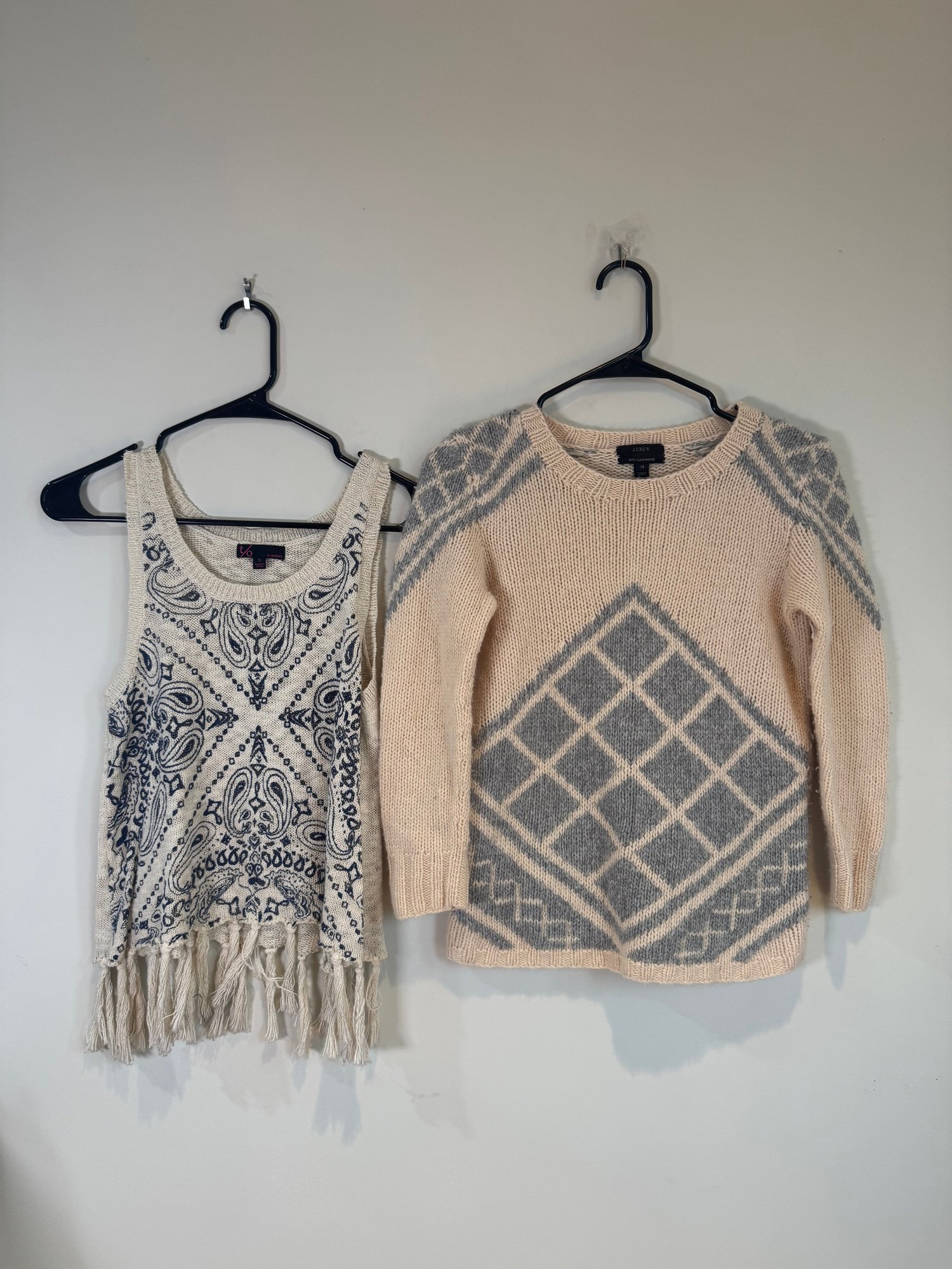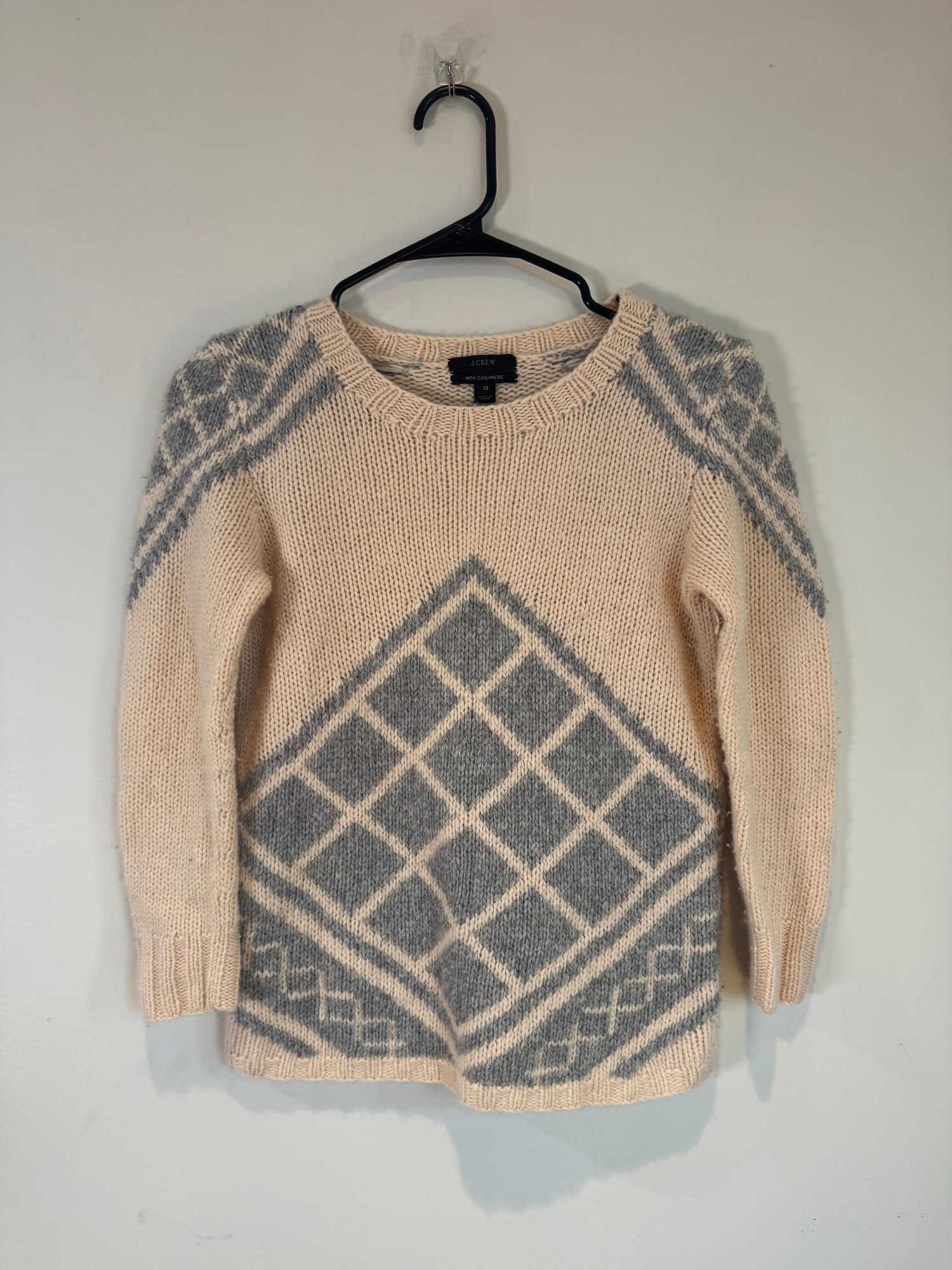 Style: Beige and Grey patterned sweater made with cashmere