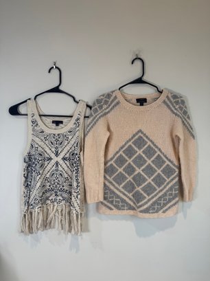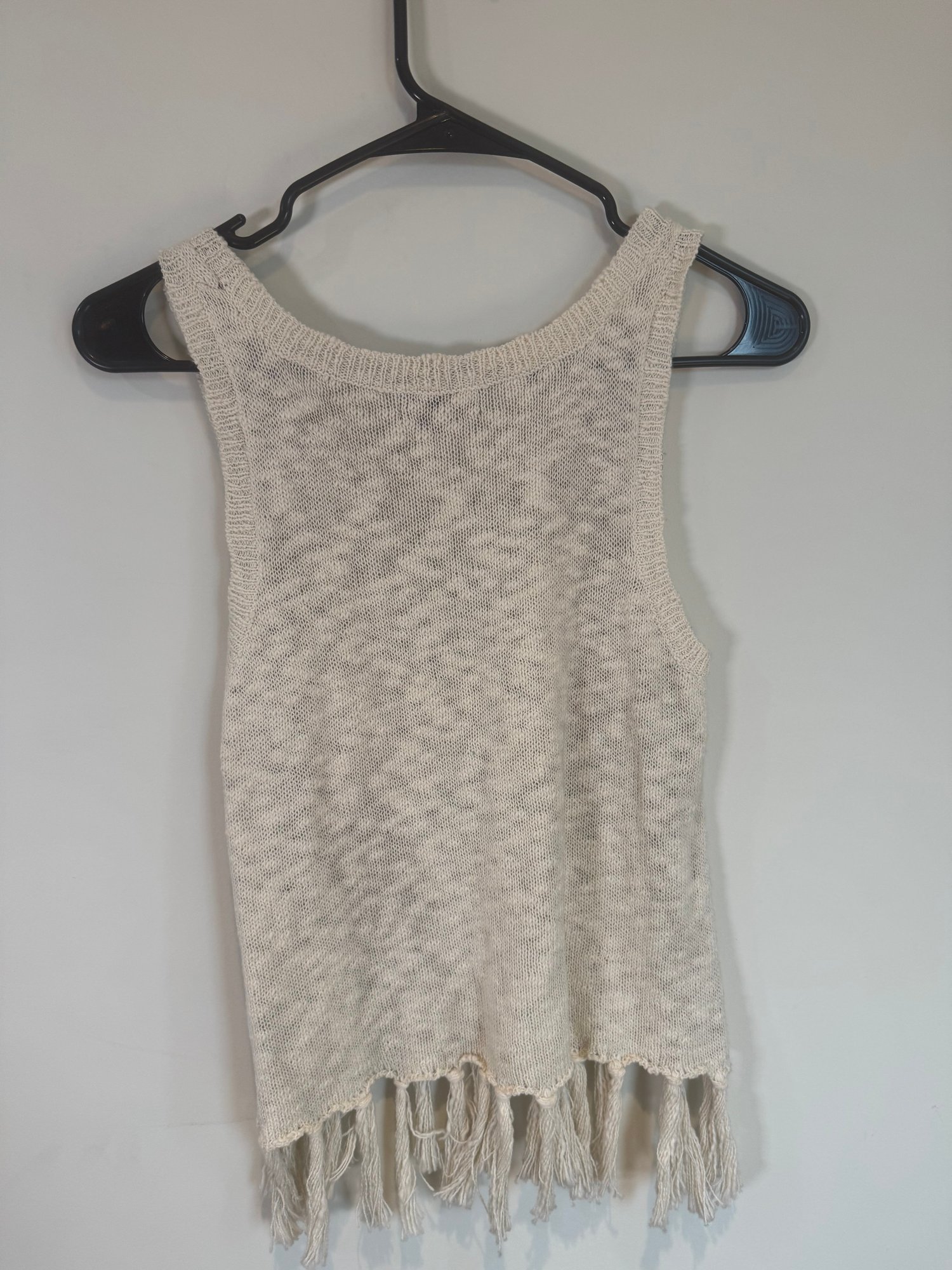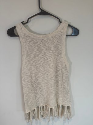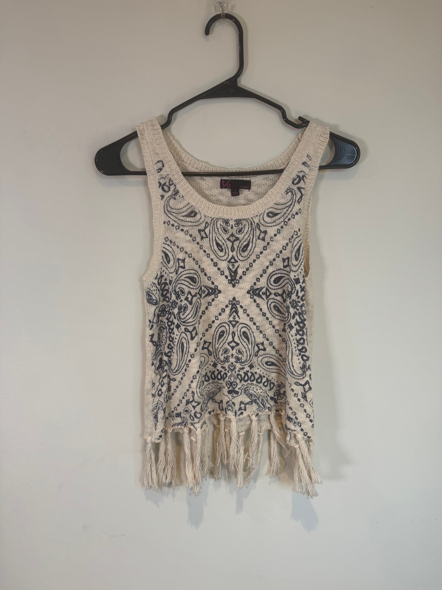 Style: Fringed, patterned sweater tank top