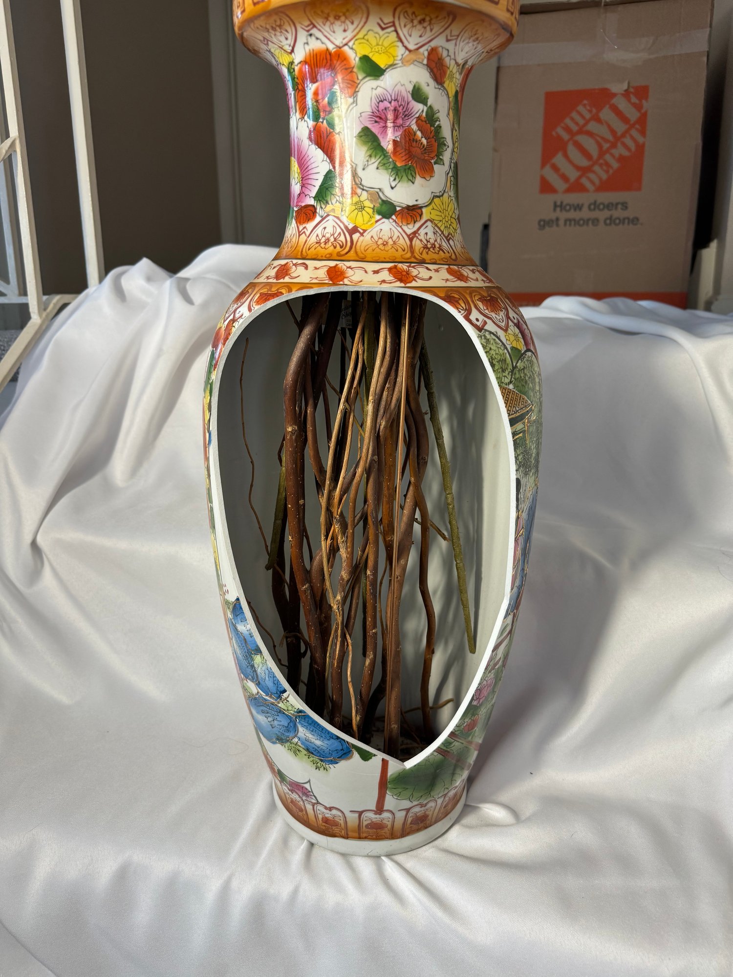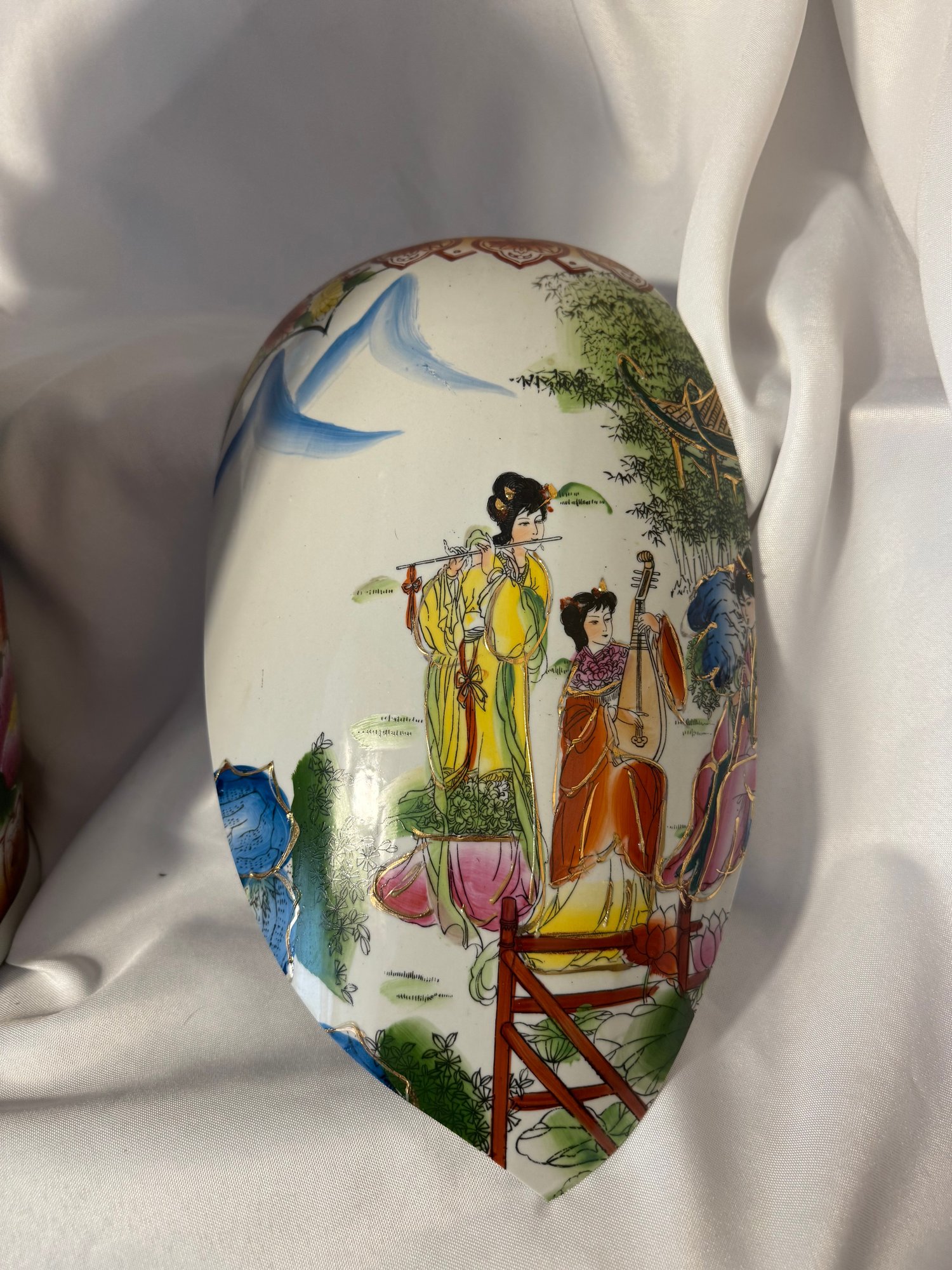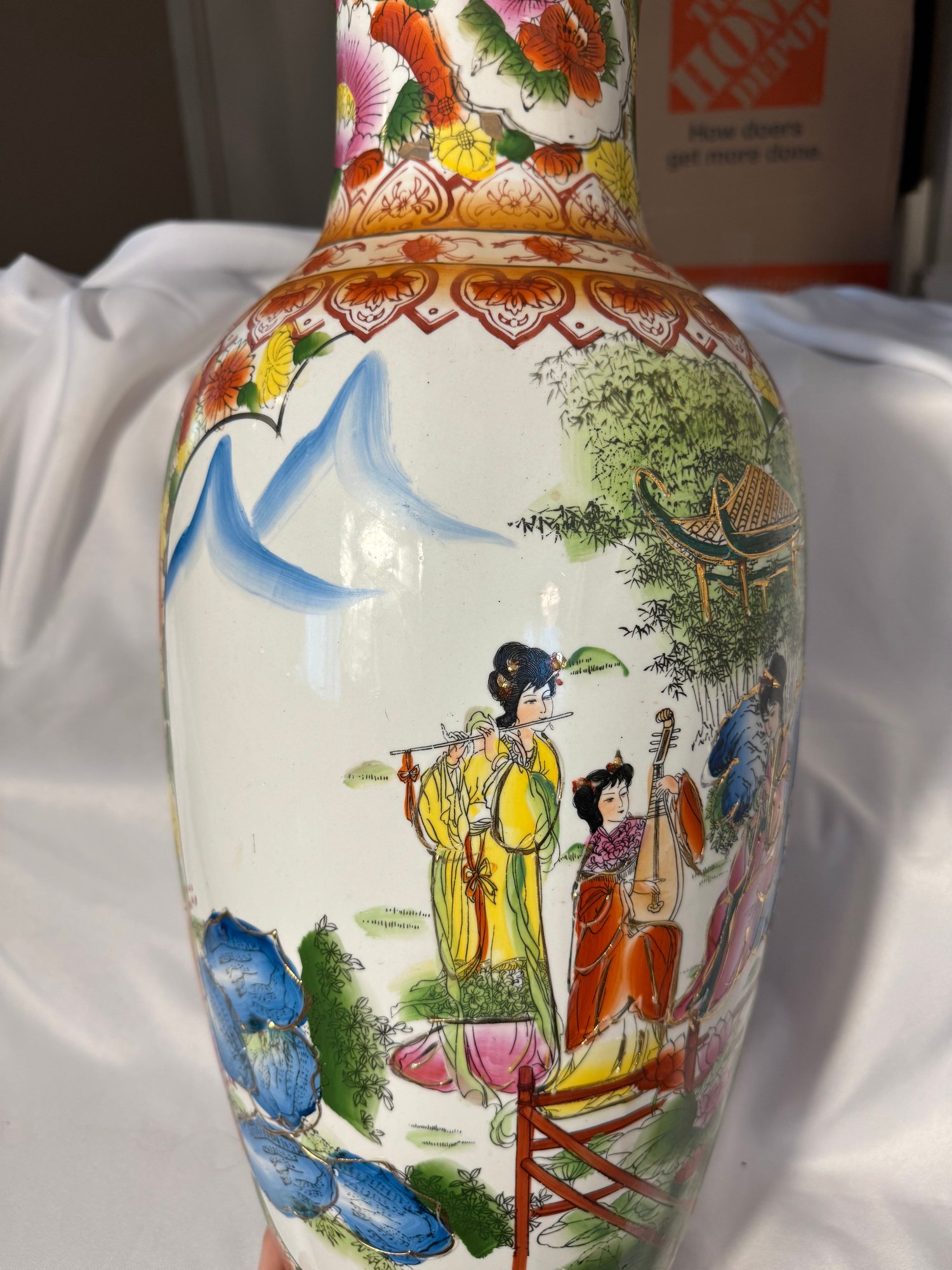 large chunk broken on the back, seems to be a clean break that can be glued back in