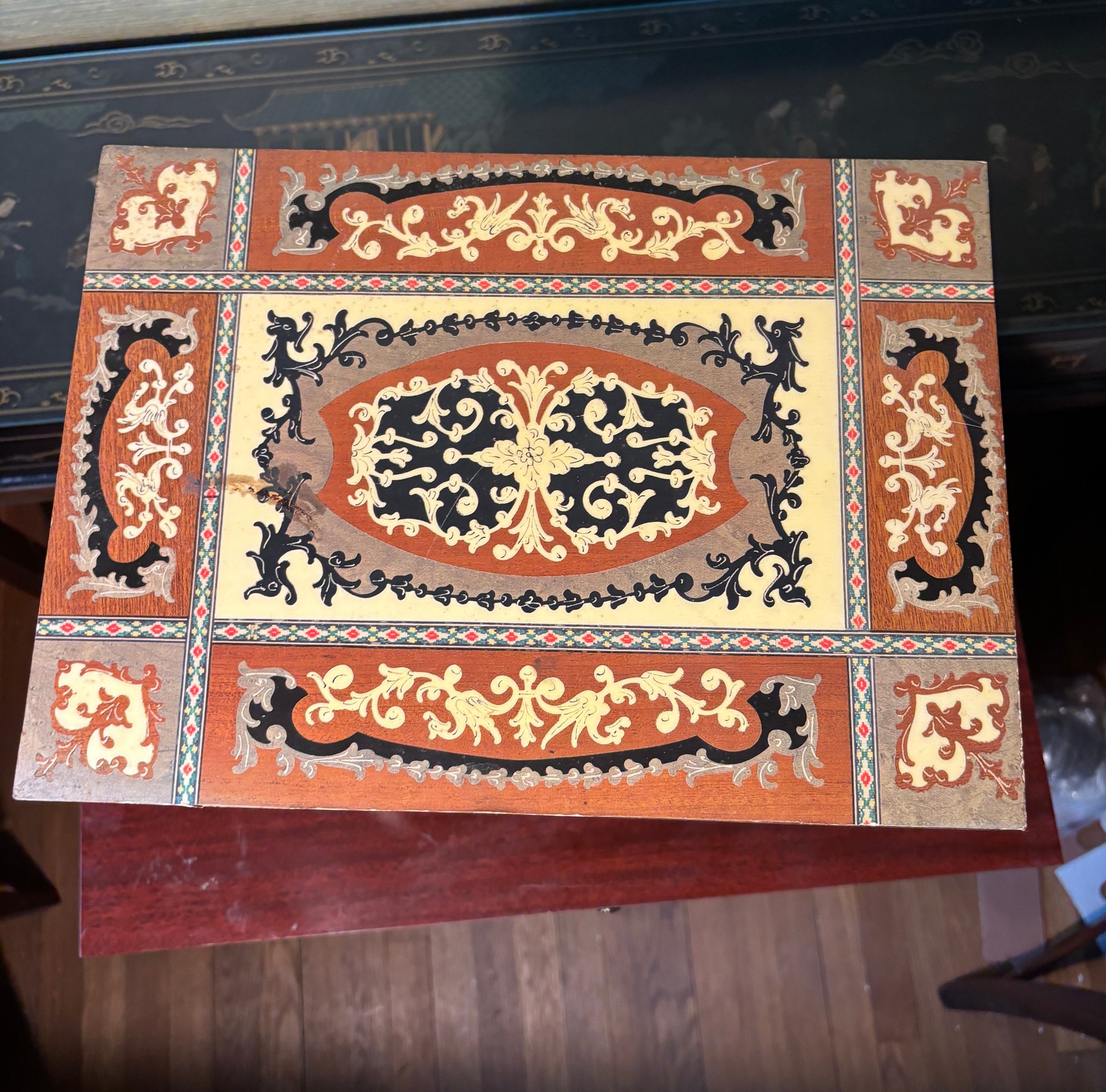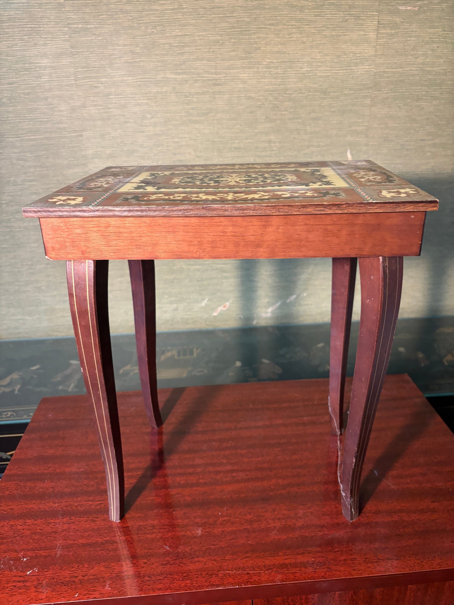 Notes: Needs repair one leg is broken and not connected to table. Small scuff to top see photos