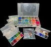 includes four plastic kits of jewelry making supplies, along with a bag of supplies & two bags of marbles/colored stones