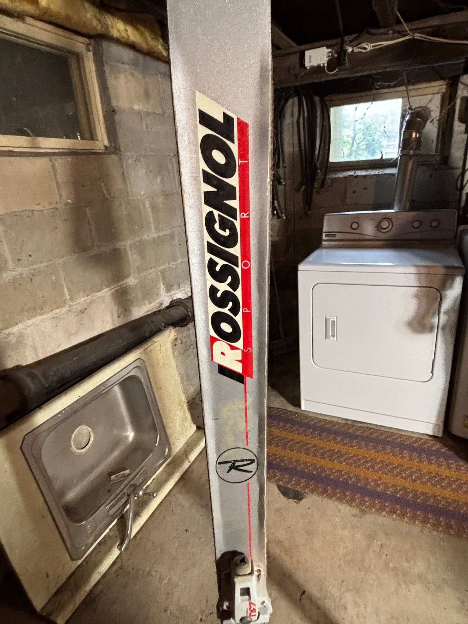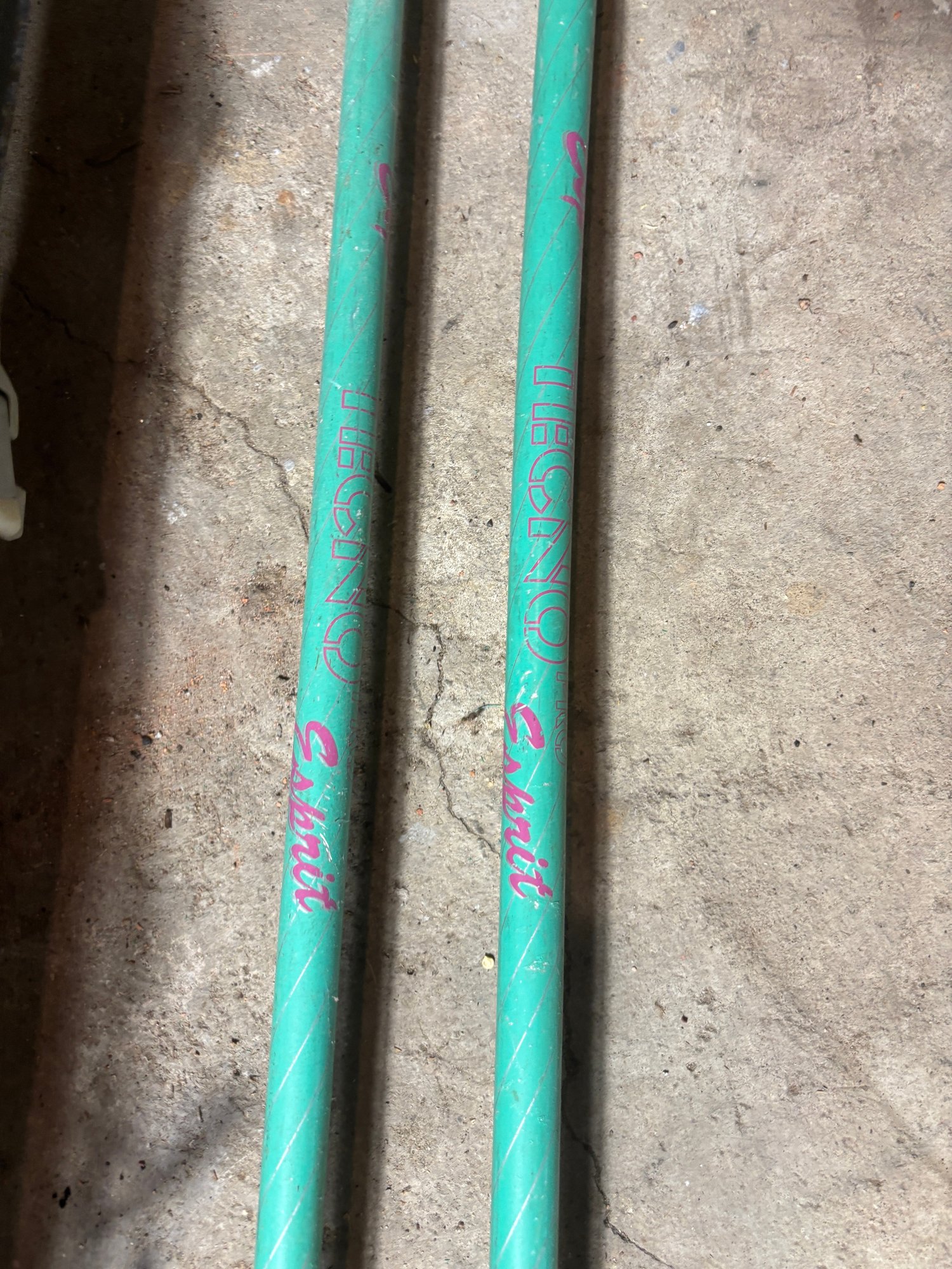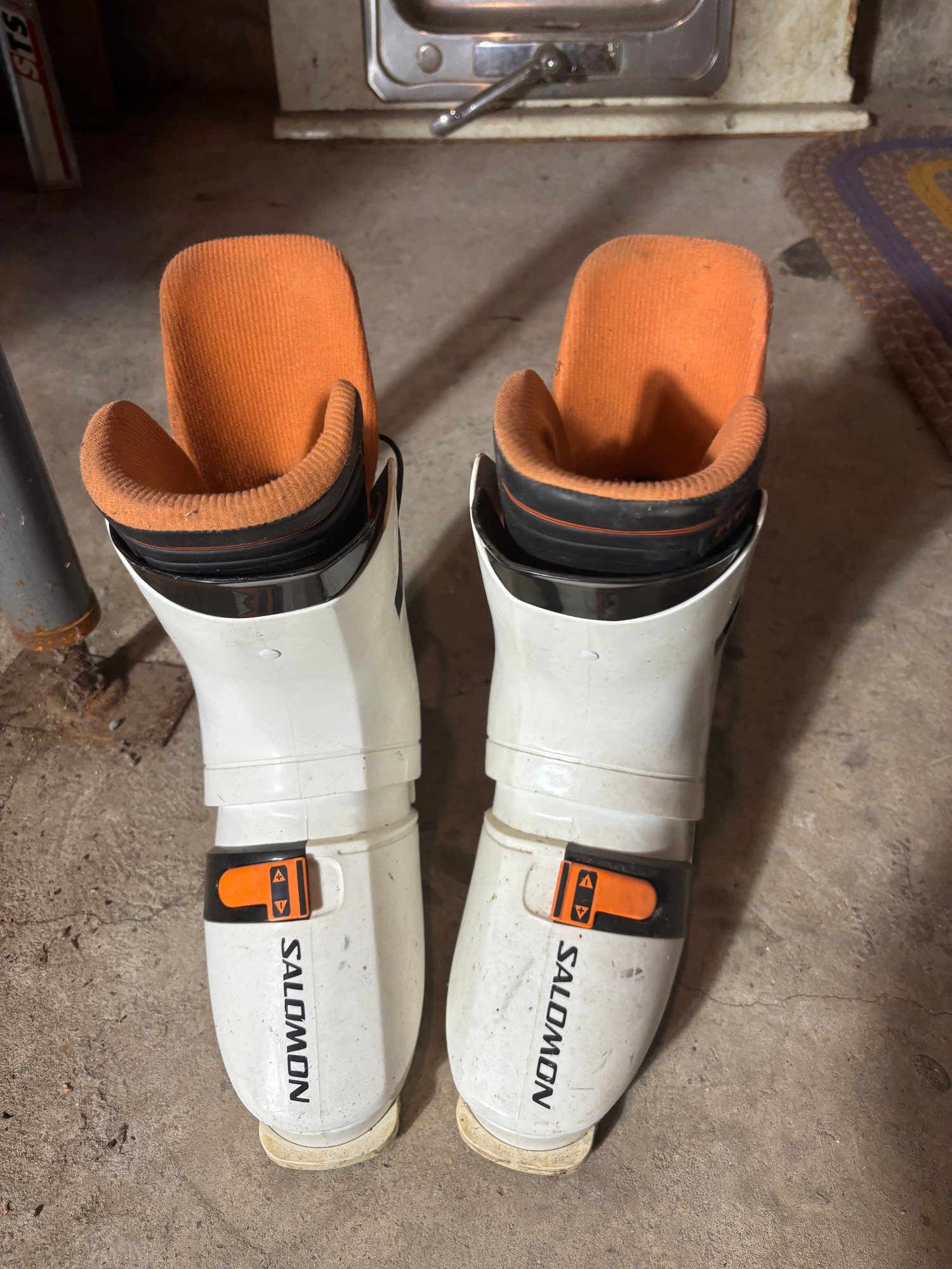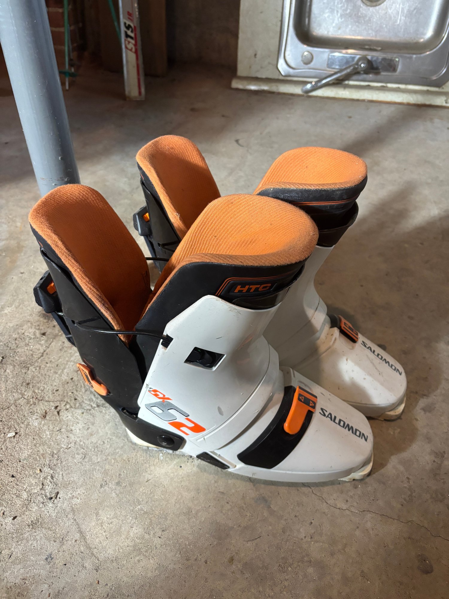 Includes a pair of K2 44500 skis, rossignol STSjr skis, duralite poles, tecno esprit poles, Salomon ski boots.