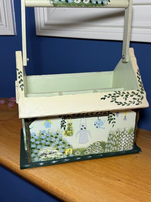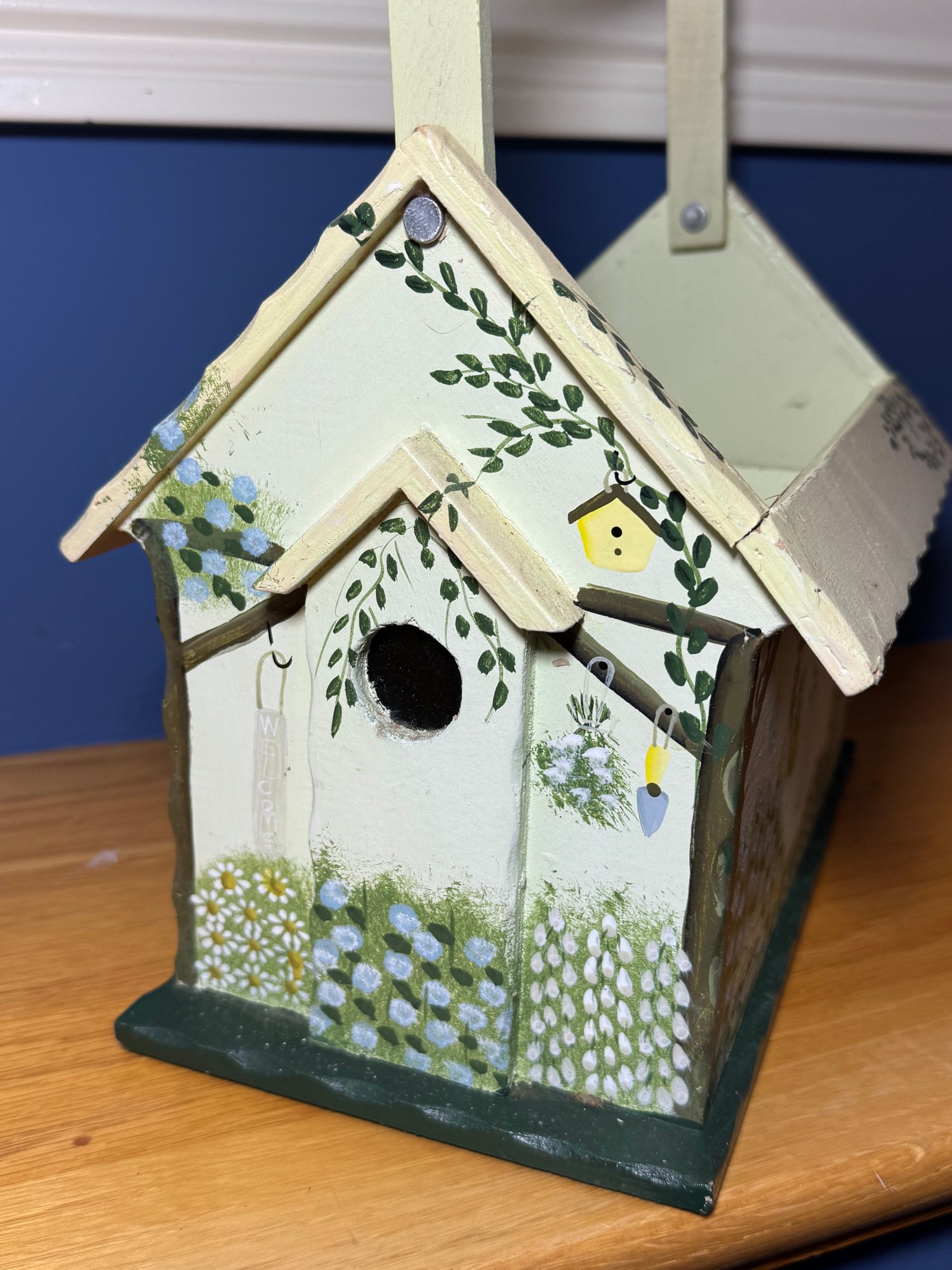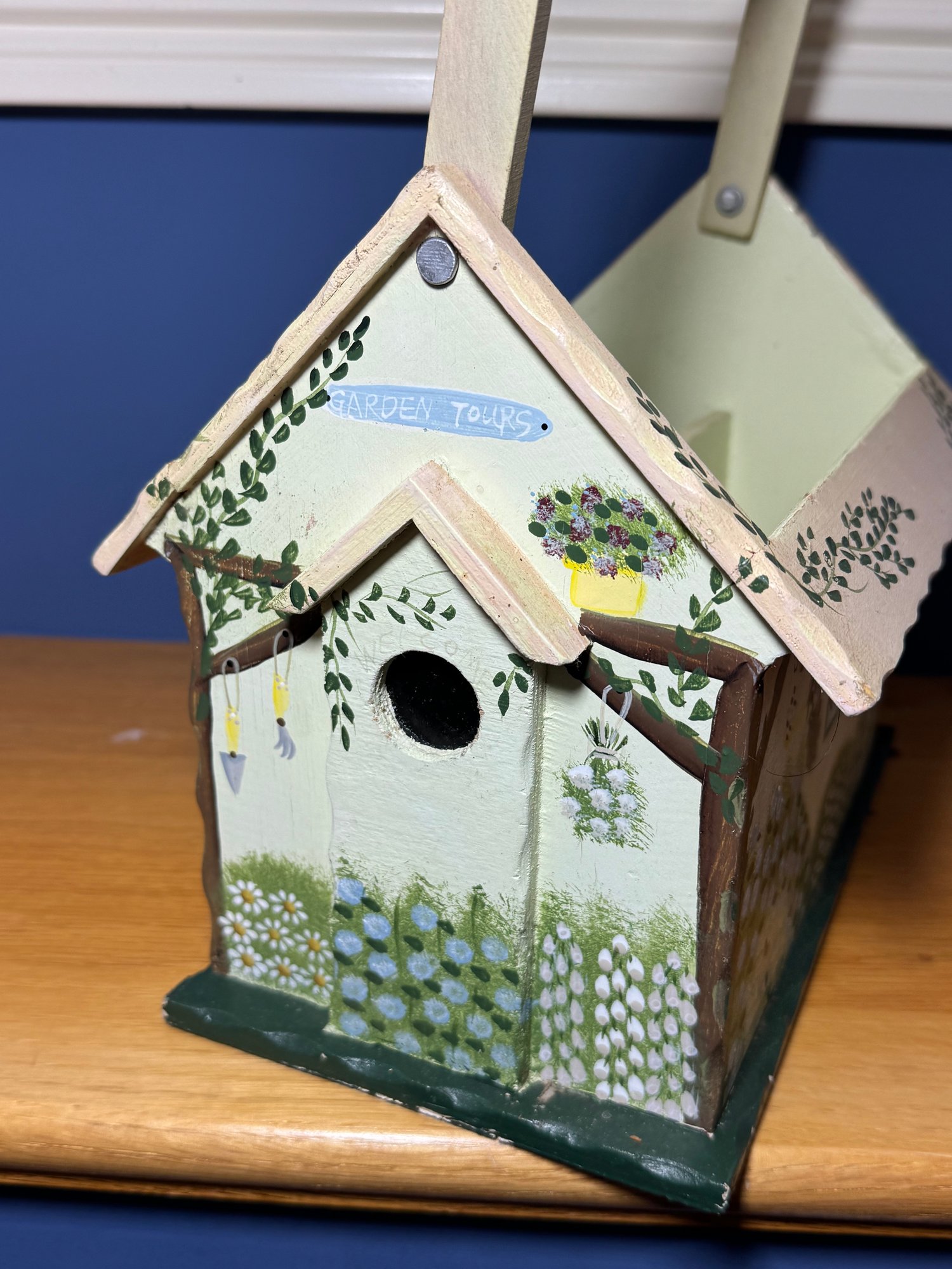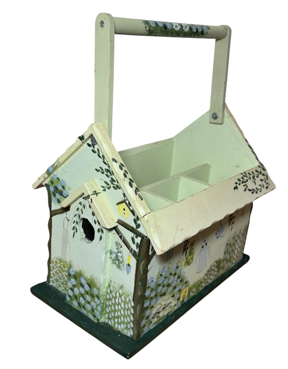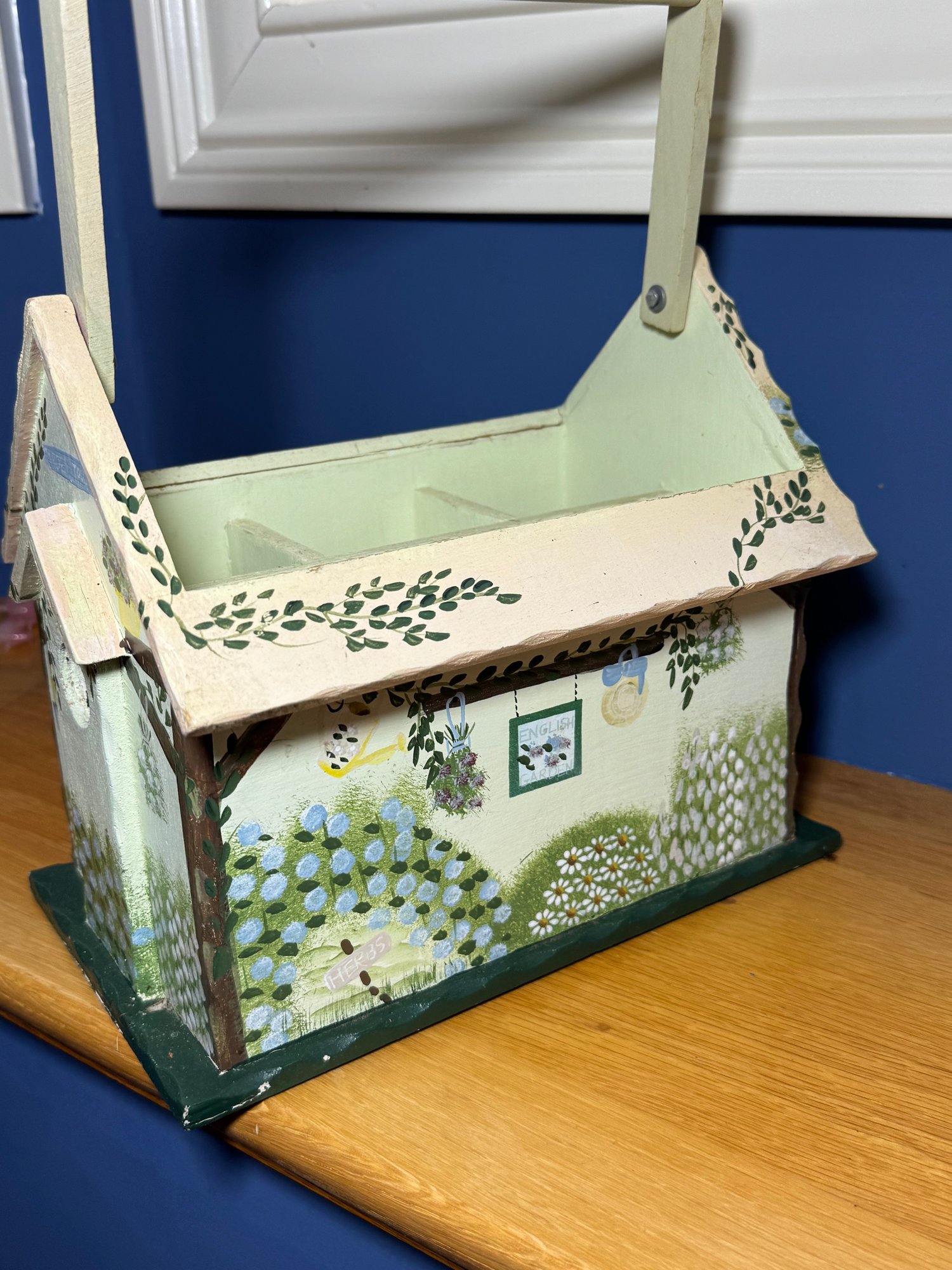 approximately 9.75x5.75”, 8” tall, 11.5” tall to handle