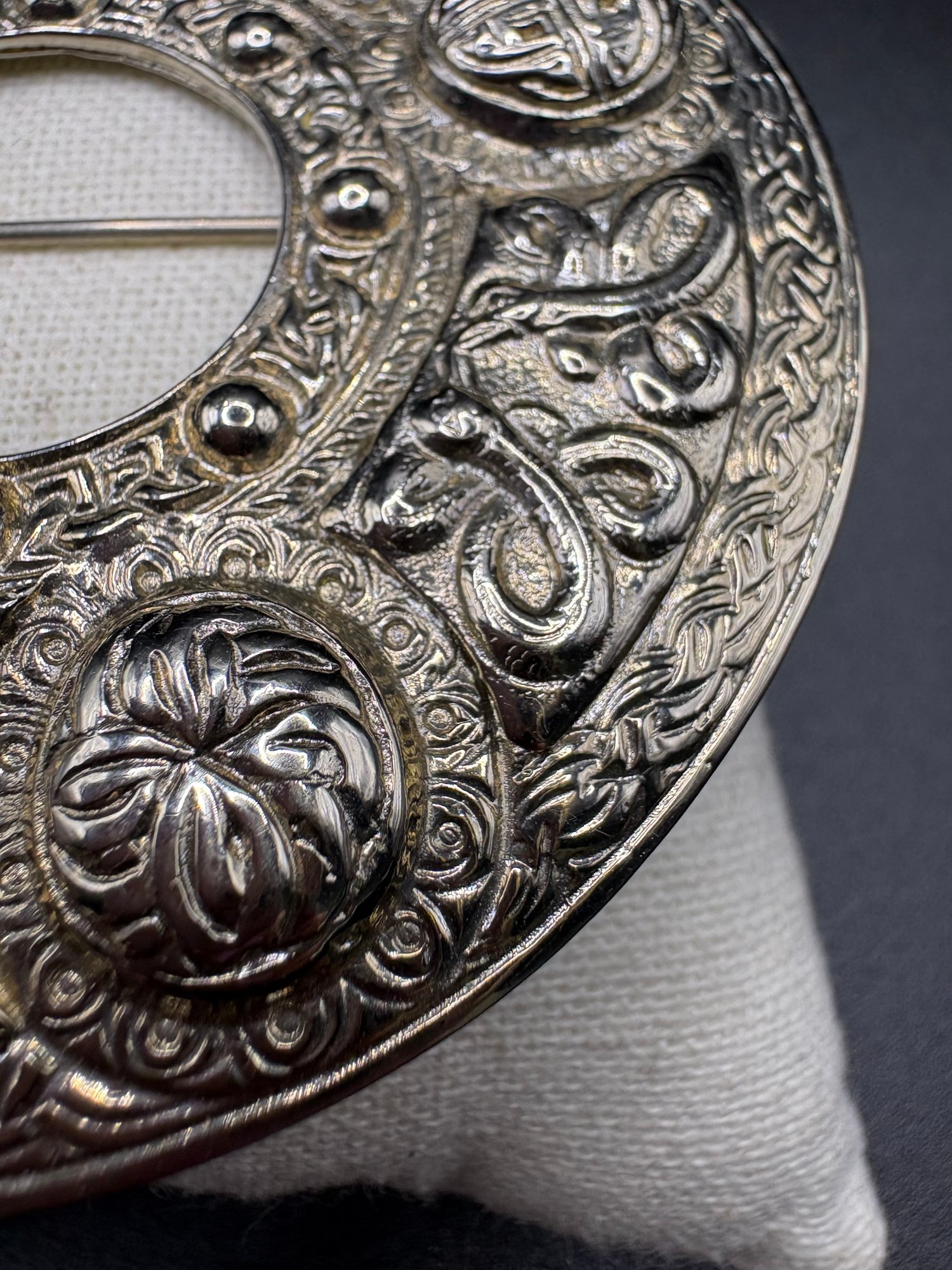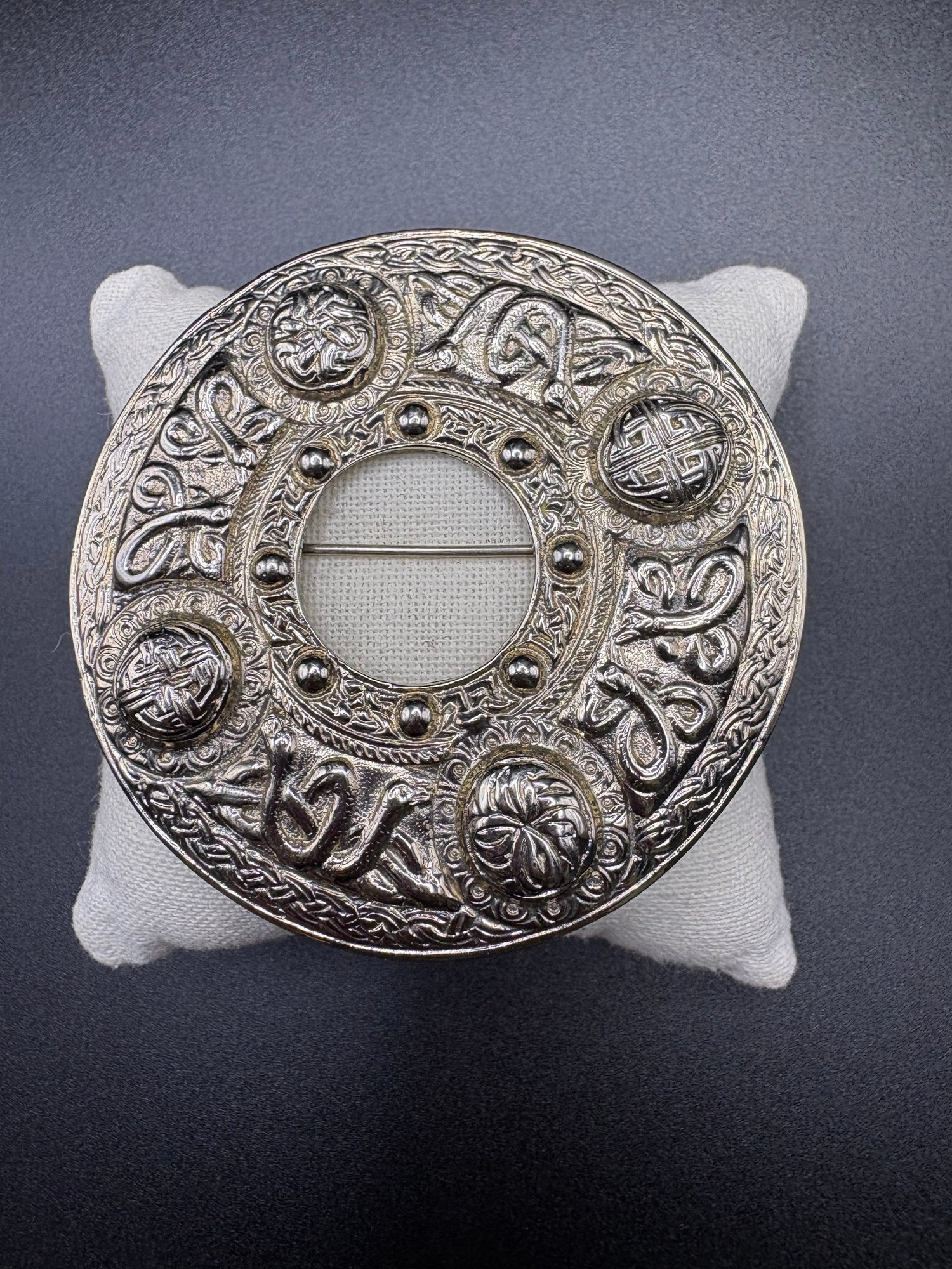 Scottish kilt pin, Silver tone 3 inches around and the pin is detached from the peace
