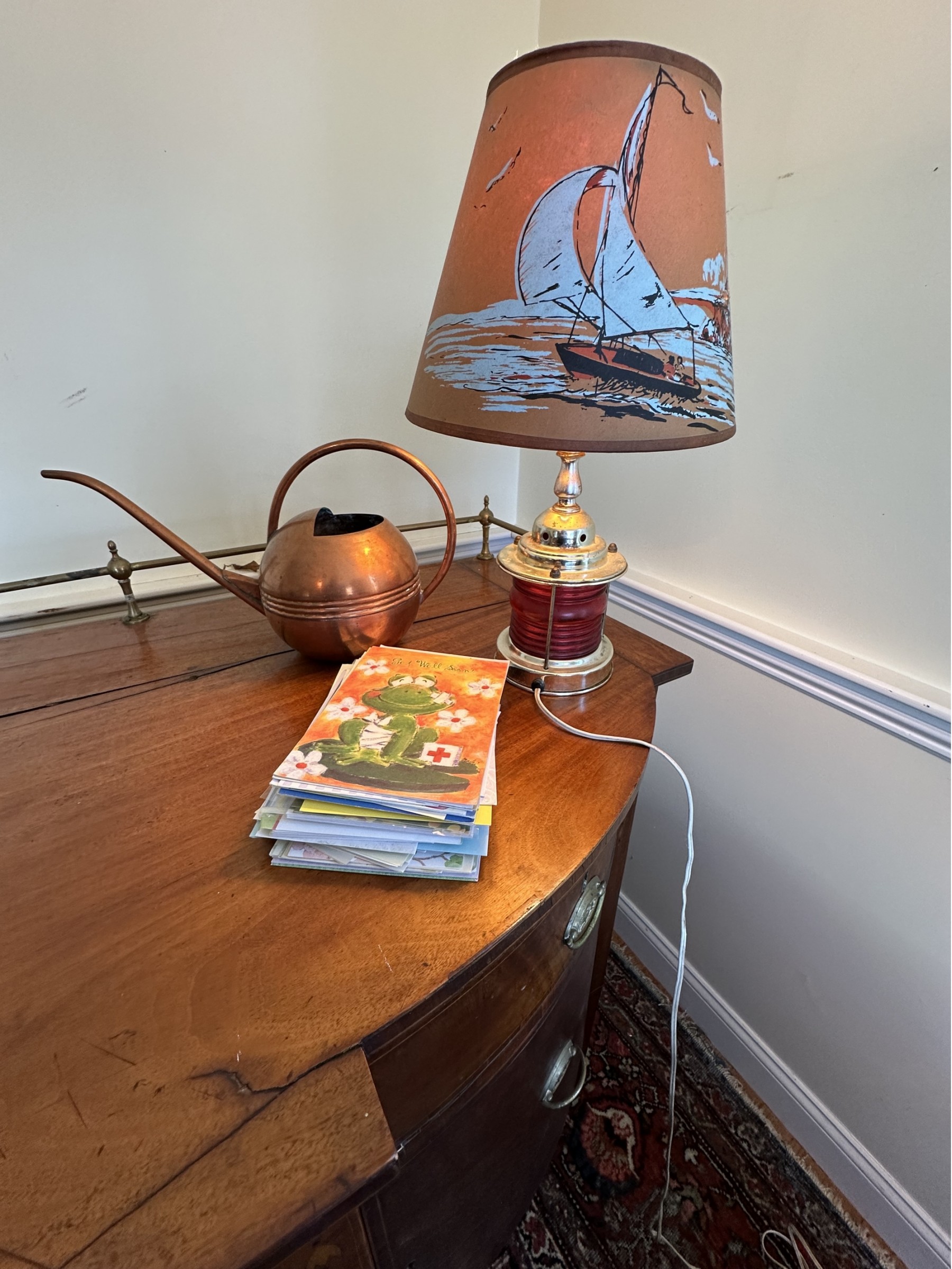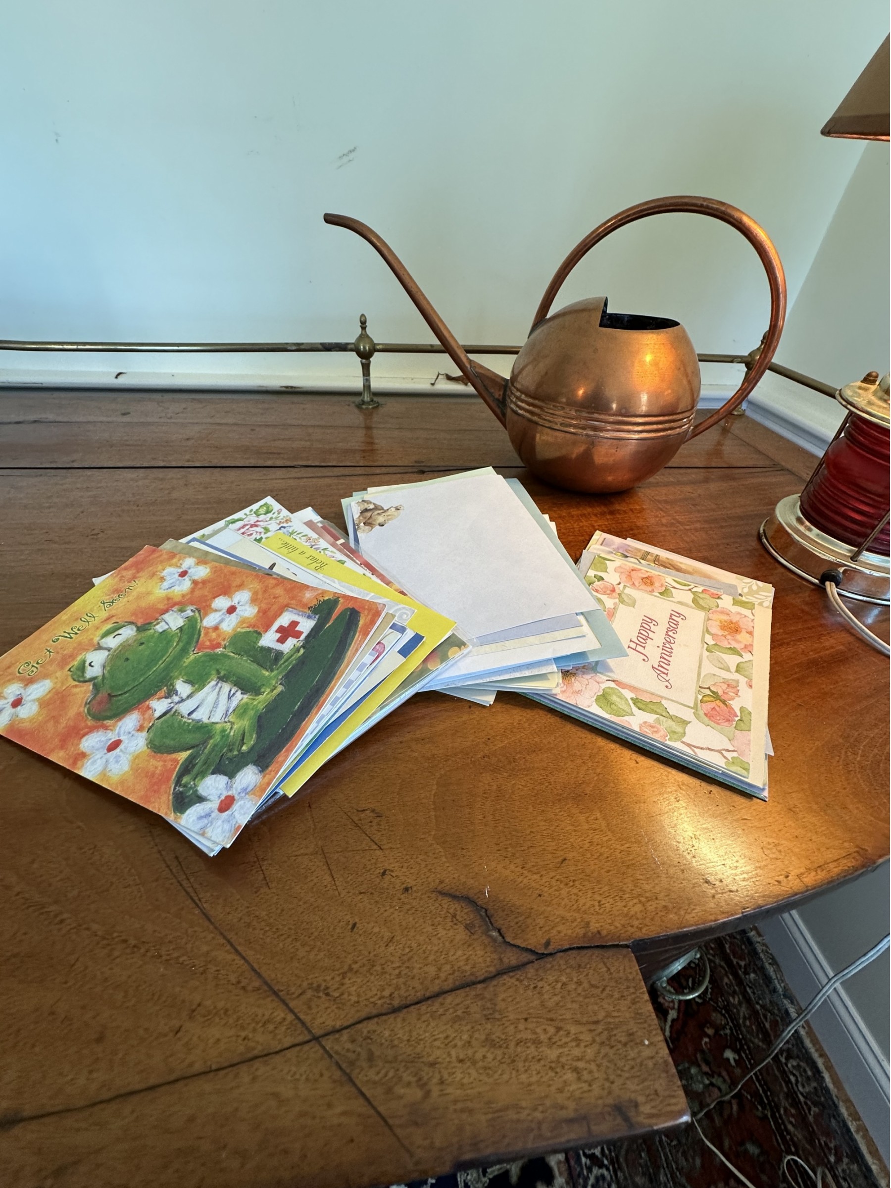 Lamp, Watering Can, Cards
