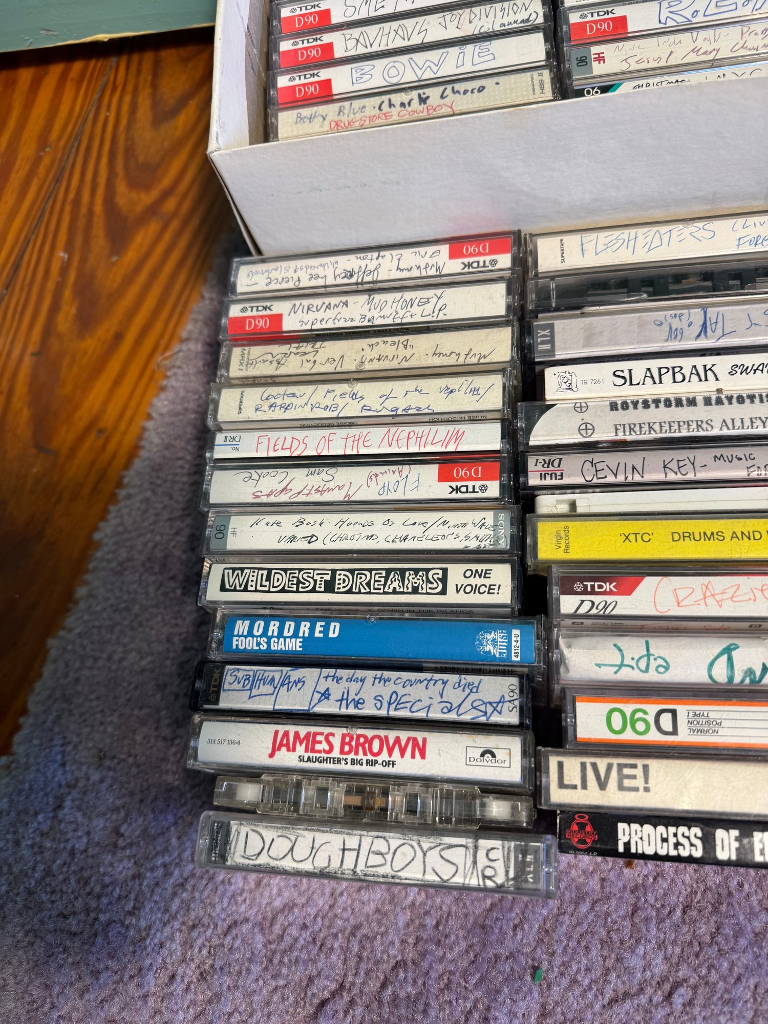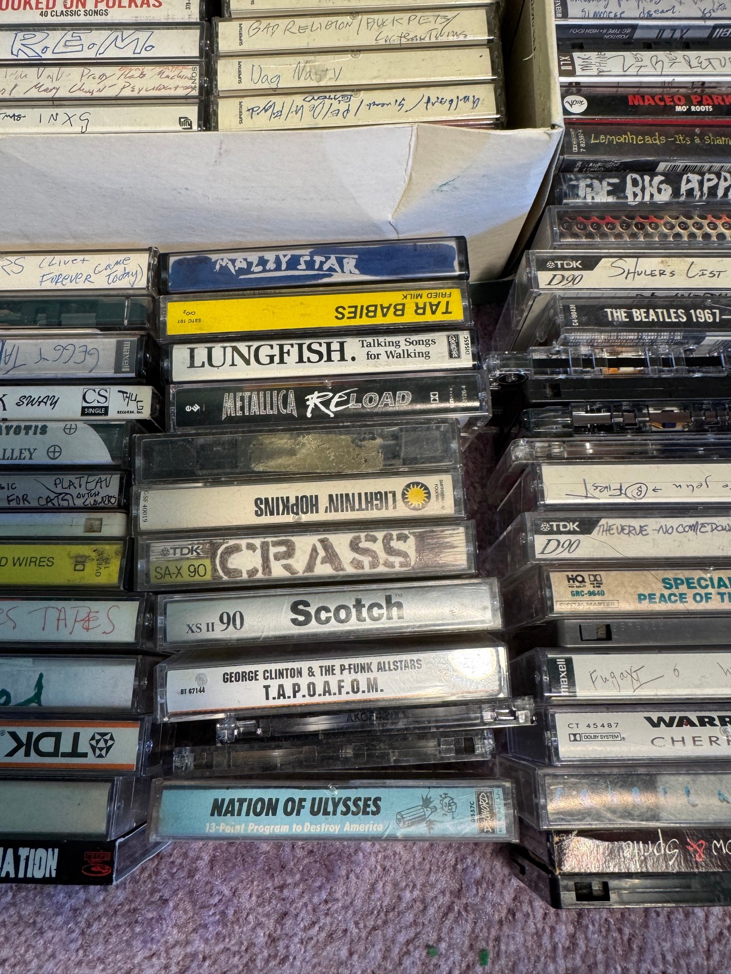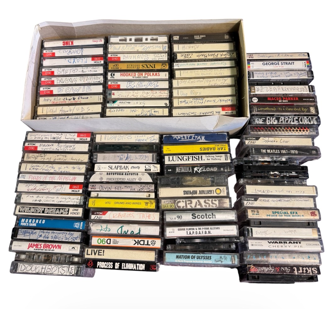 includes a large group of cassette tapes