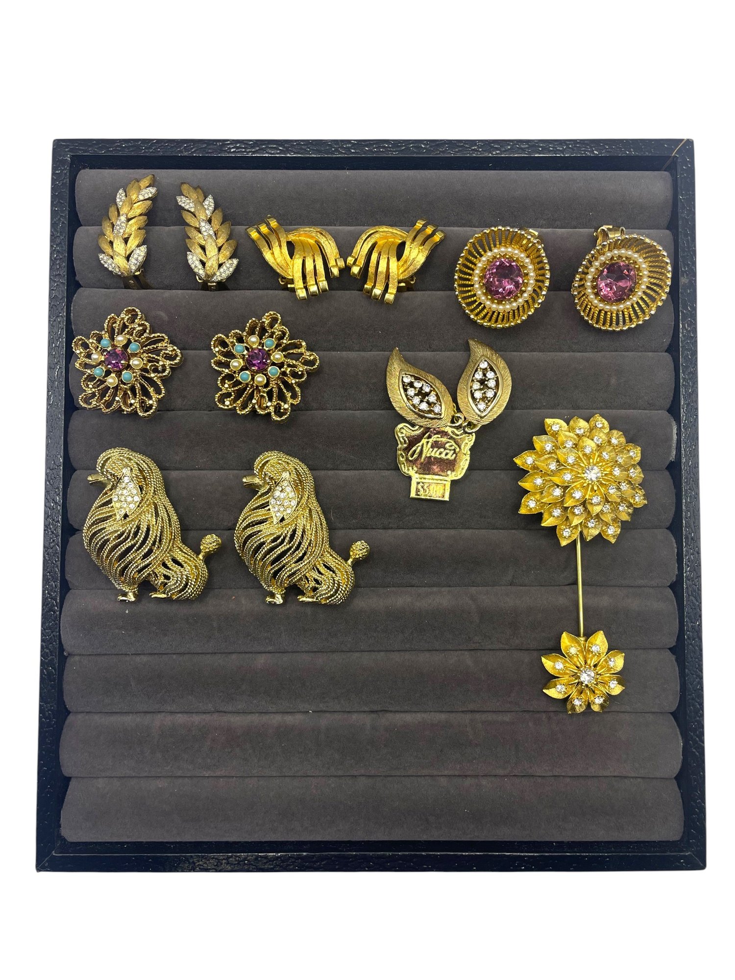 Mostly clip on earrings, Poodle pins, Floral pin